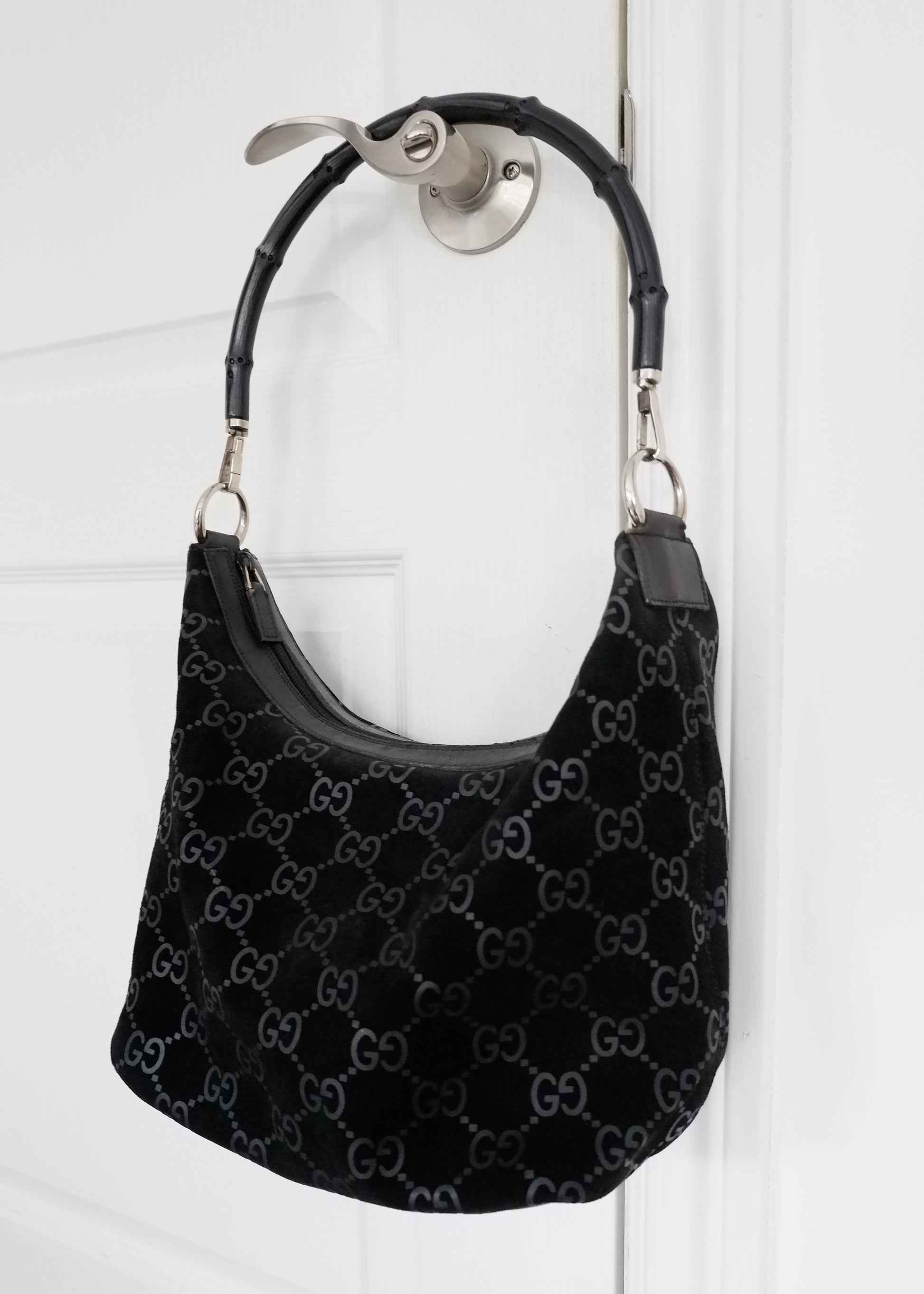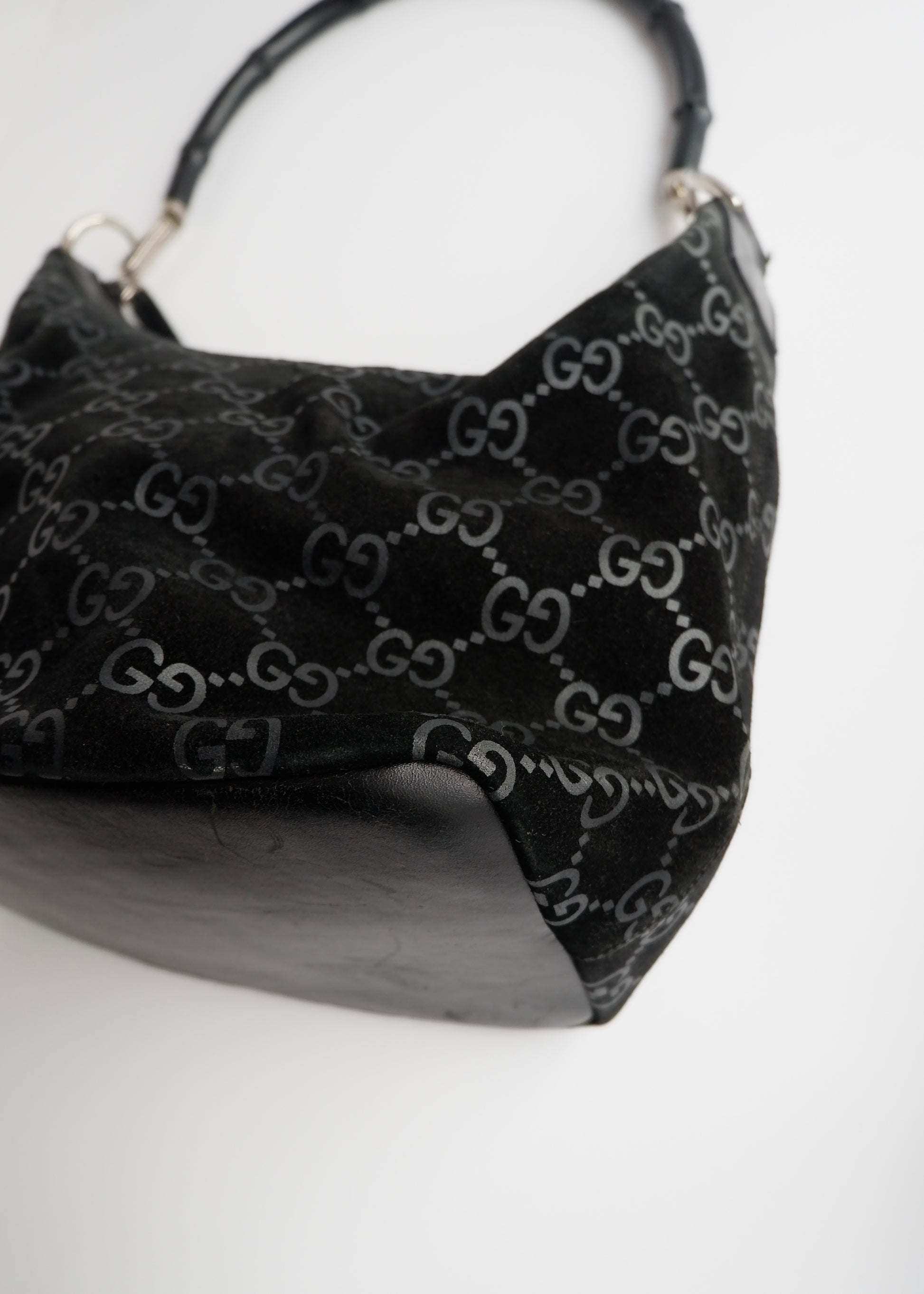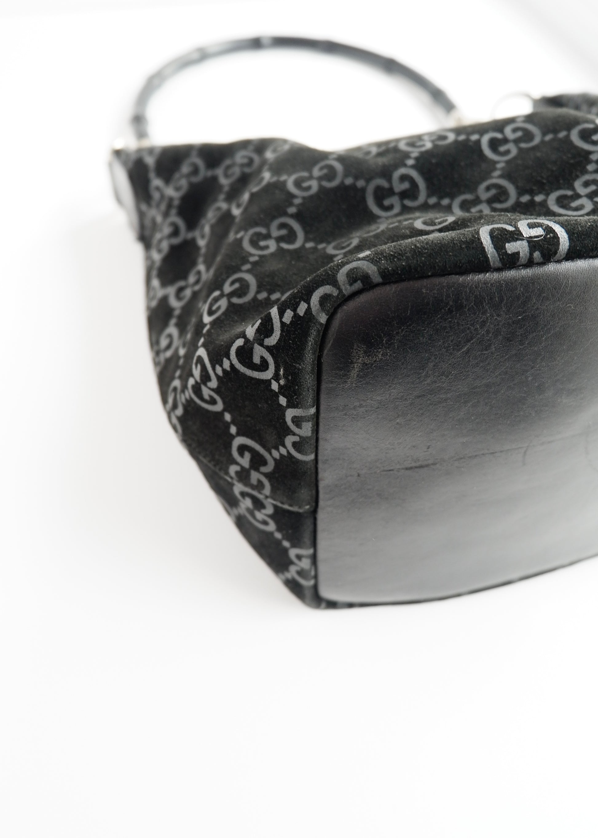 Authentic Preowned Gucci Black Suede Bamboo Handle Shoulder Bag