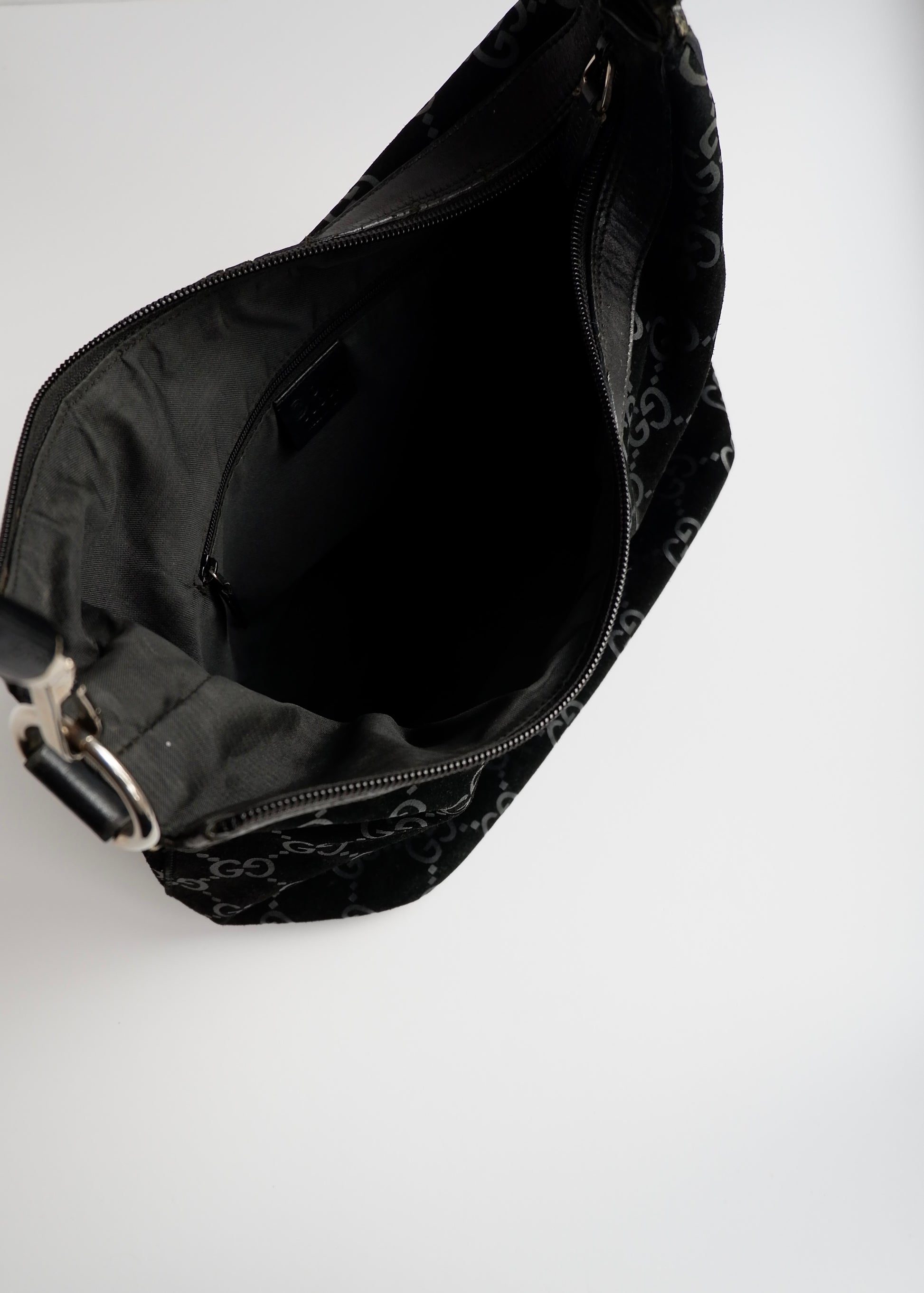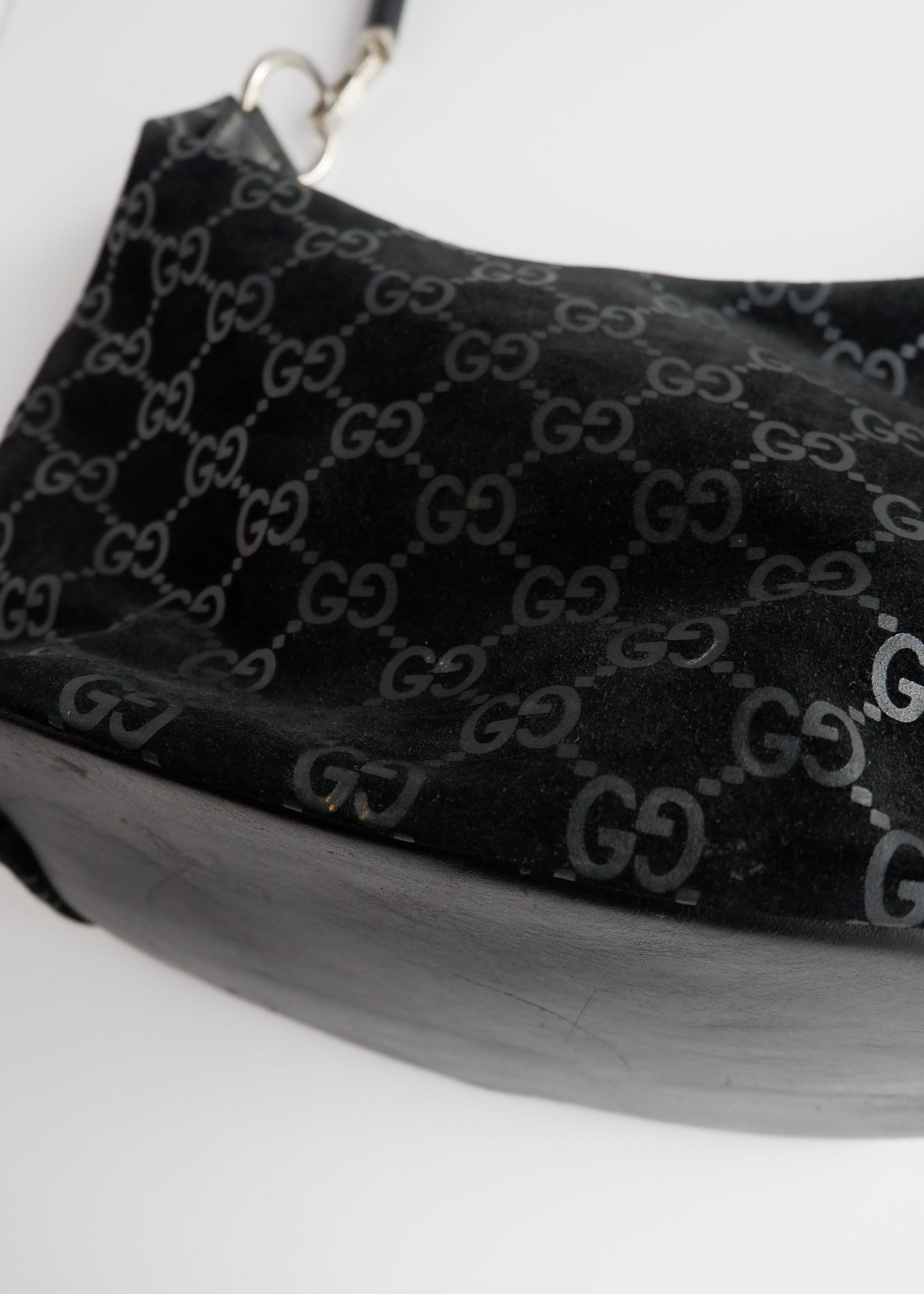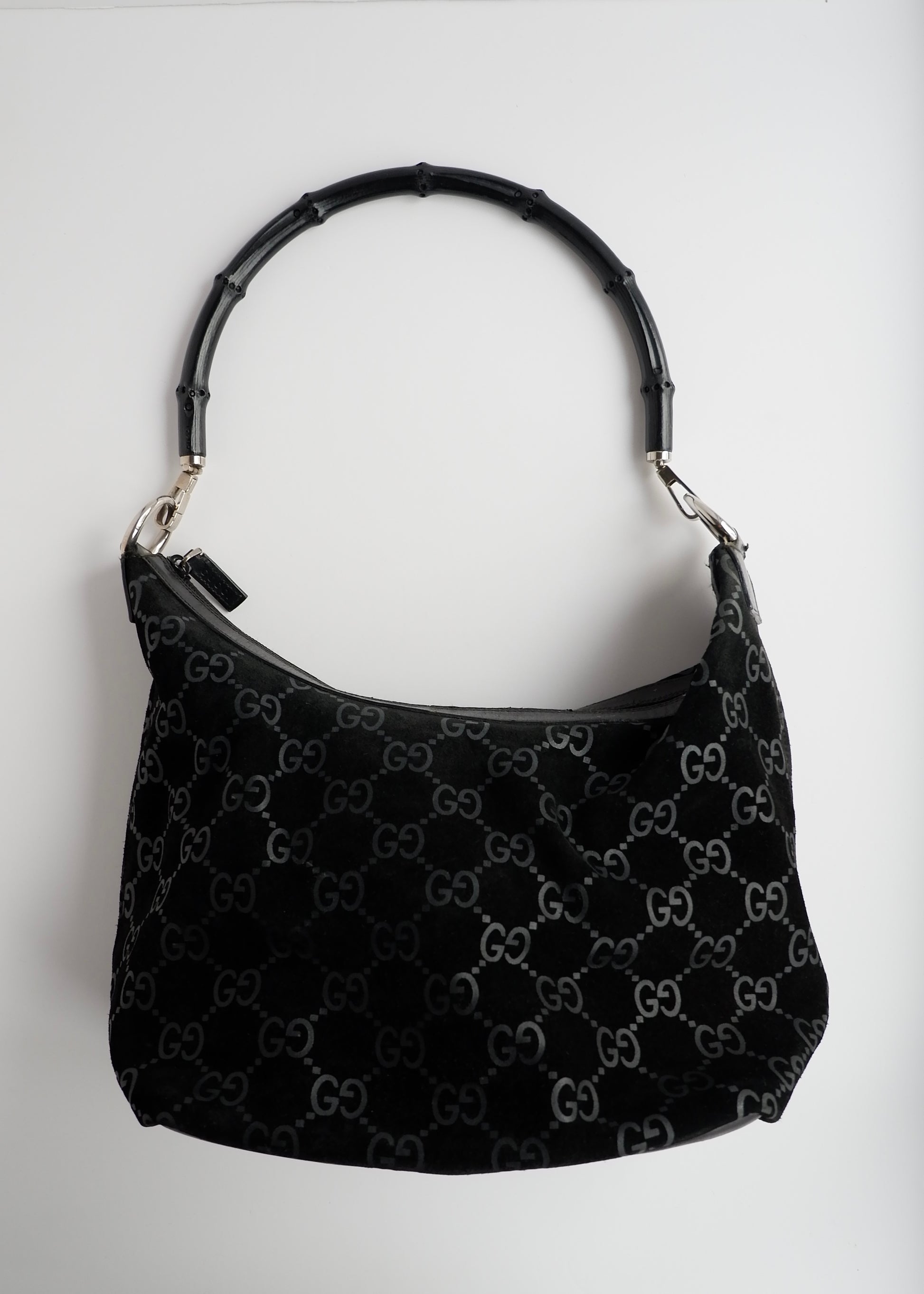 Authentic Preowned Gucci Black Suede Bamboo Handle Shoulder Bag