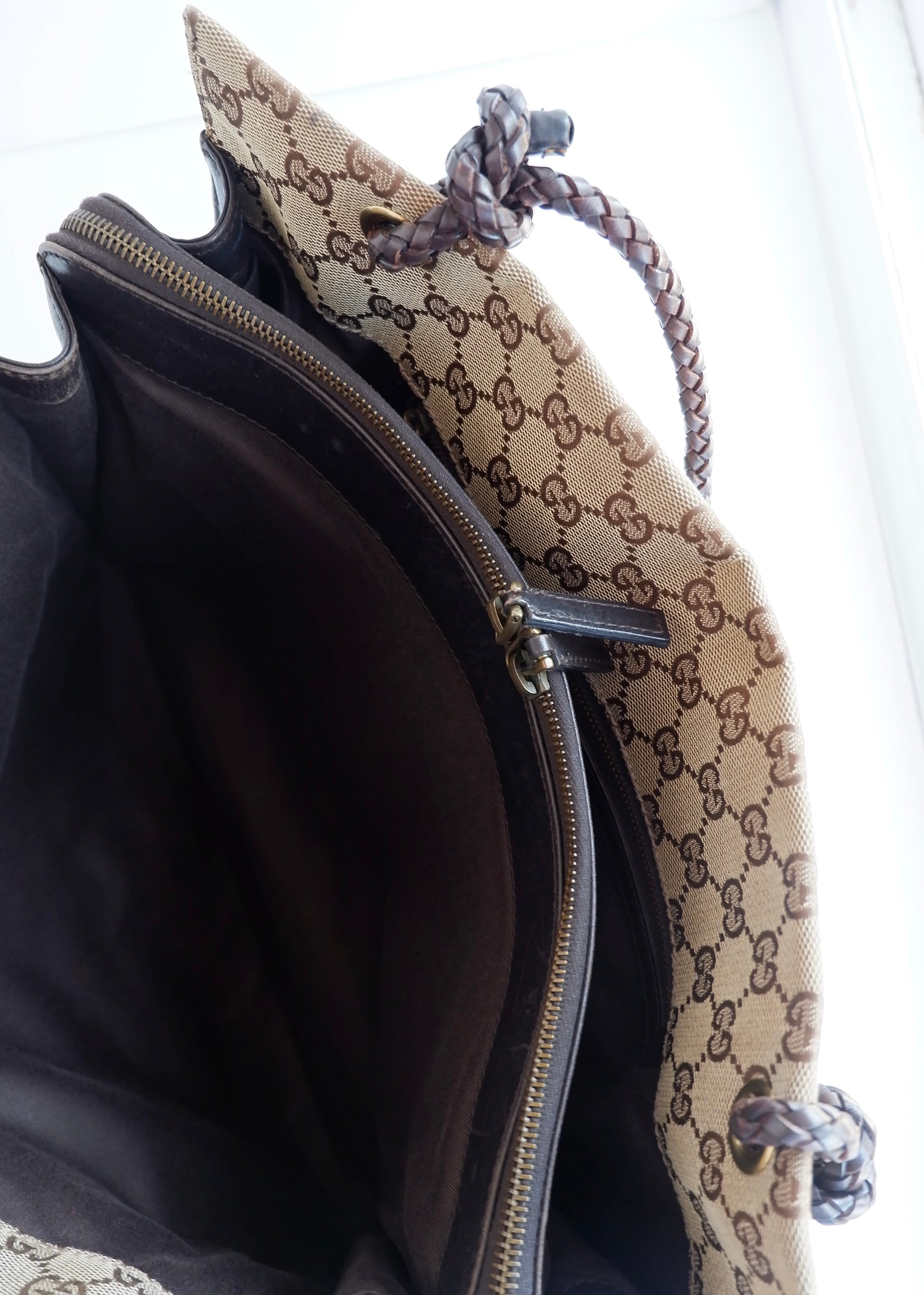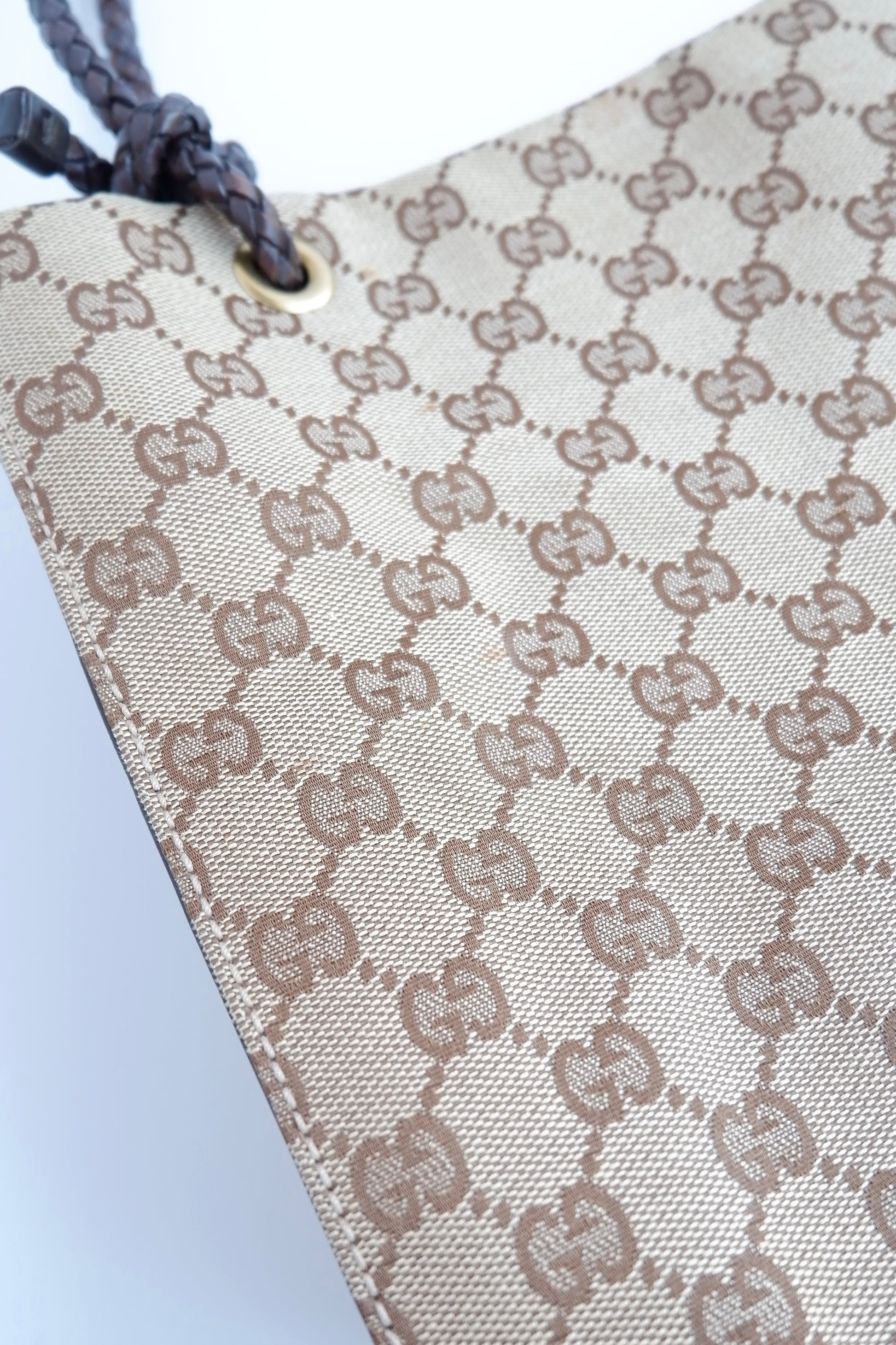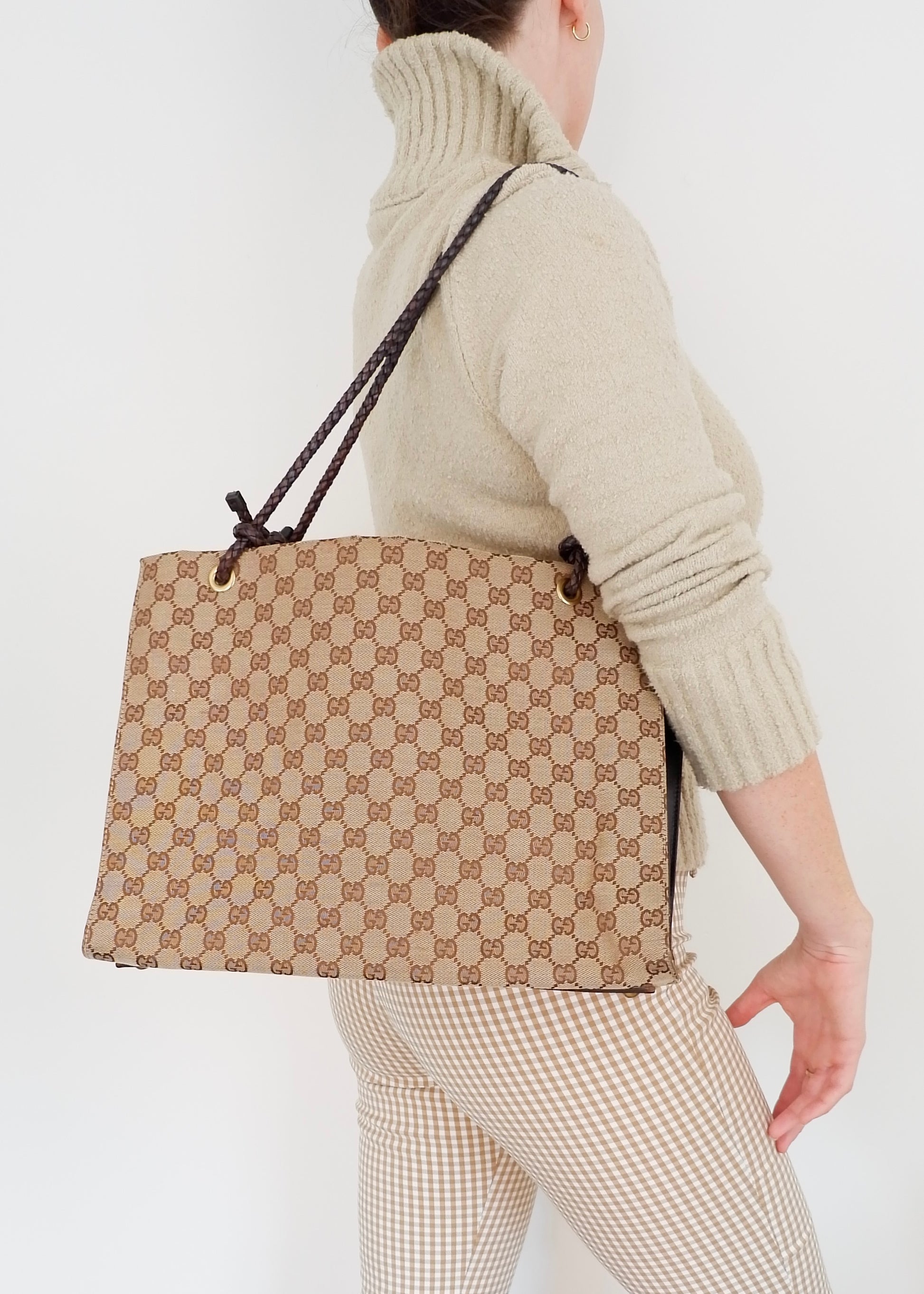 Authentic Preowned Gucci Brown GG Canvas Leather Braded Strap Tote Bag