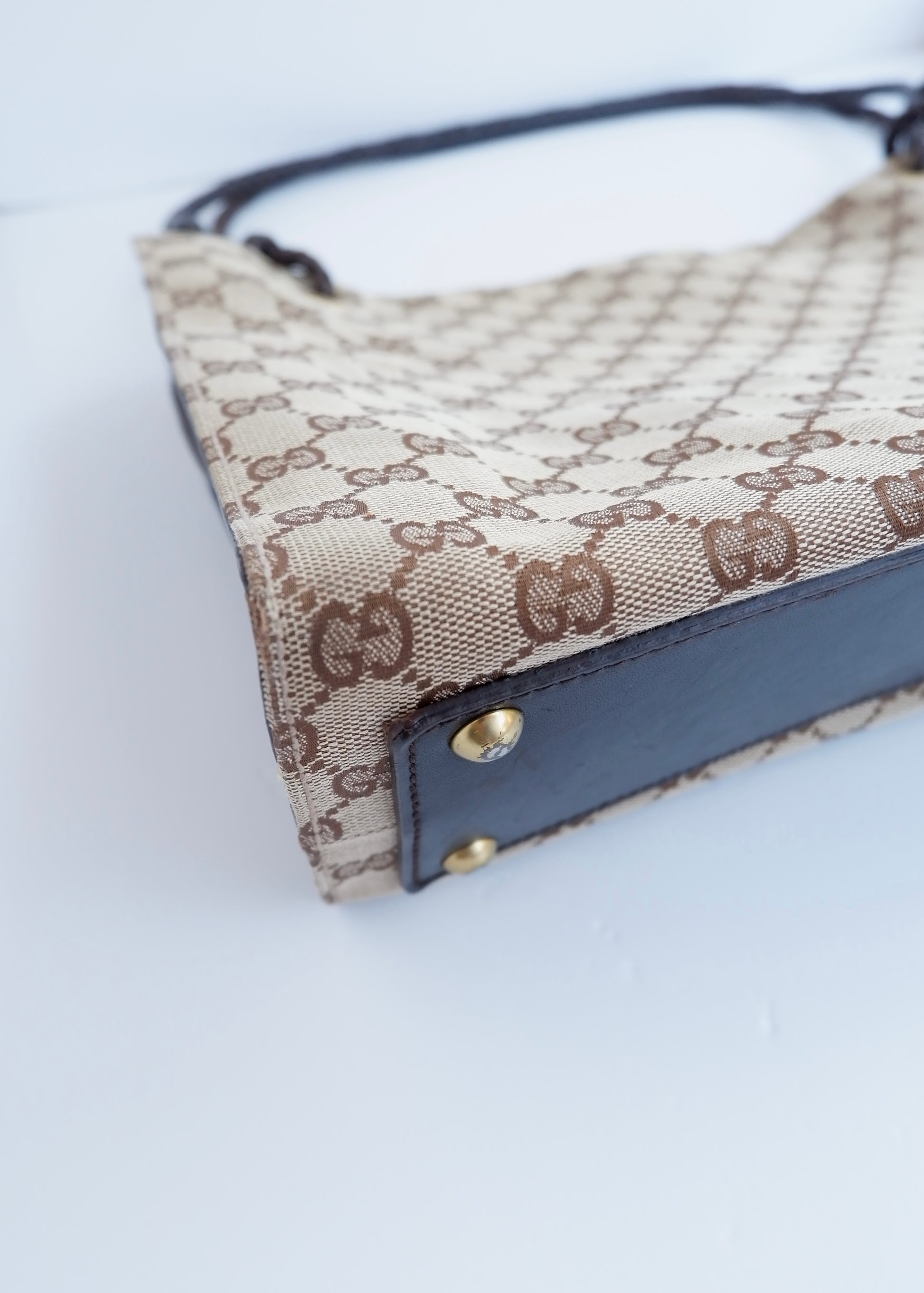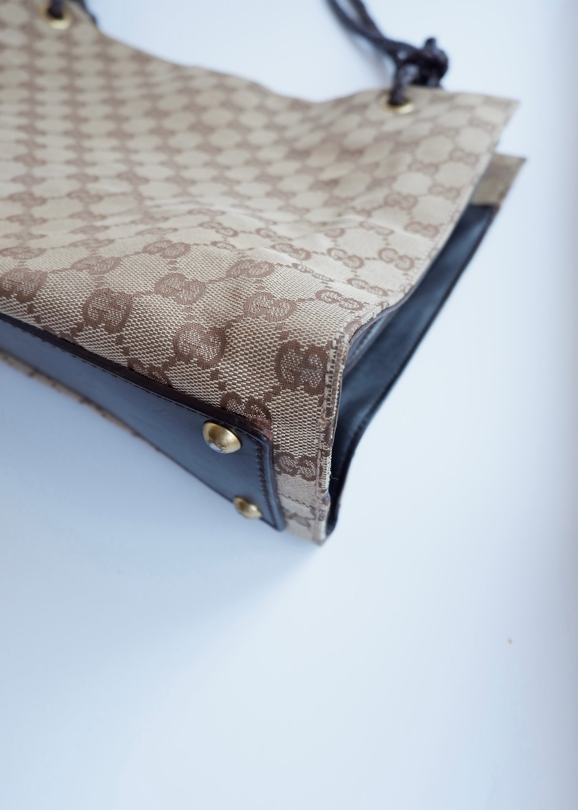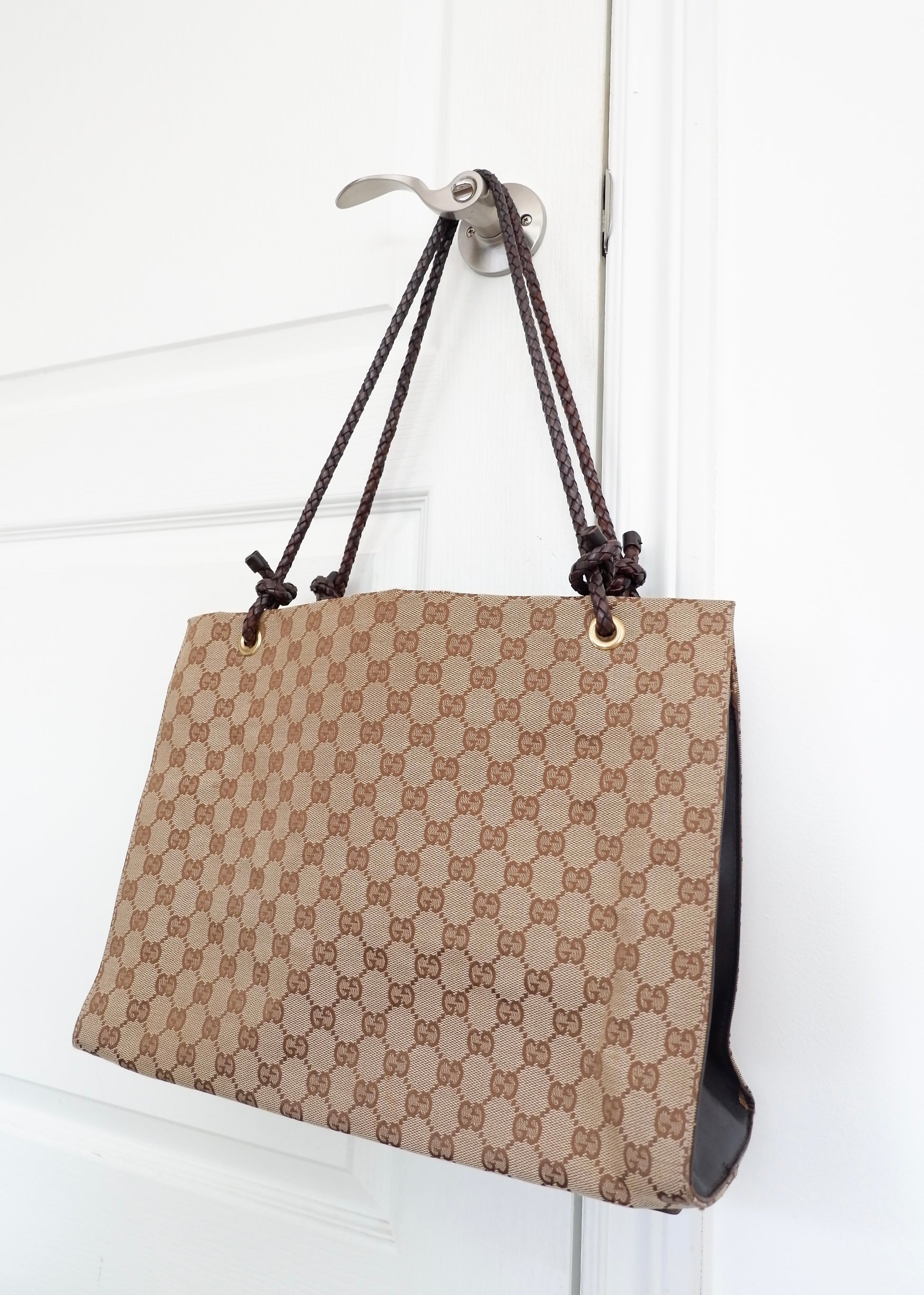 Authentic Preowned Gucci Brown GG Canvas Leather Braded Strap Tote Bag
