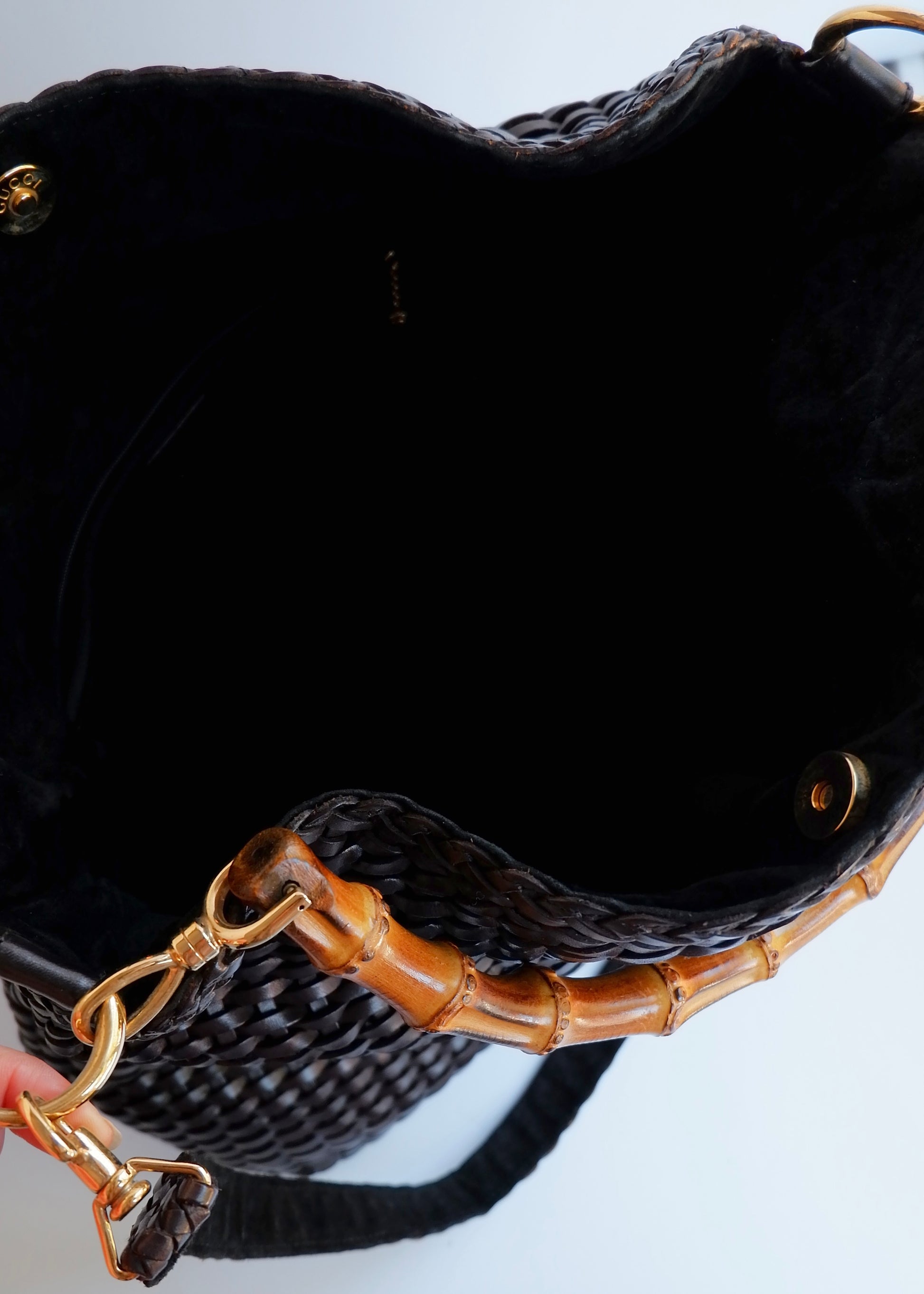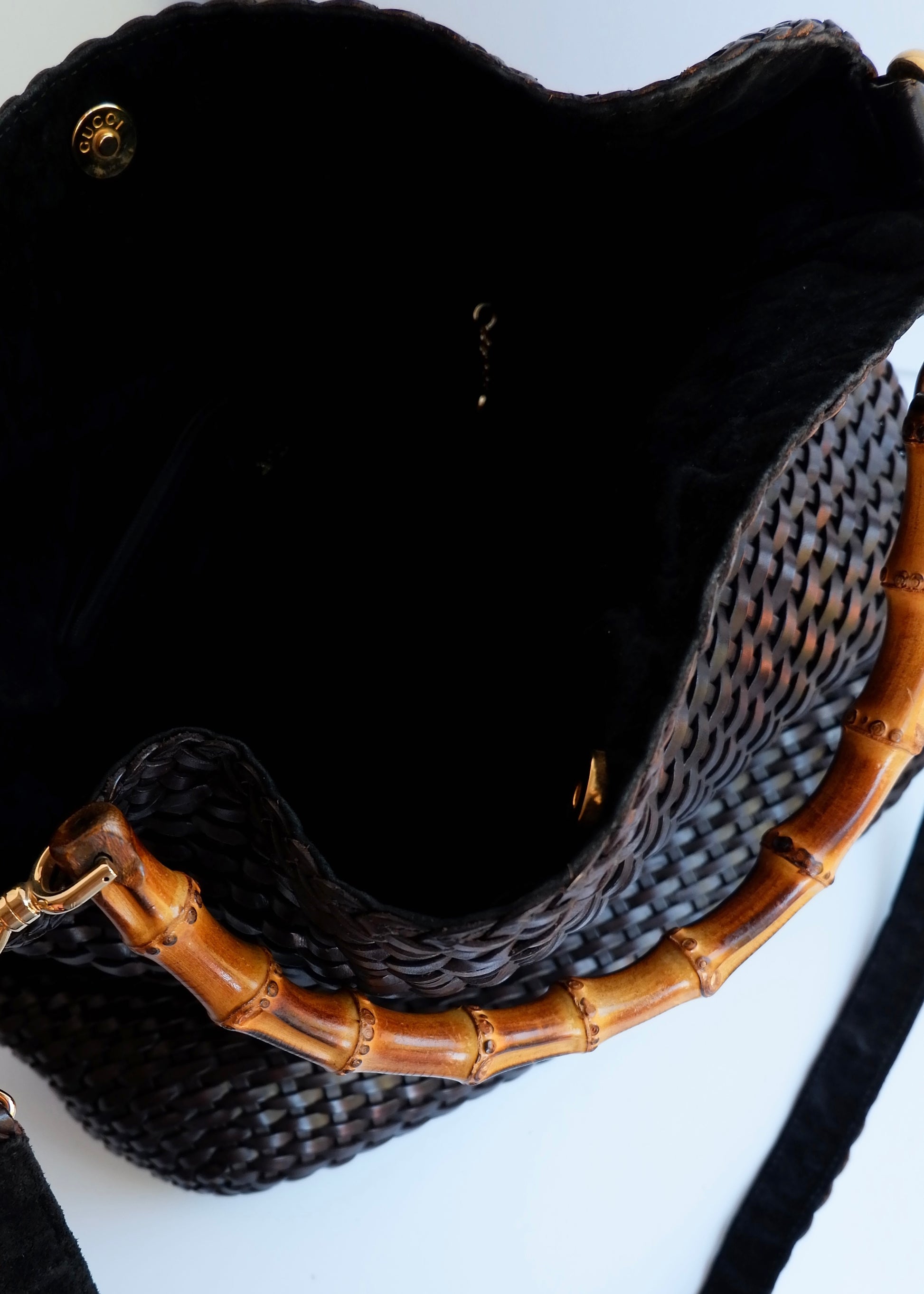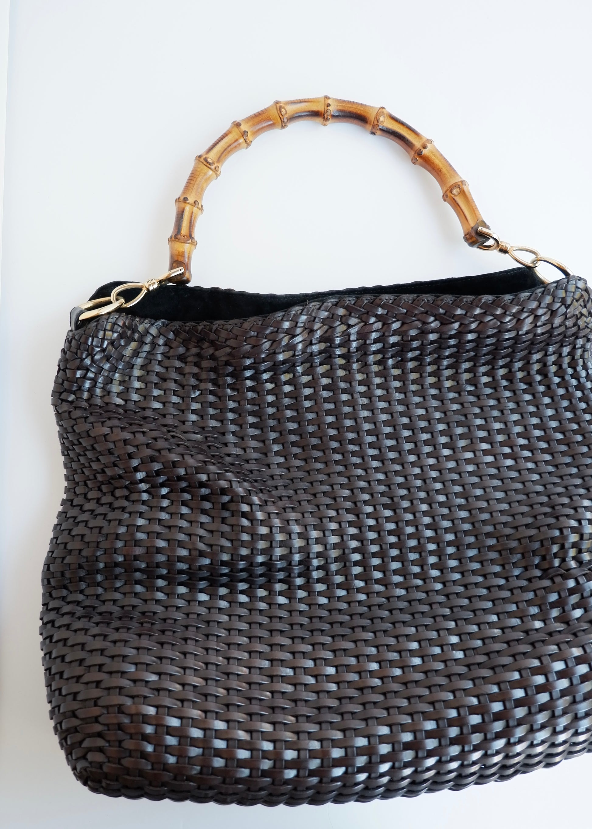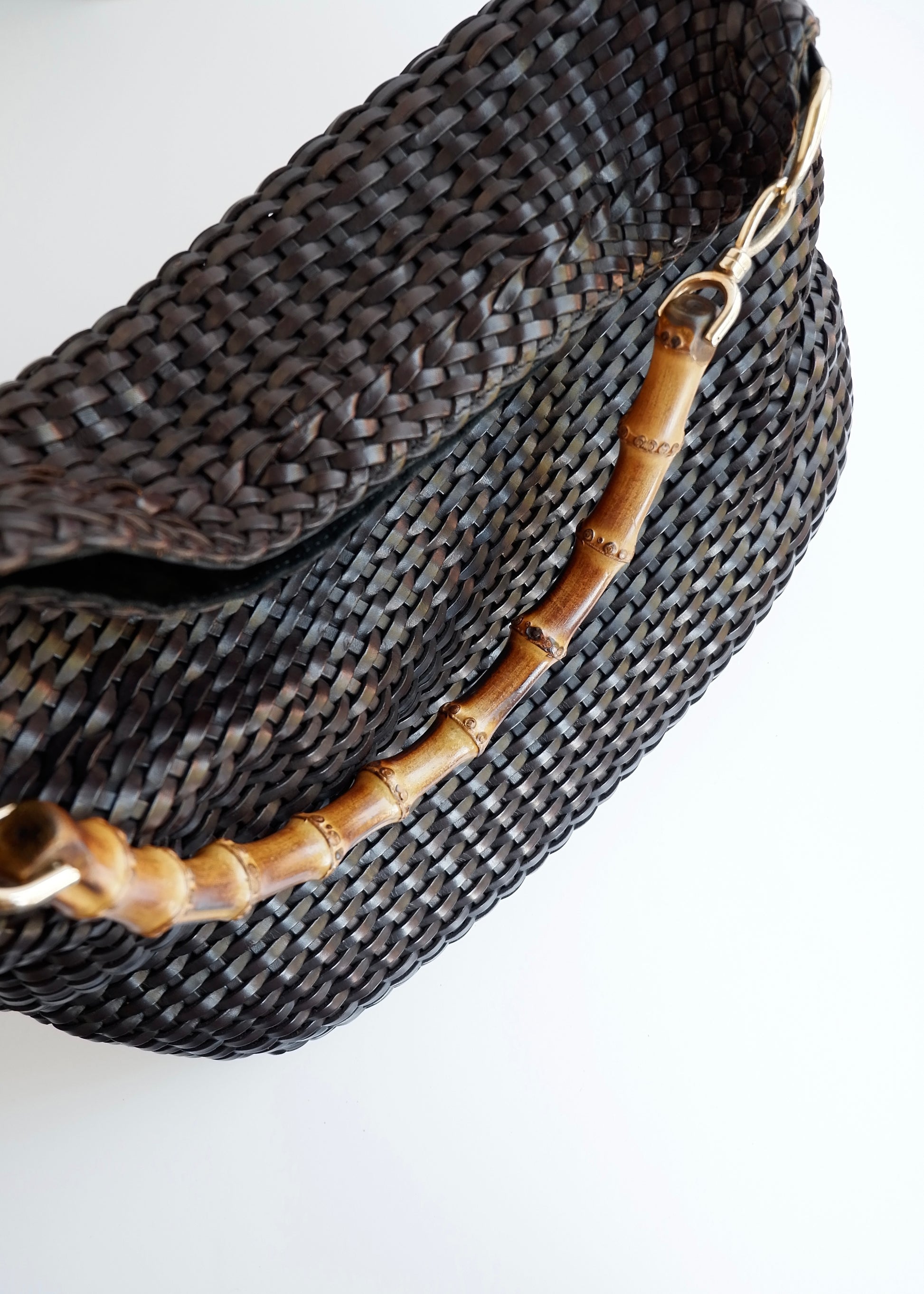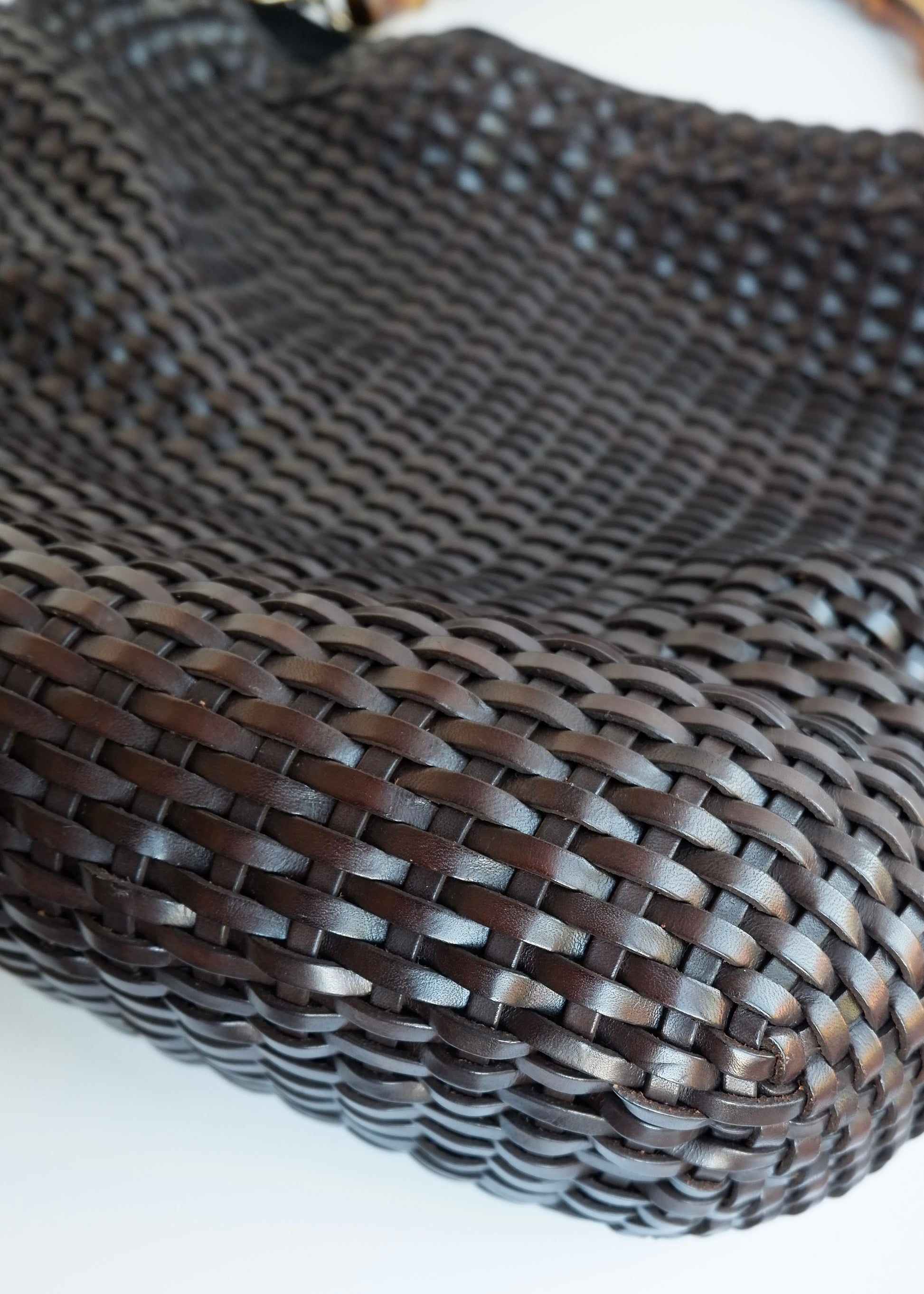 Authentic Preowned Gucci Brown Woven Leather Bamboo Hobo Shoulder Bag