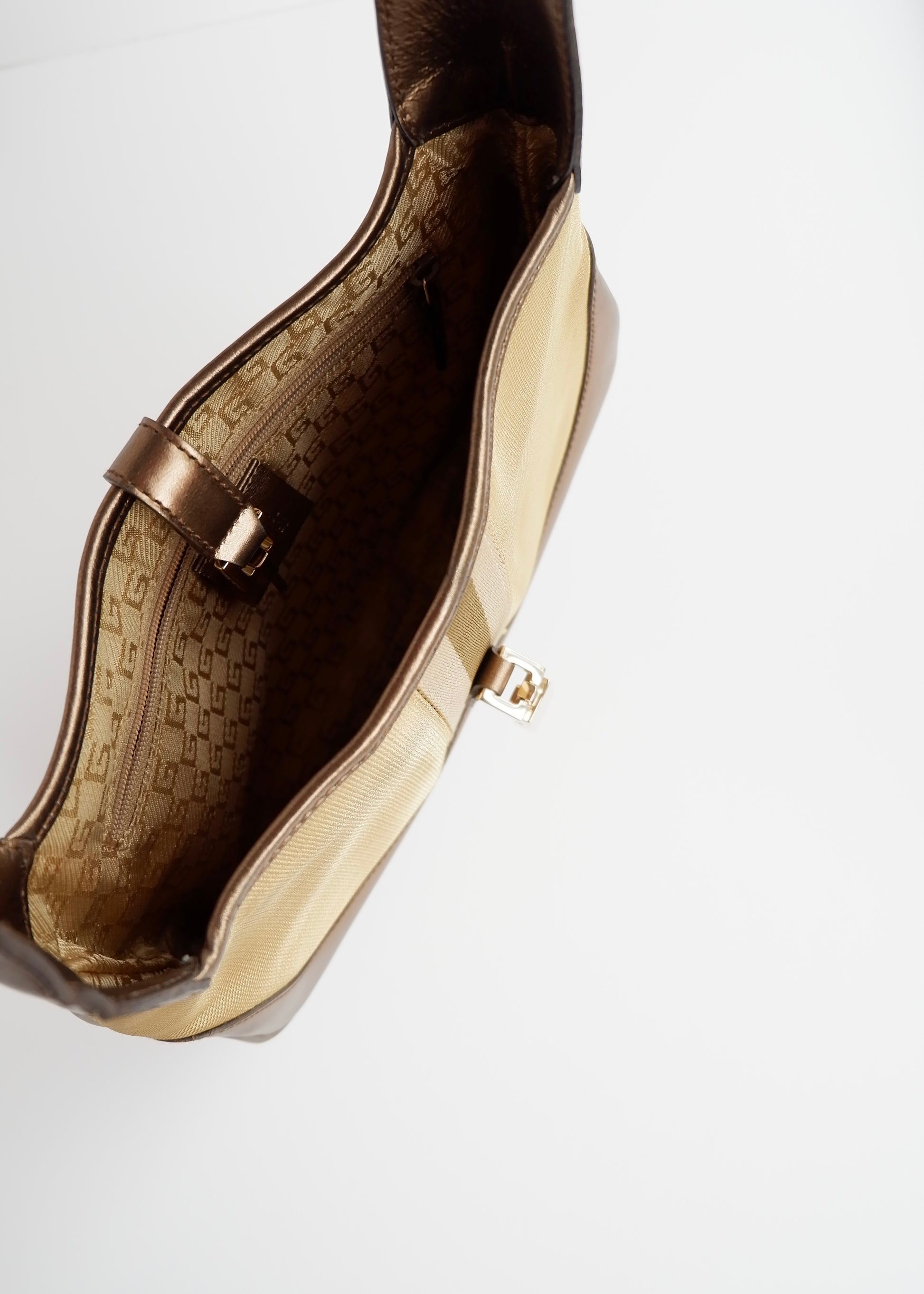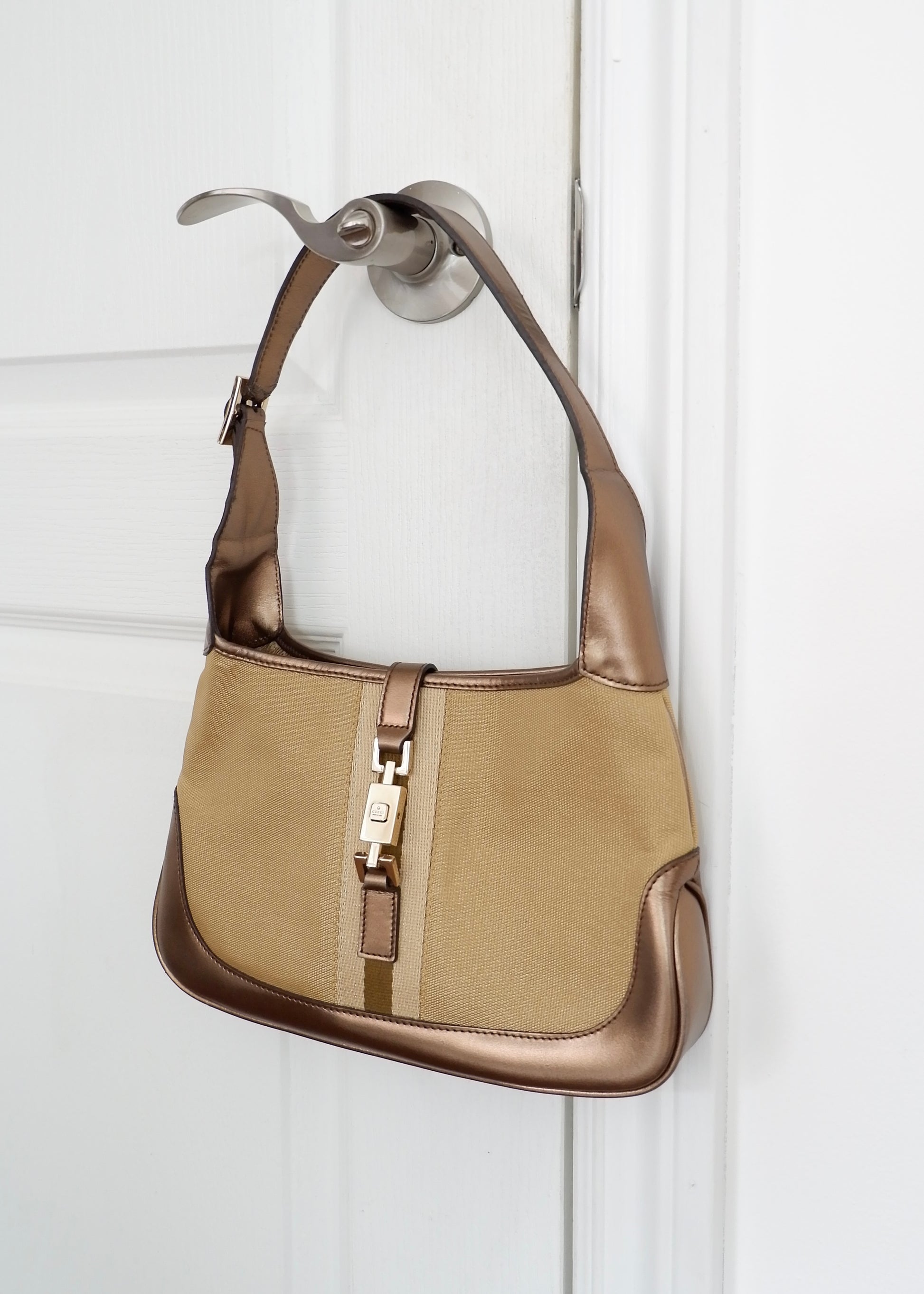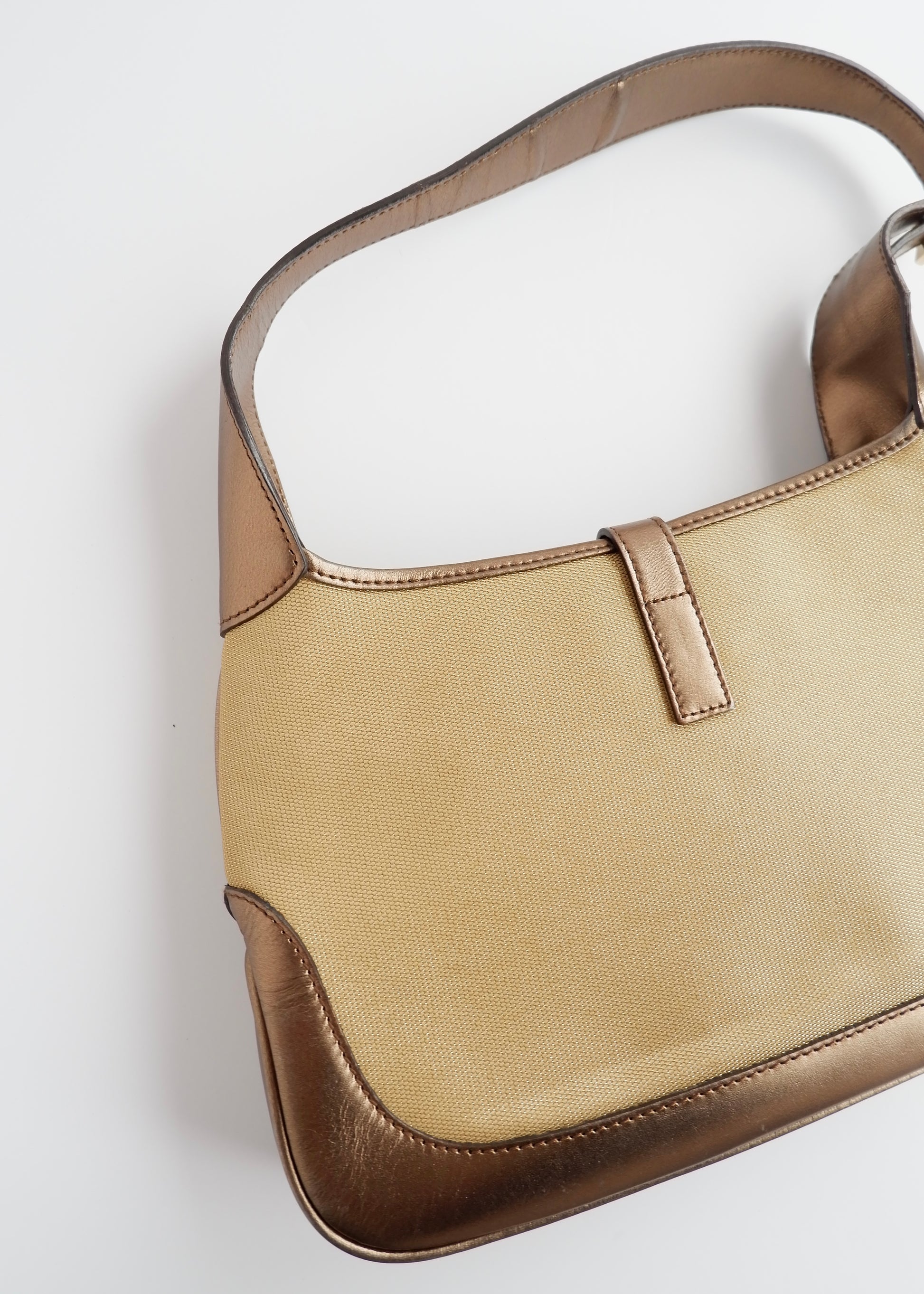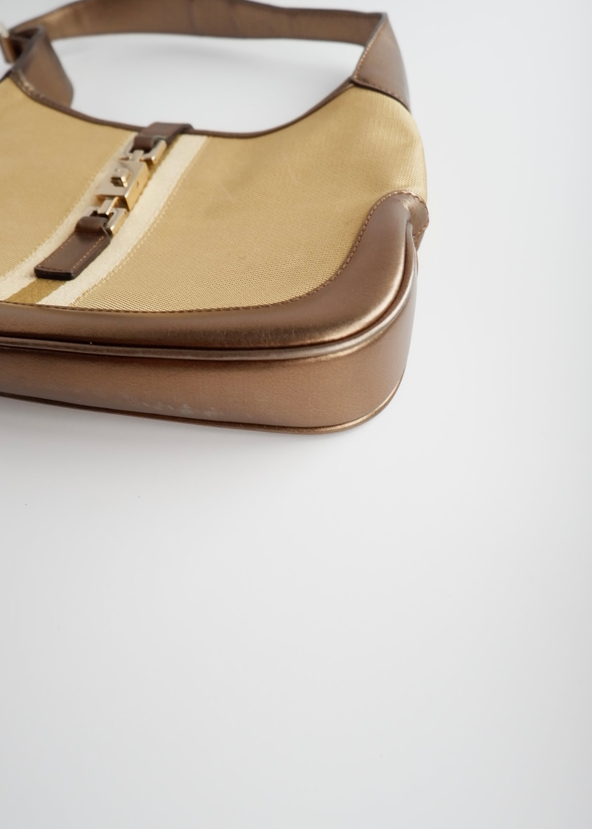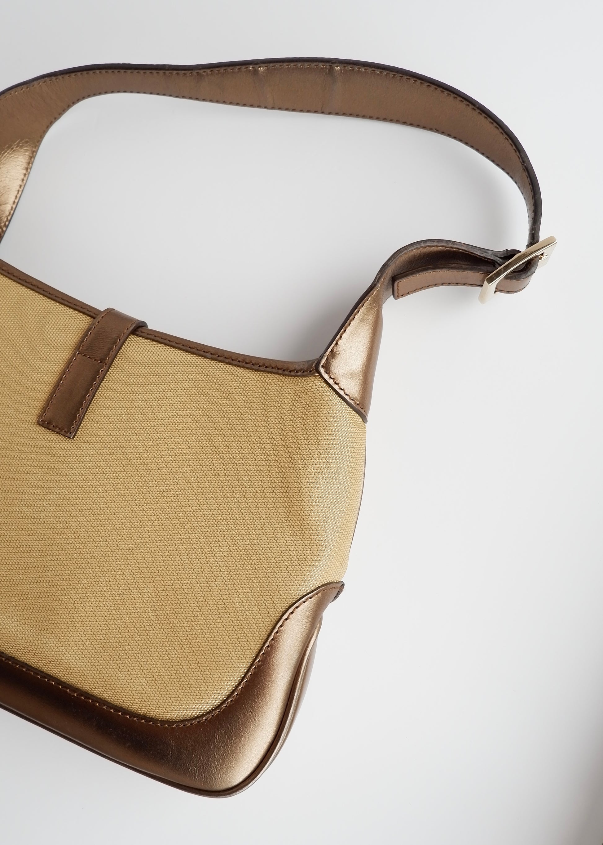 Authentic Preowned Gucci Gold/ Beige Canvas Leather Jackie Bag