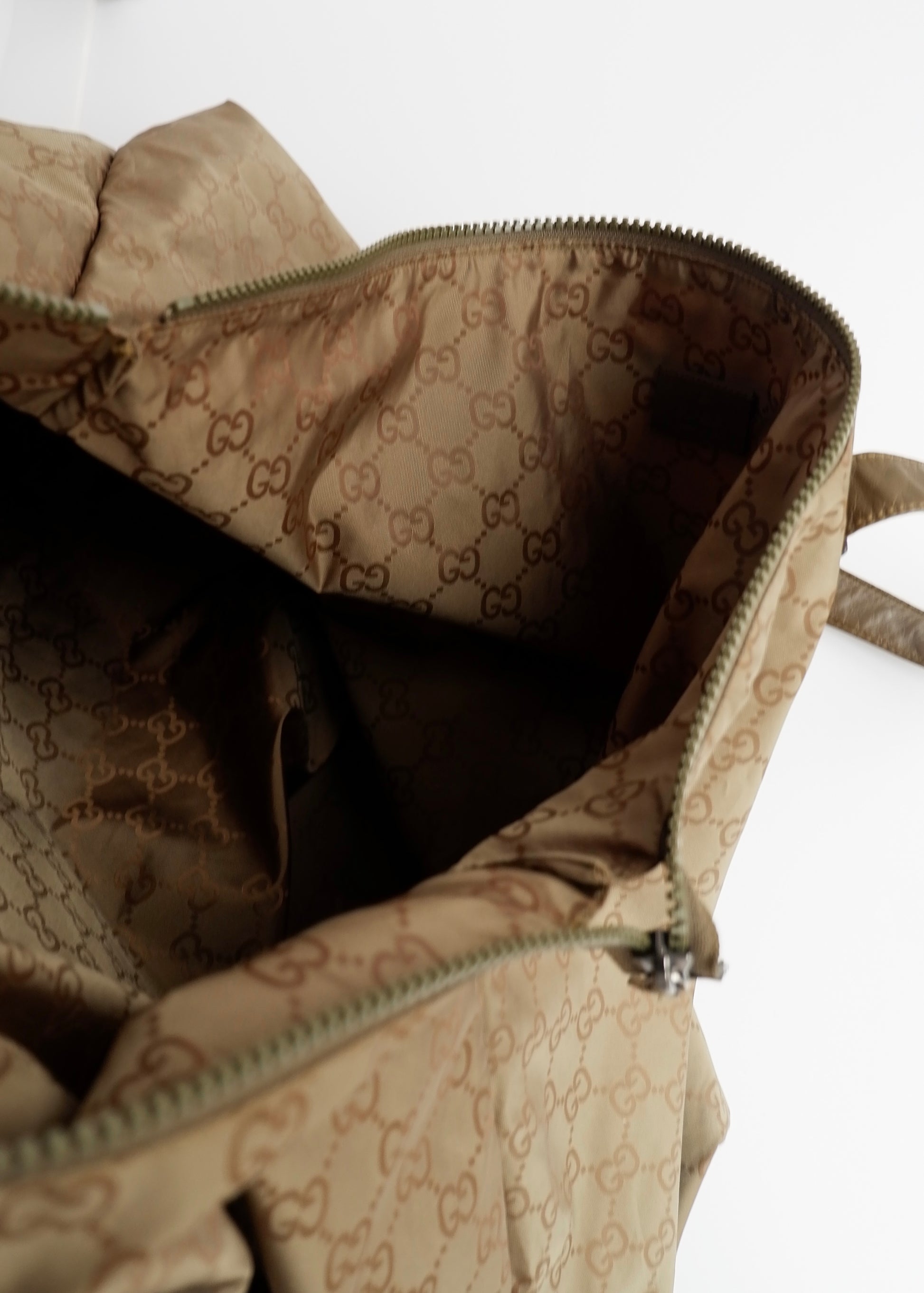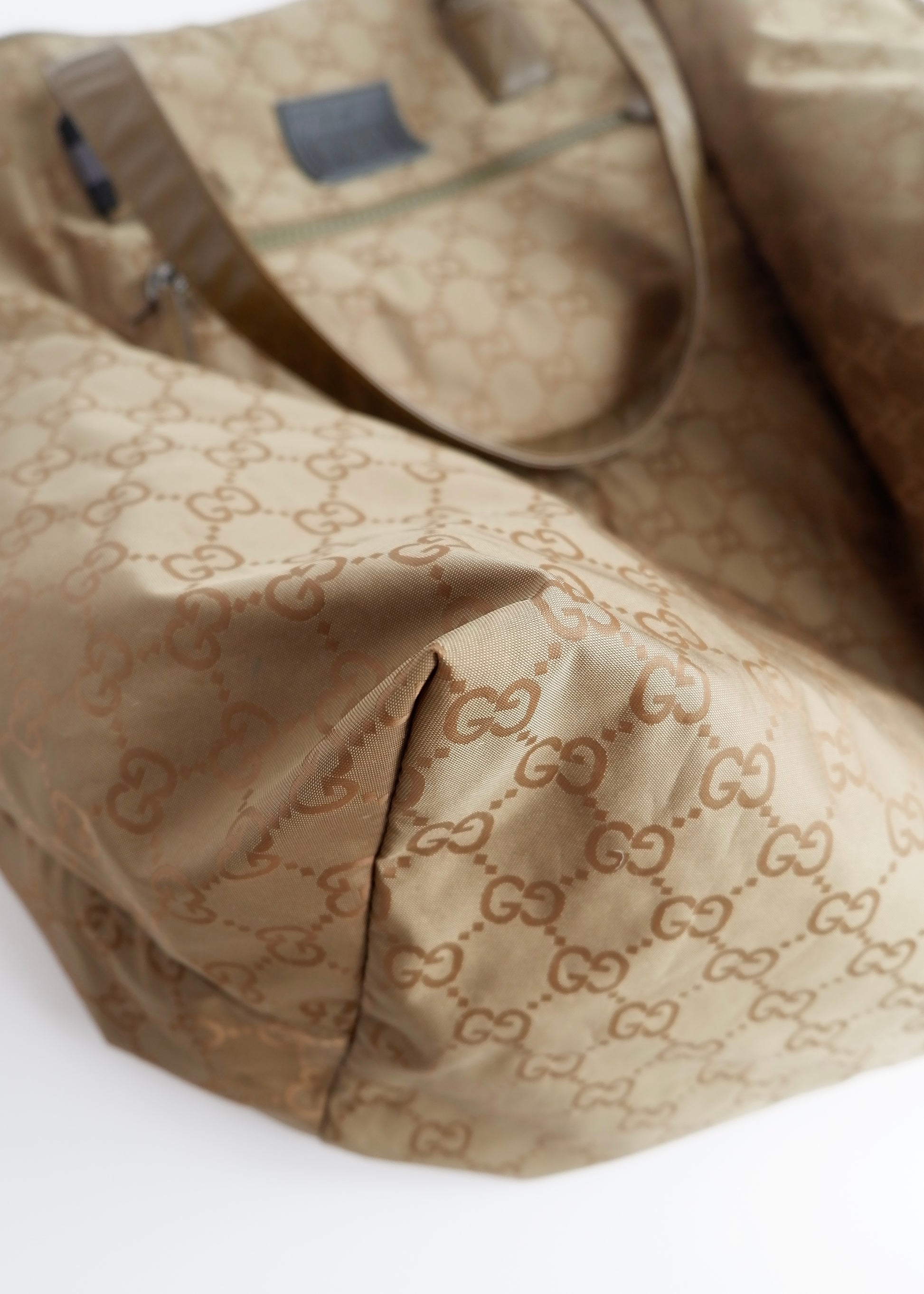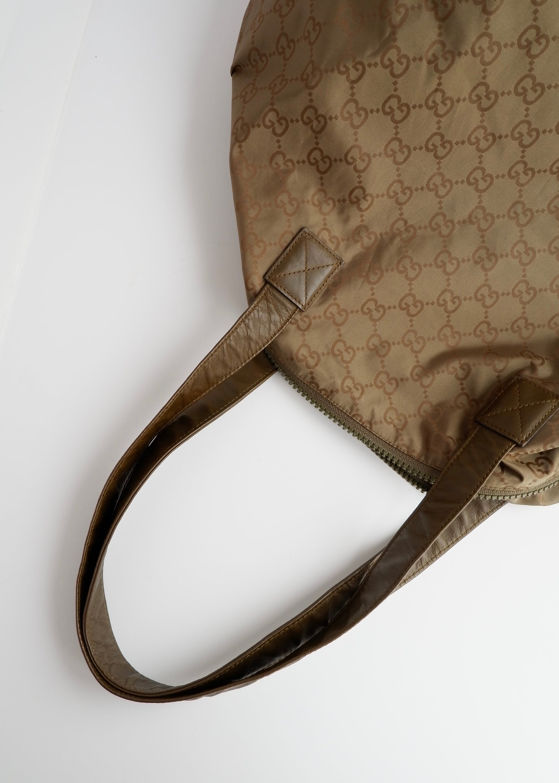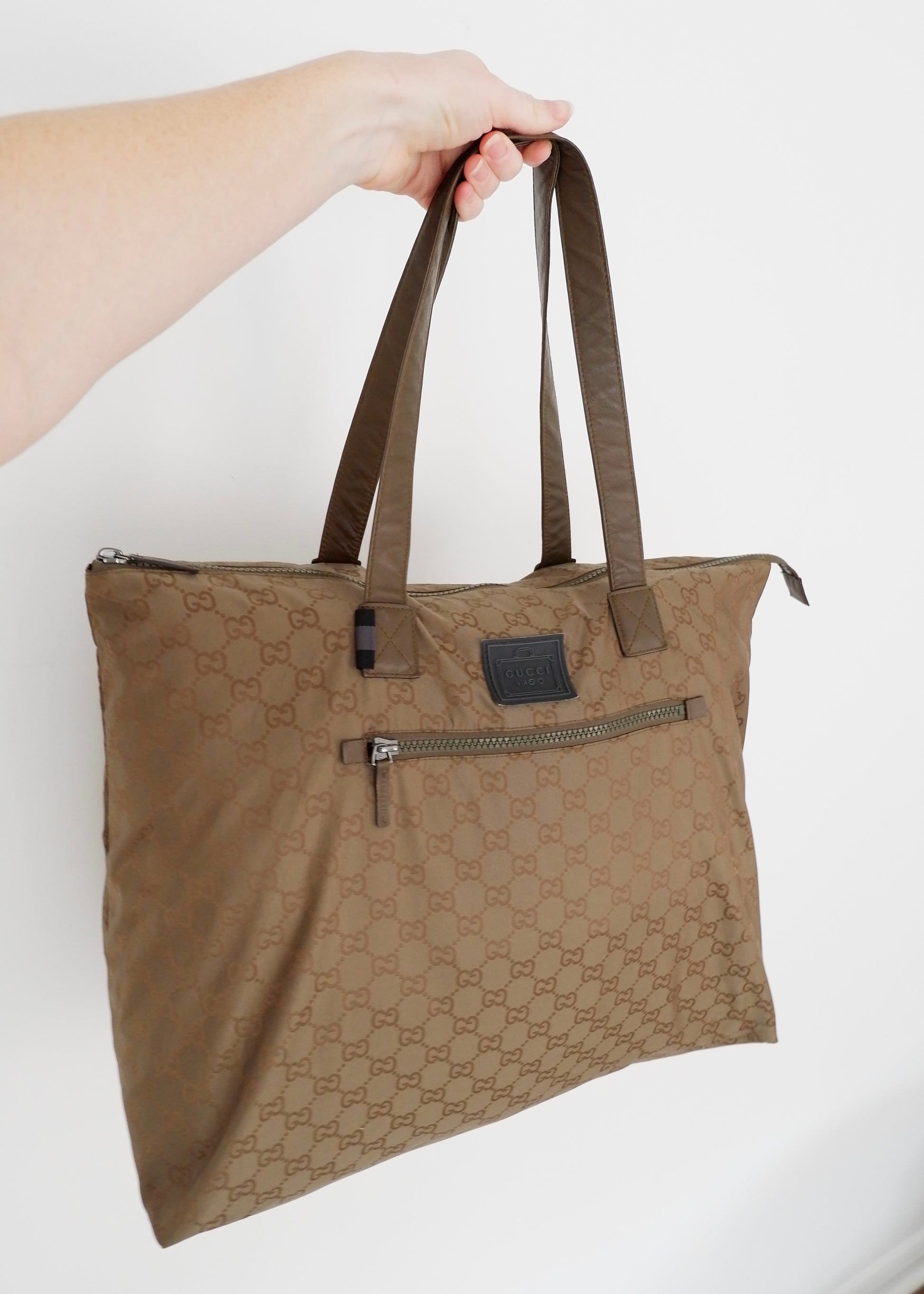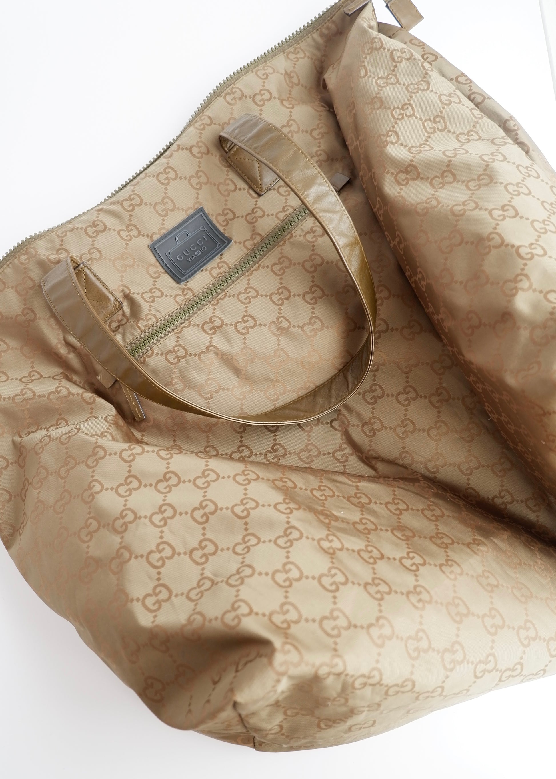 Authentic Preowned Gucci Olive Green Nylon Light Weight GG Print Extra Larger Travel Tote