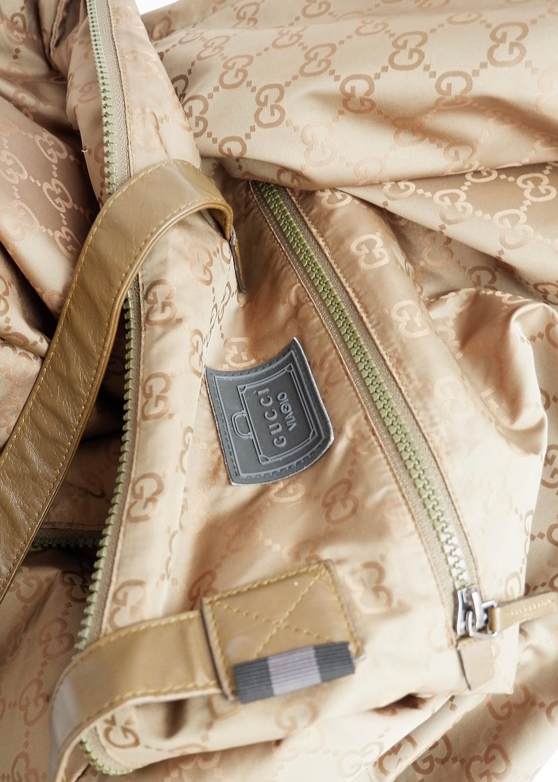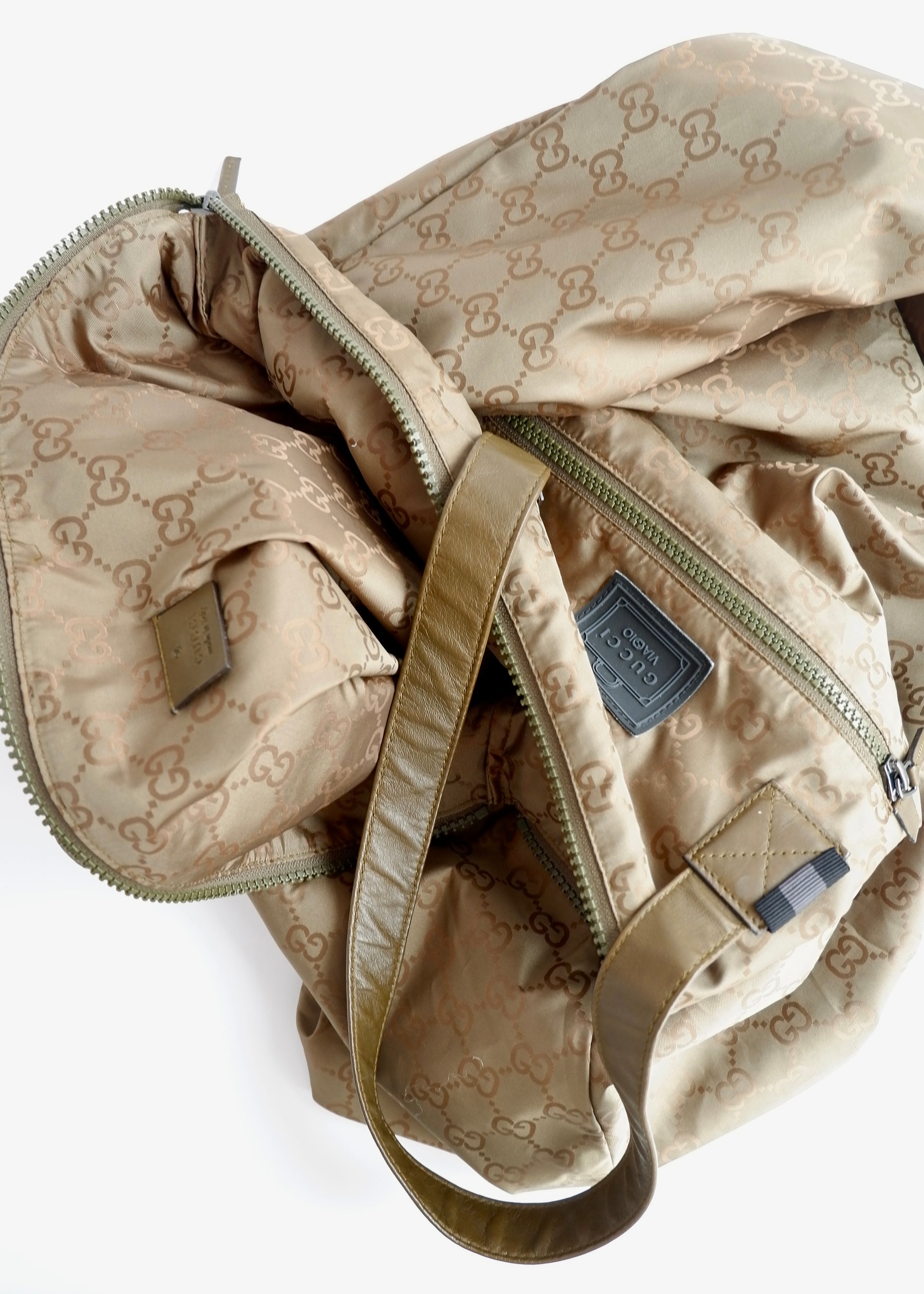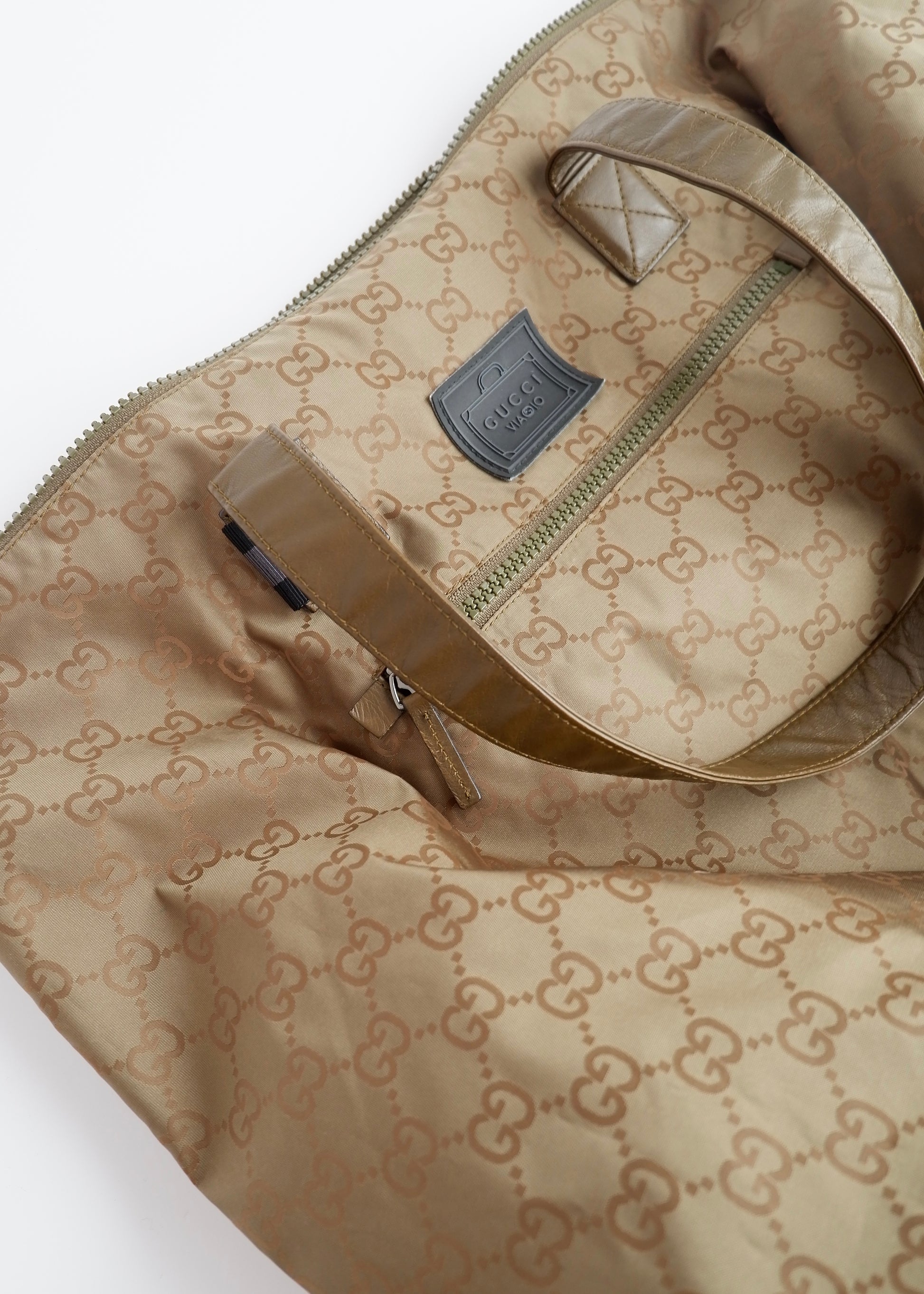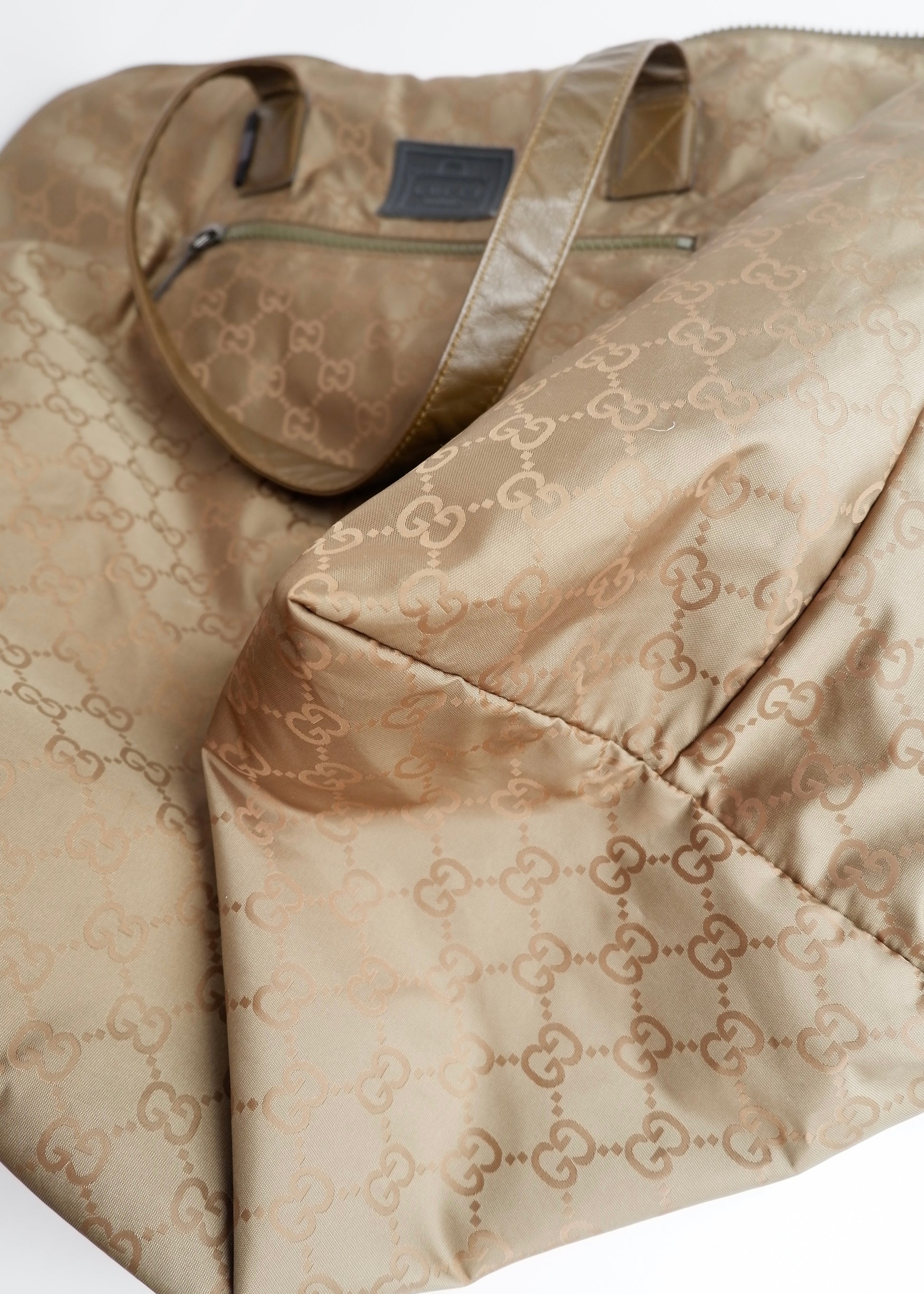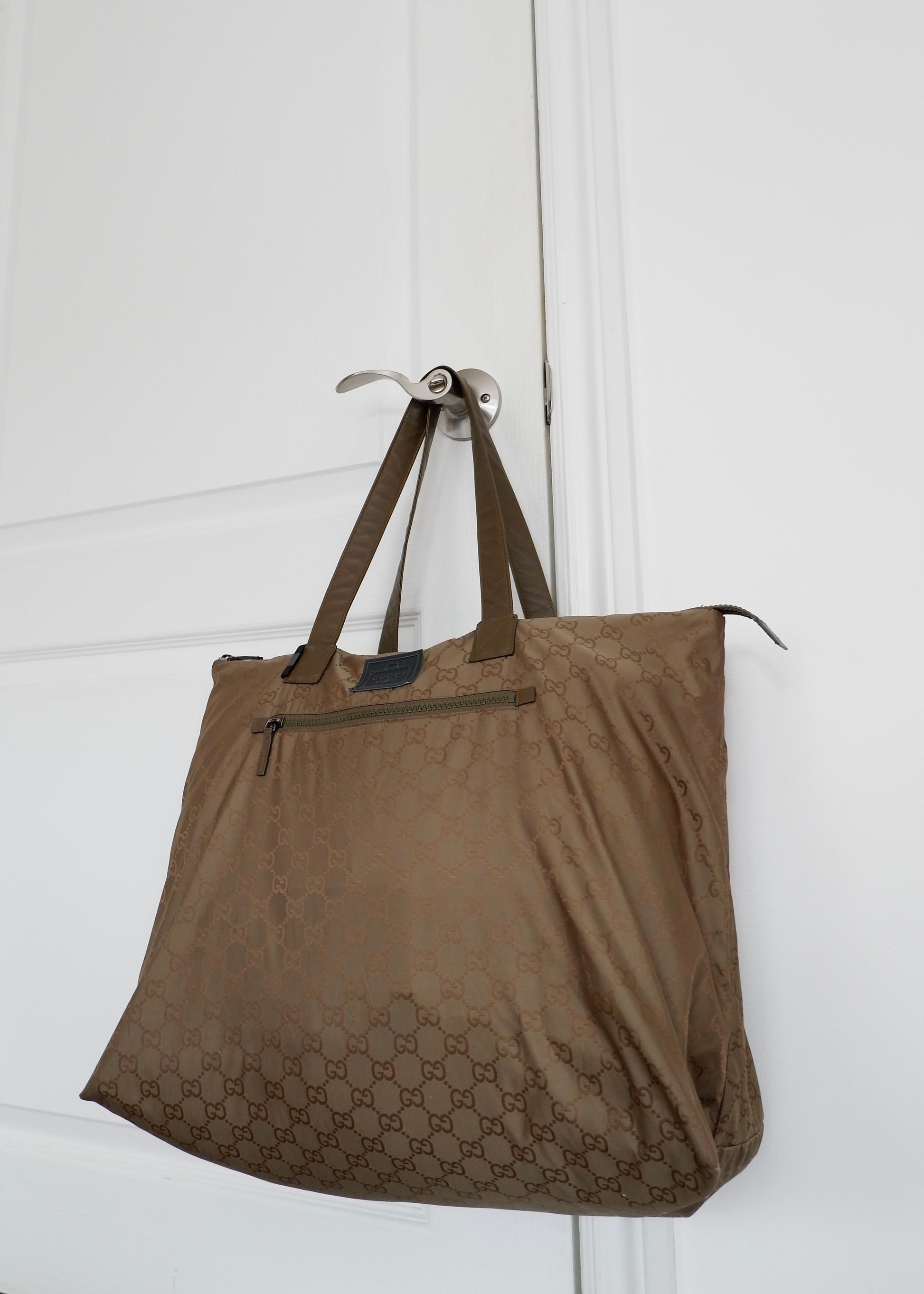 Authentic Preowned Gucci Olive Green Nylon Light Weight GG Print Extra Larger Travel Tote