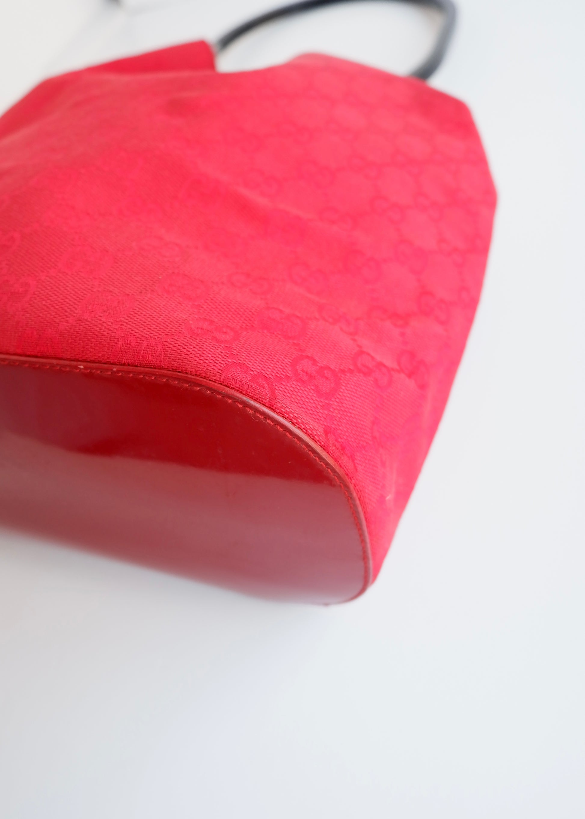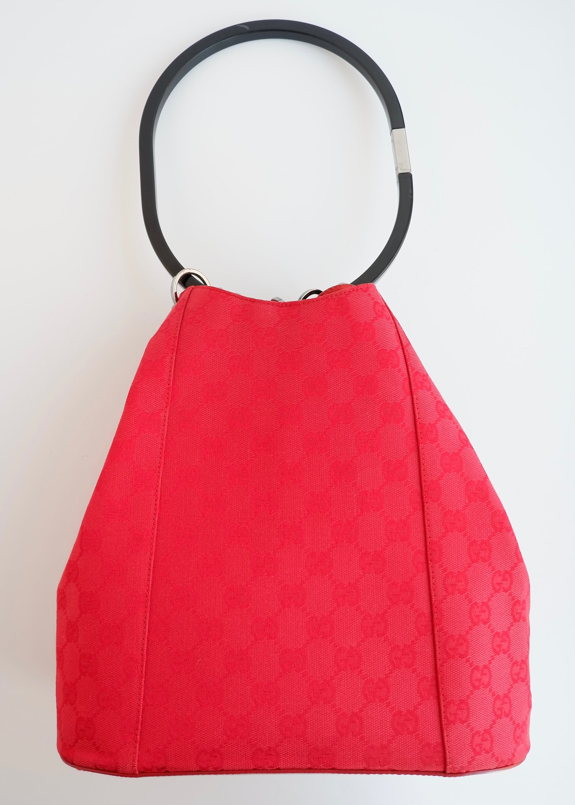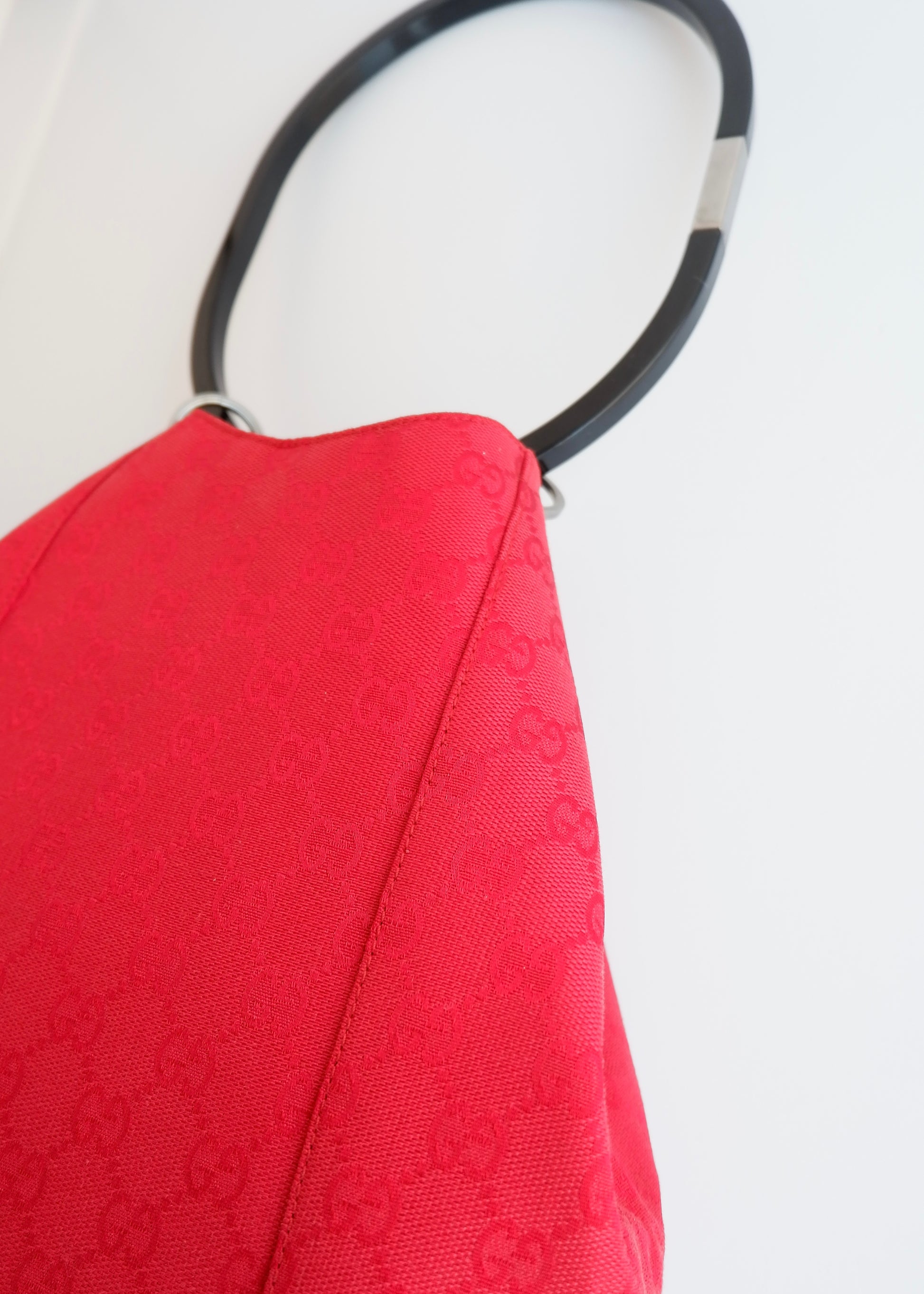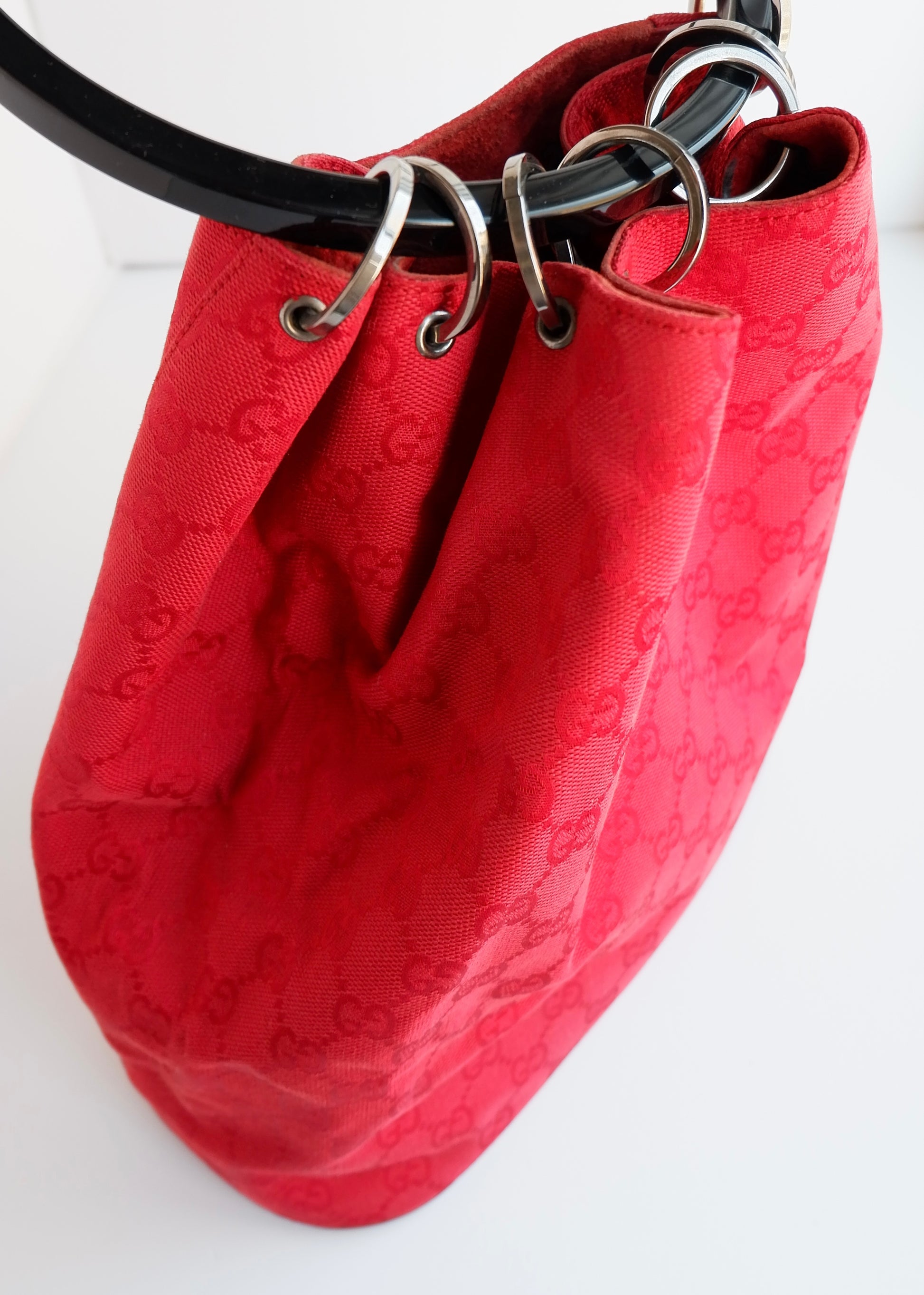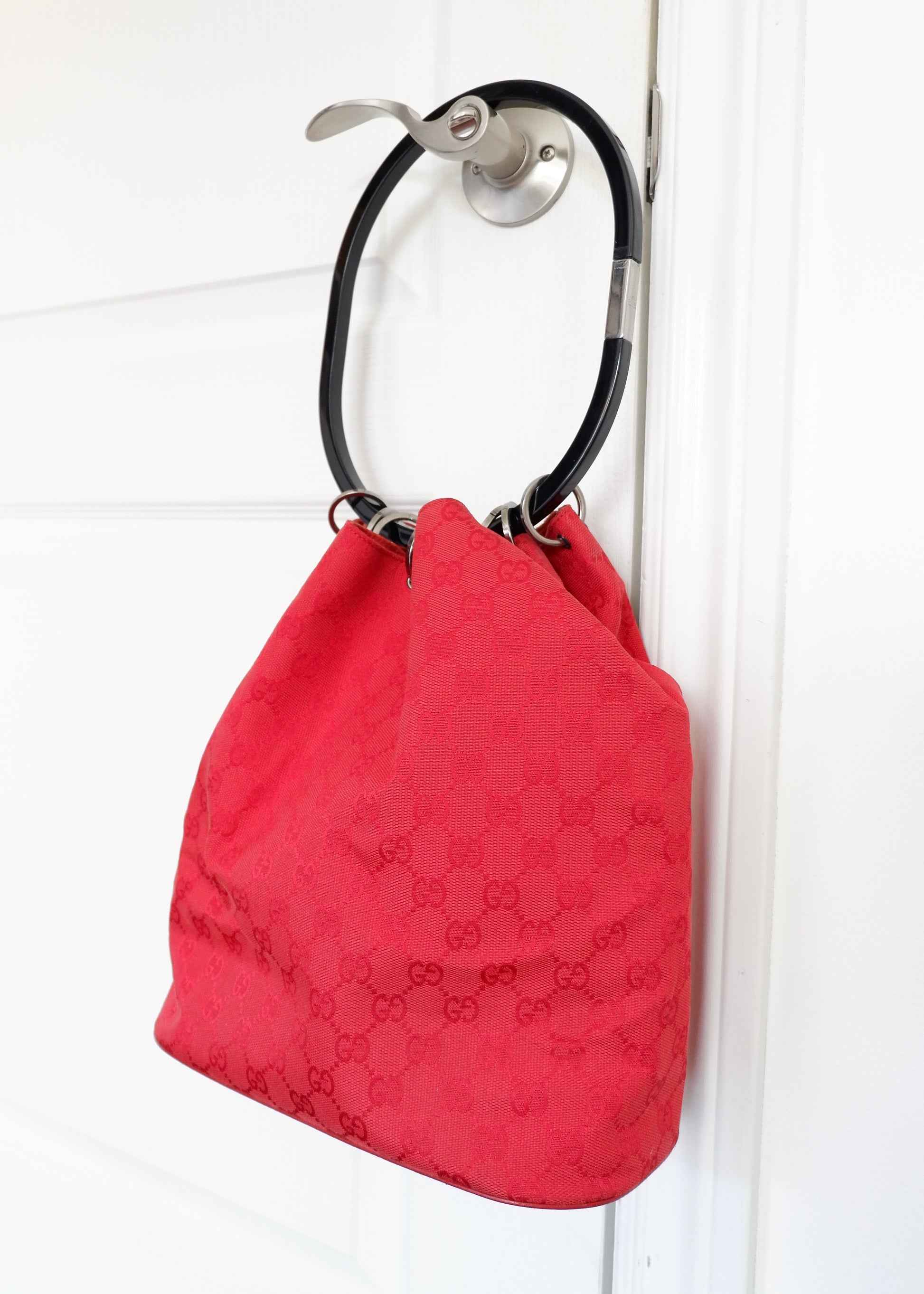 Authentic Preowned Gucci Red GG Canvas Hoop Shoulder Bag