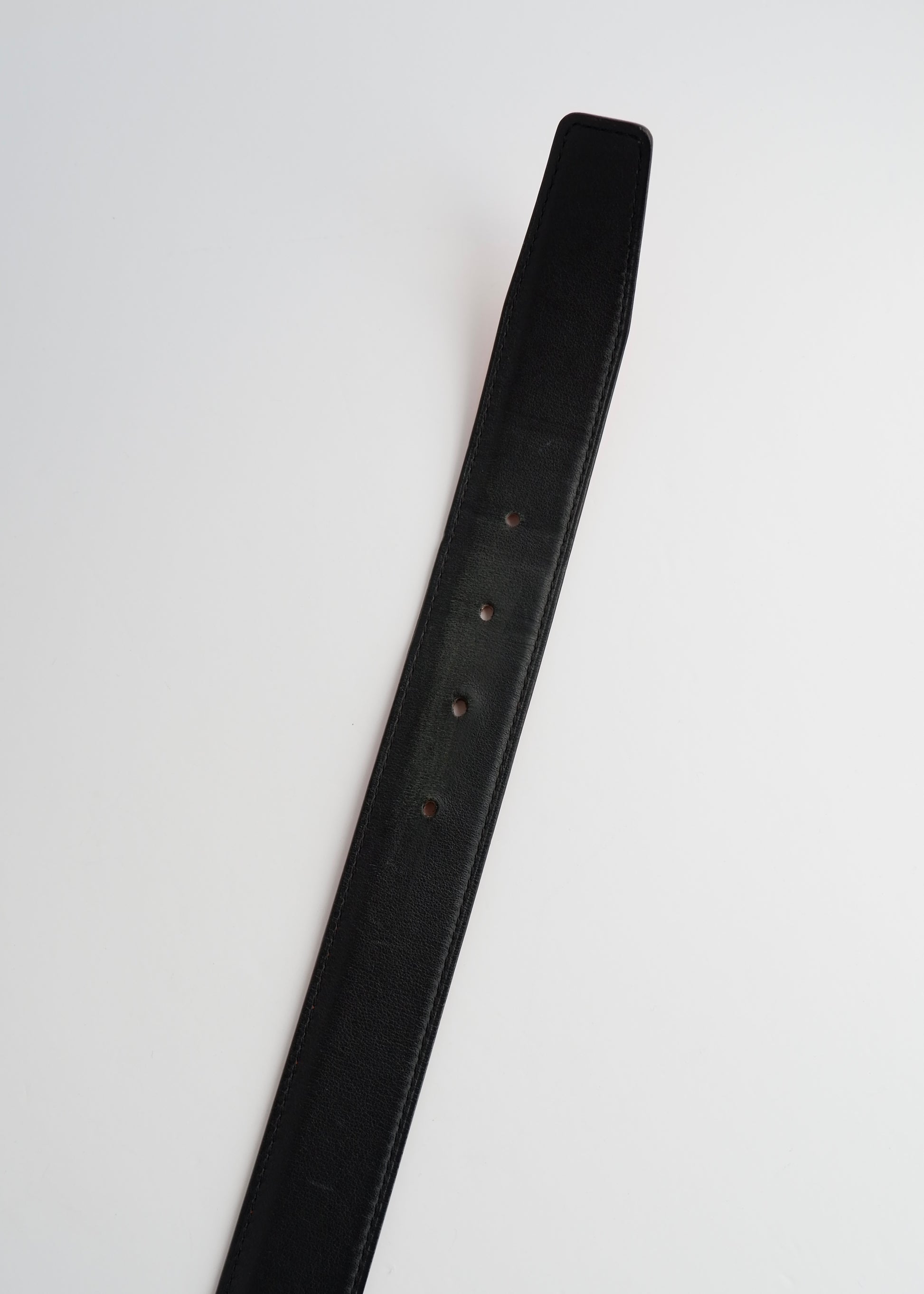 Condition: 8/10 Good Condition - Light warping/ movement to the leather belt (has been worn). An extra hole has been added. Signs of where the buckle has been attached on the black leather side of the belt.