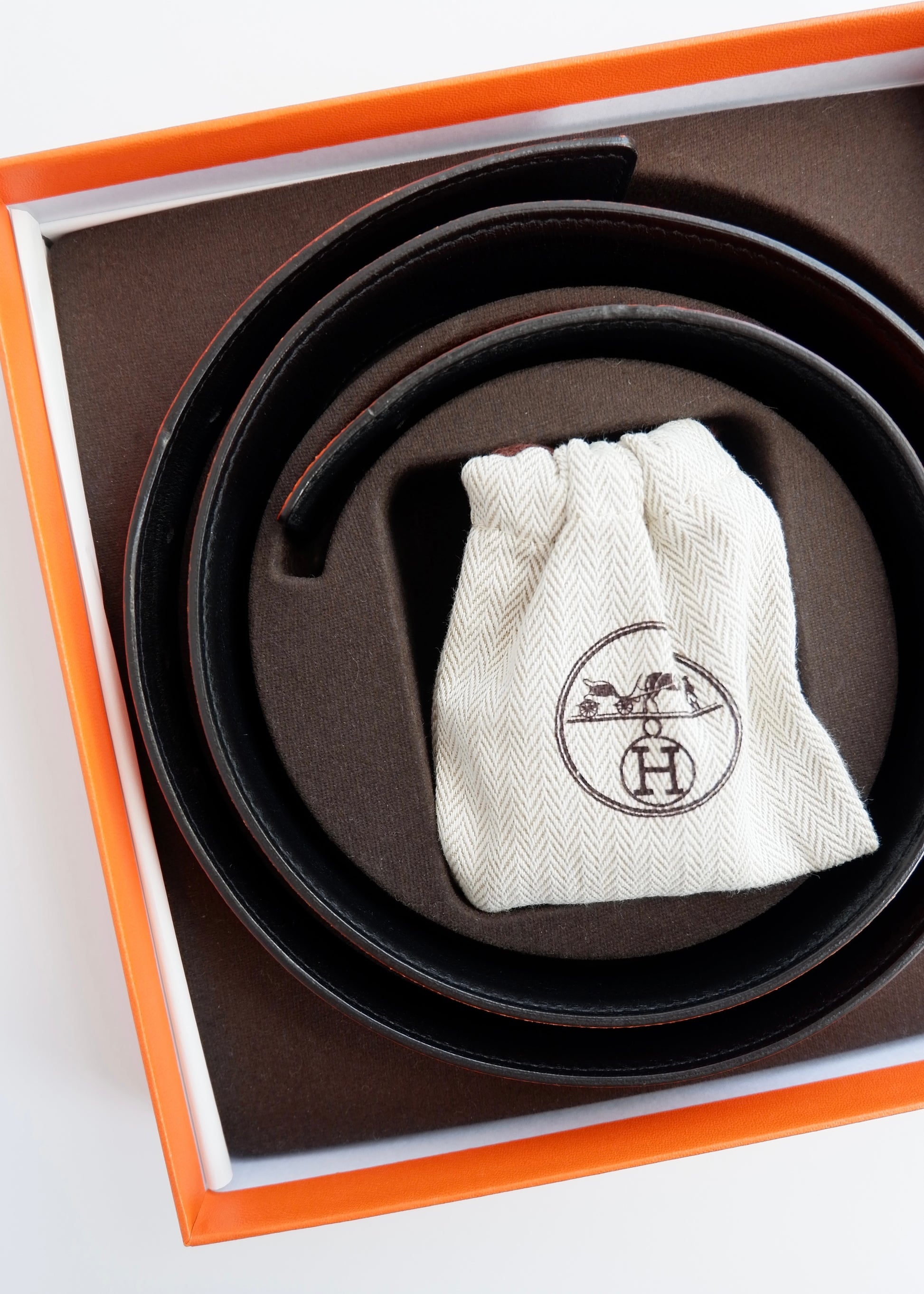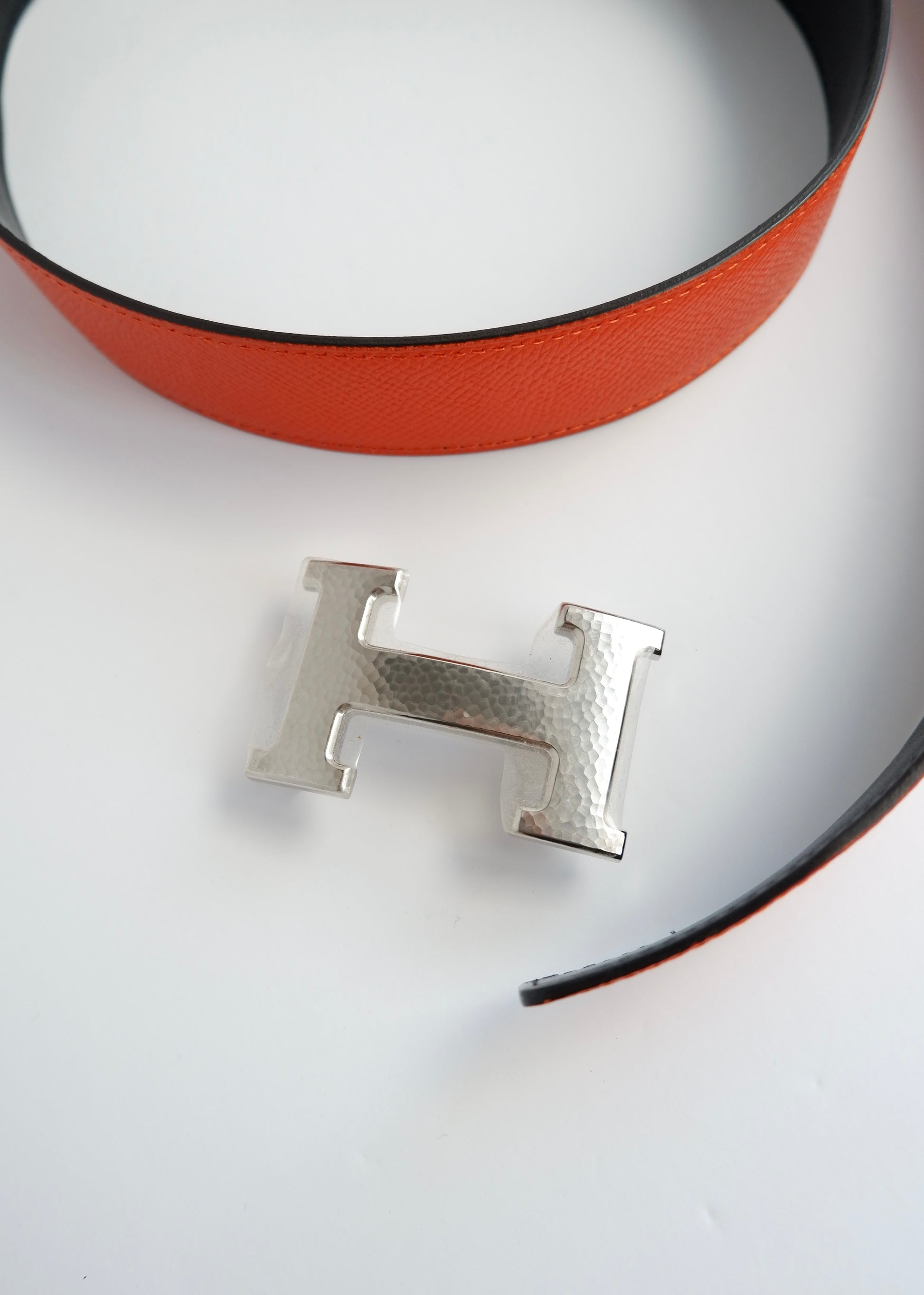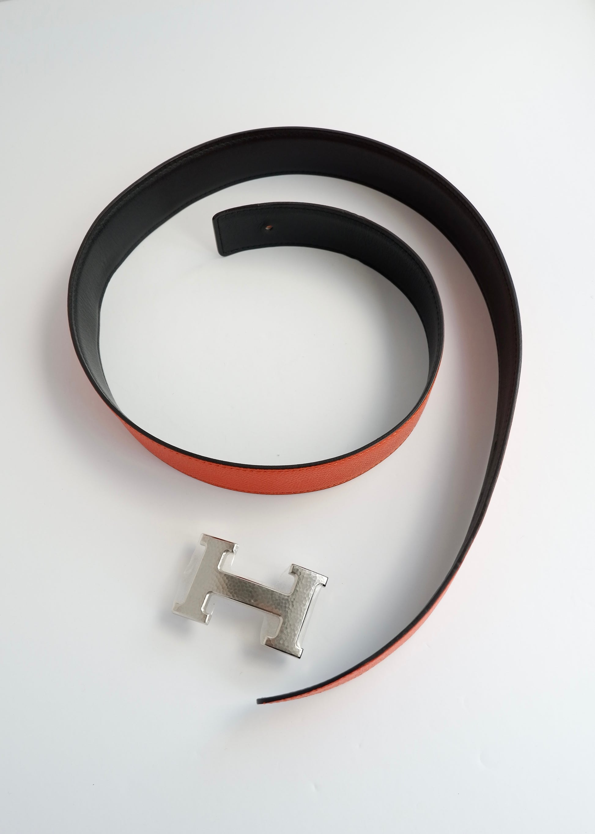 Authentic Preowned Hermes Black/ Orange Leather Martelee H Belt - 85