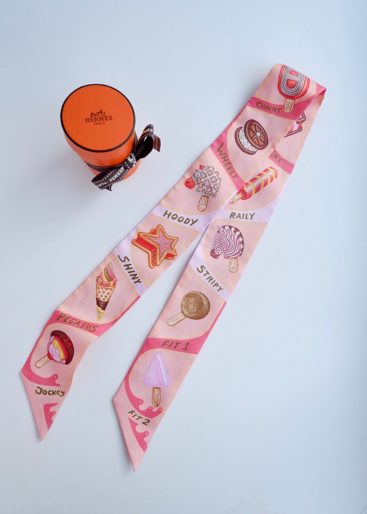 Authentic Preowned Hermes Pink Ice Cream Twilly