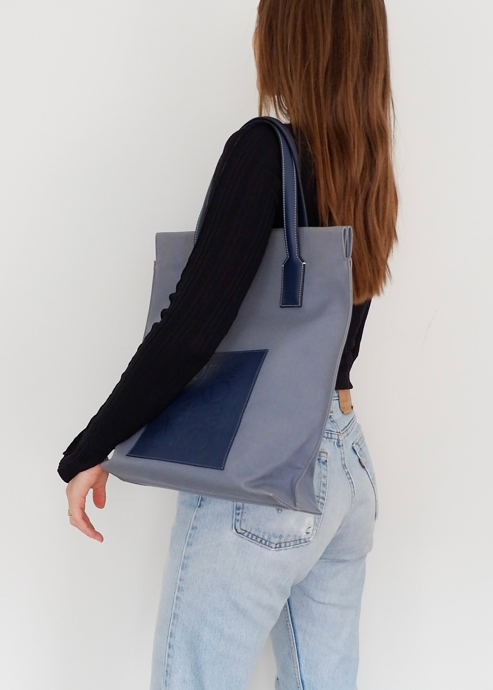 Authentic Preowned Loewe Blue Canvas/Leather Tote Bag
