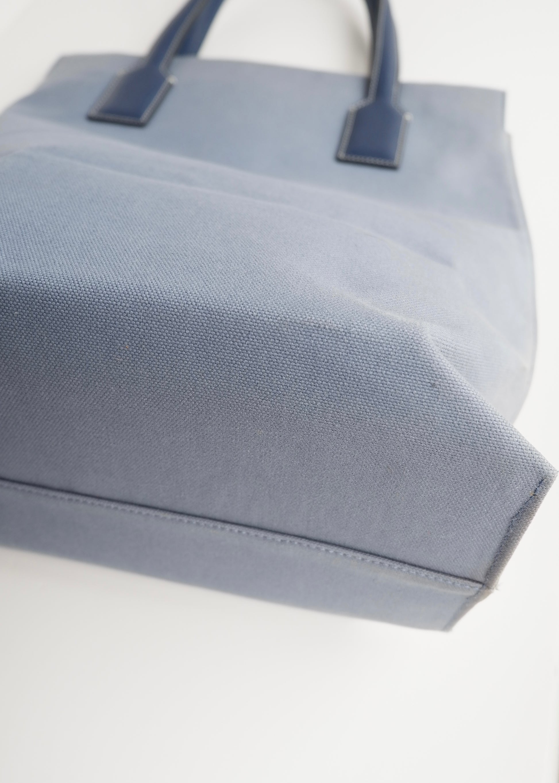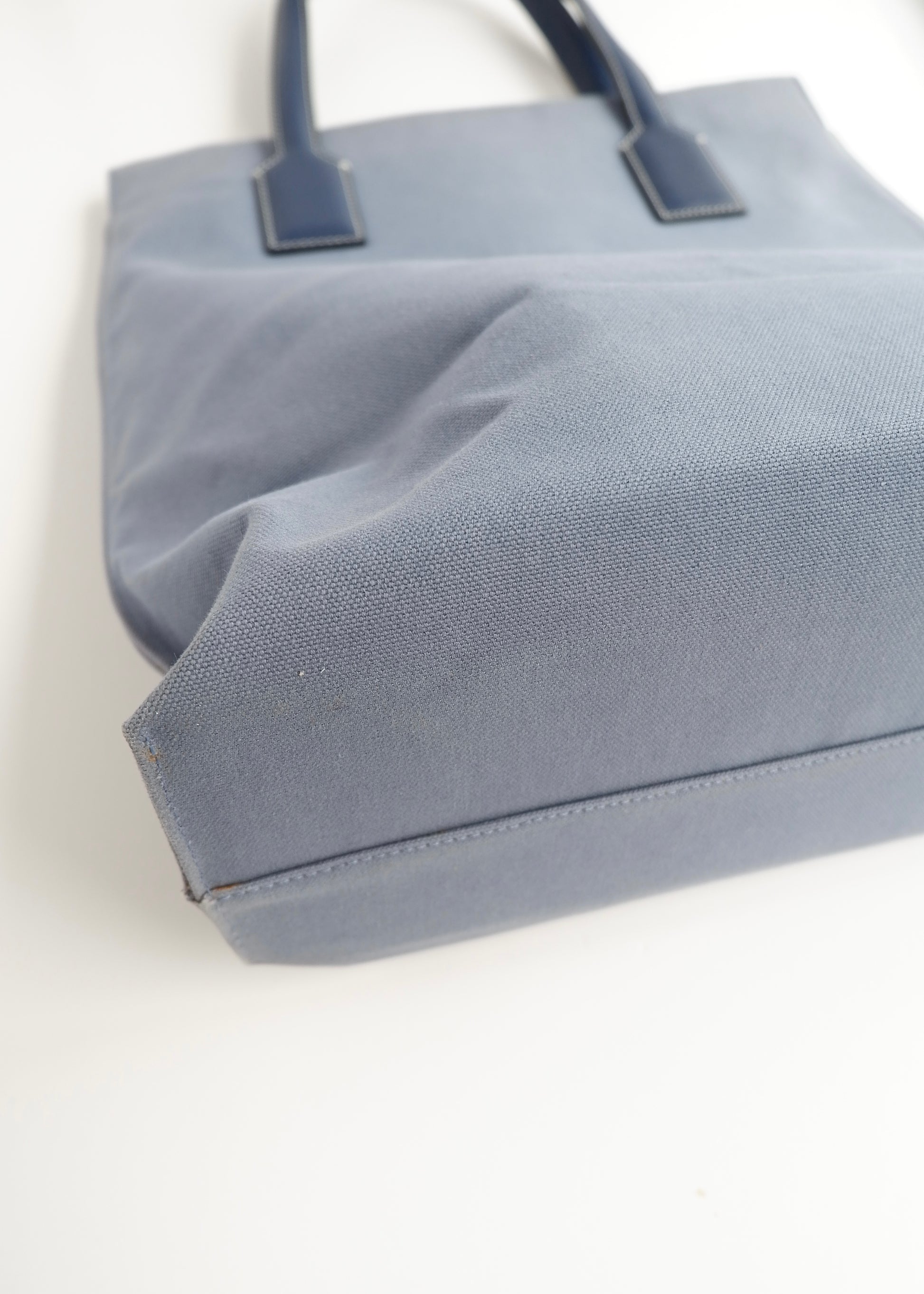 Condition: 8/10 Good Condition. General signs of wear on the bag. Subtle fading to the blue color on the canvas in certain portions of the bag.