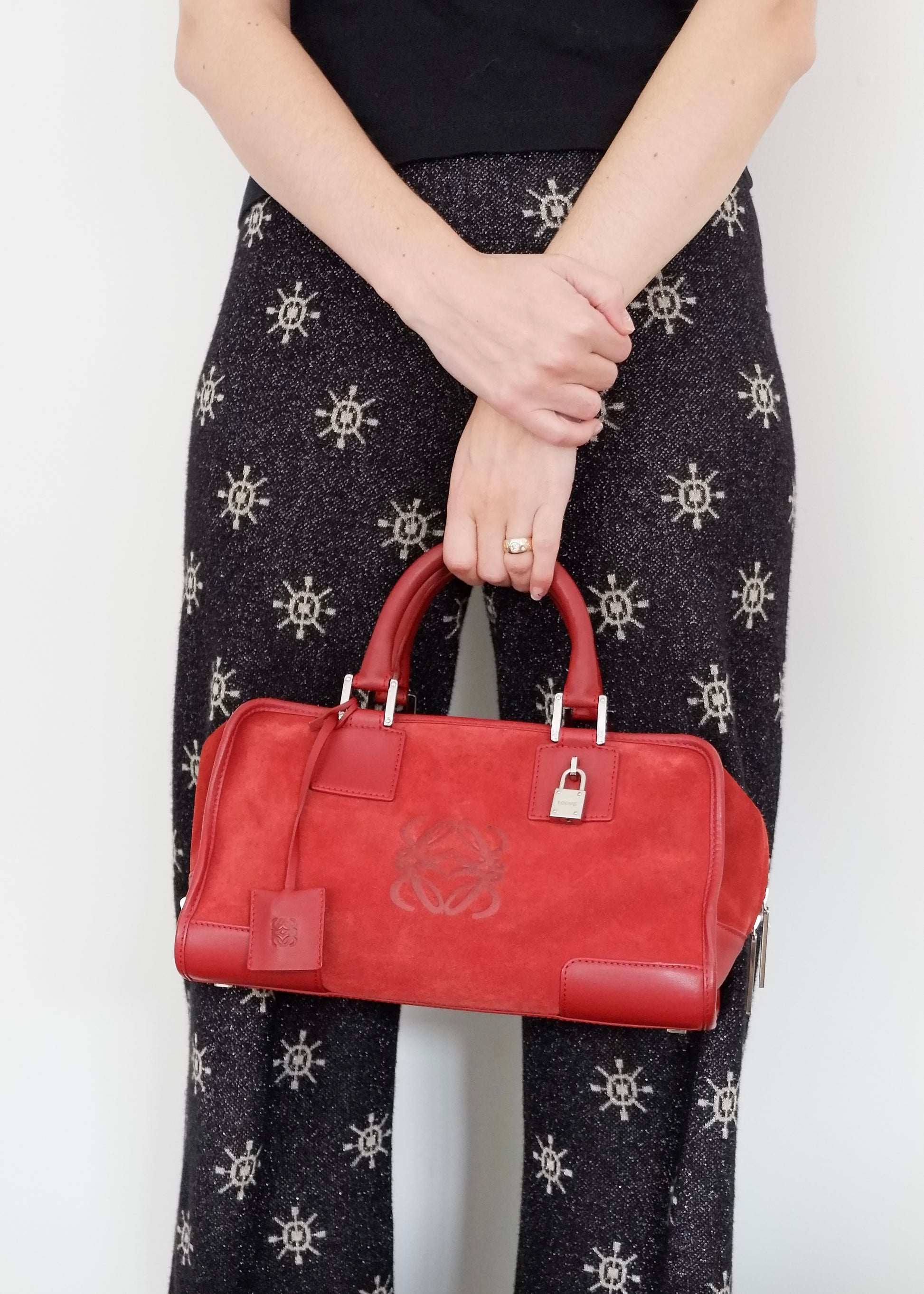 Authentic Preowned Loewe Red Suede Amazona Bag