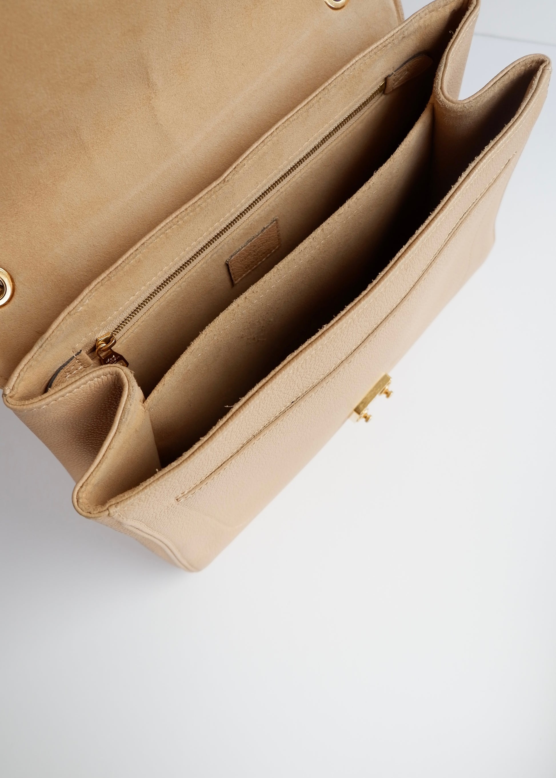 Condition: 7/10 Good Condition - Signs of wear on the bottom corners of the exterior leather of the bag. Scratches on the front gold hardware. Other fading marks to the exterior leather. around the corners and edges of the bag. Scuffing/ color transfer to the interior suede of the bag.