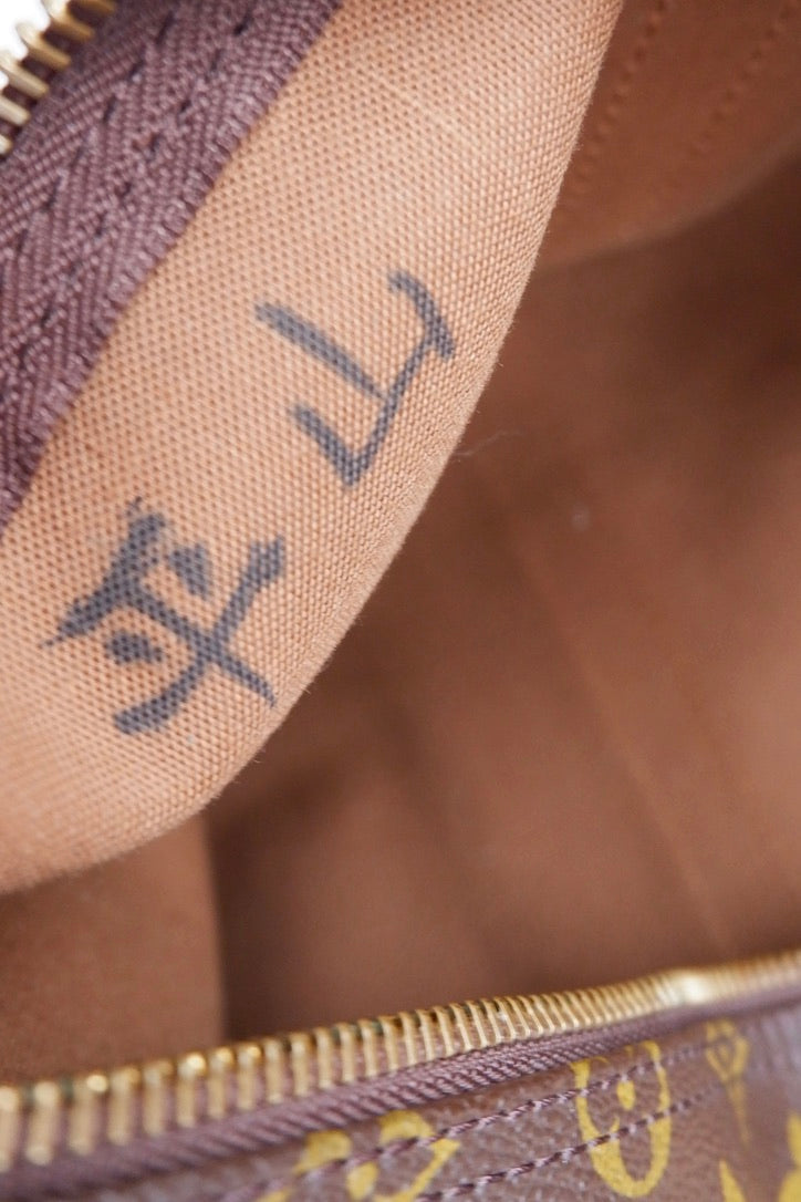 Condition: 8/10 - Good vintage condition. General signs of wear typical to a monogram Louis Vuitton bag, including darkening (patina) to the leather details. Clean interior, minus permanent marker initials in interior.