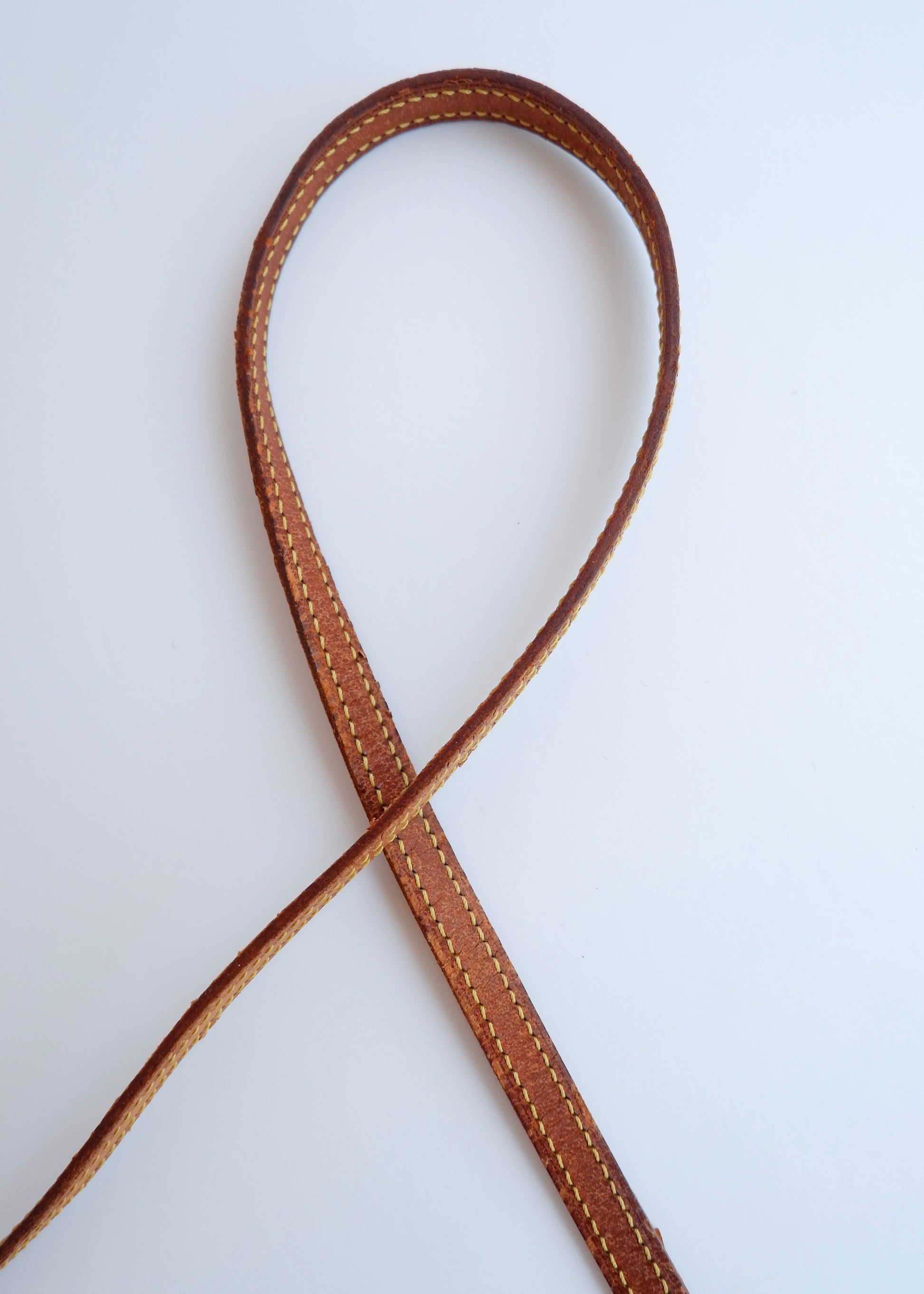 Condition: 8/10 Good Condition - General signs of wear and age throughout the bag including darkening of the leather strap and fading of the gold-tone hardware. Clean interior.