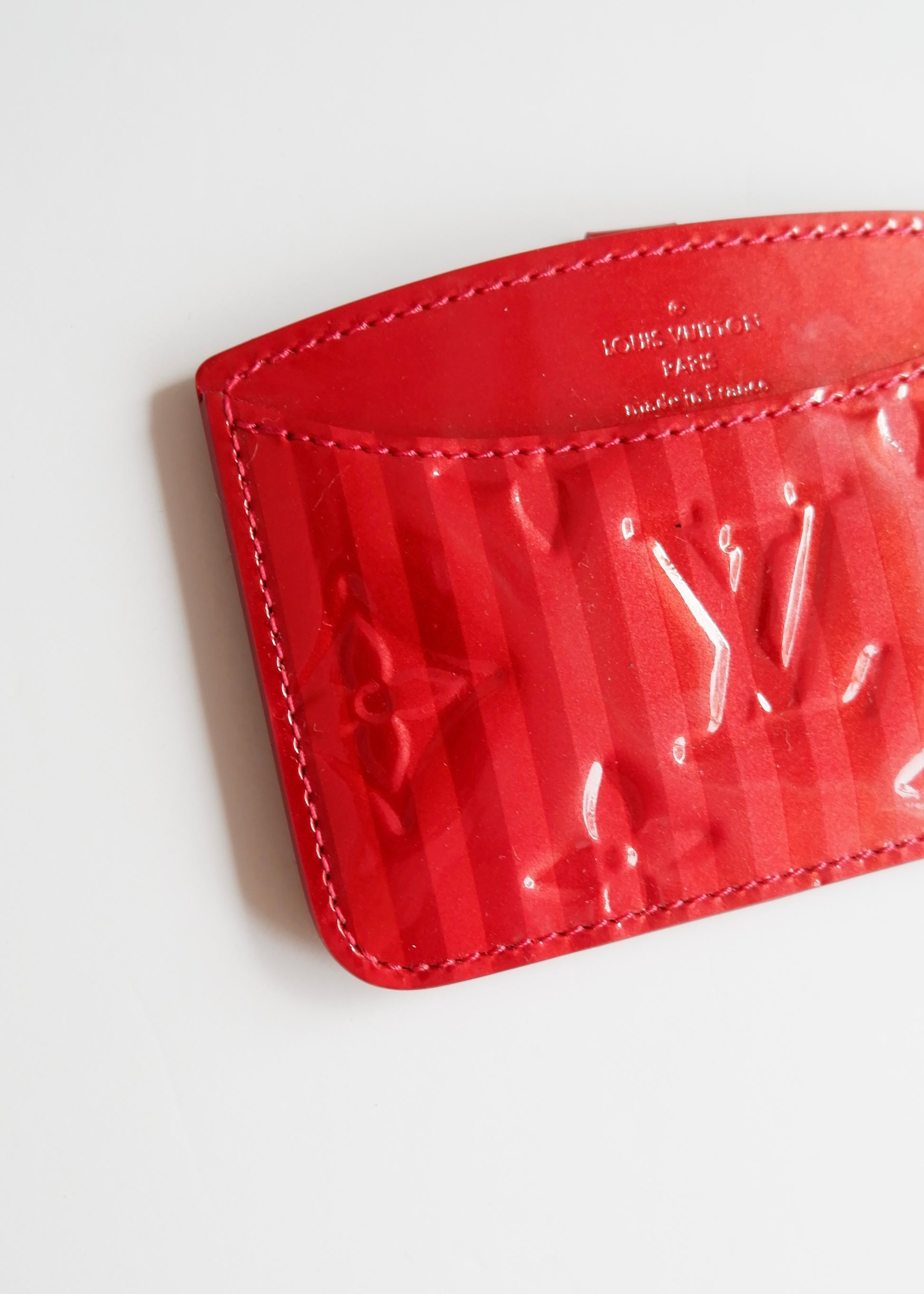 Authentic Preowned Louis Vuitton Monogram Red Stripe Vernis Card Holder