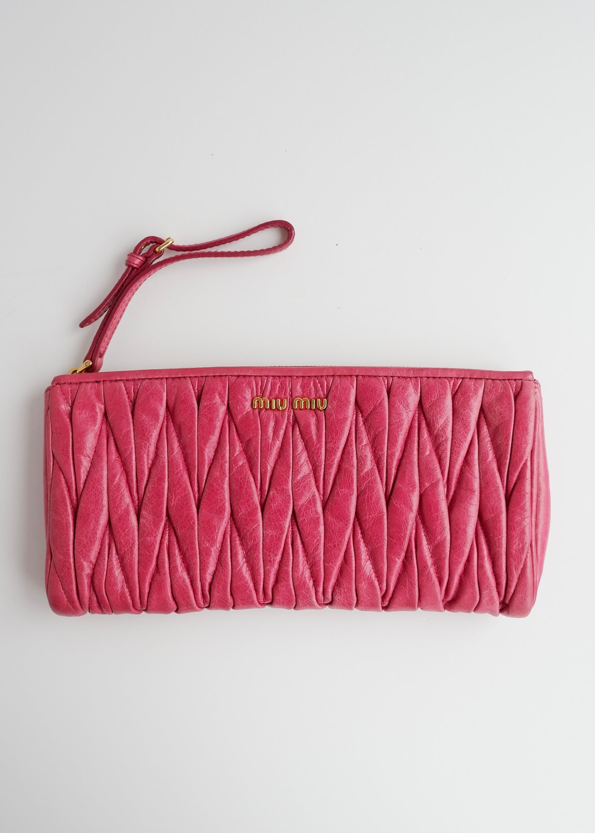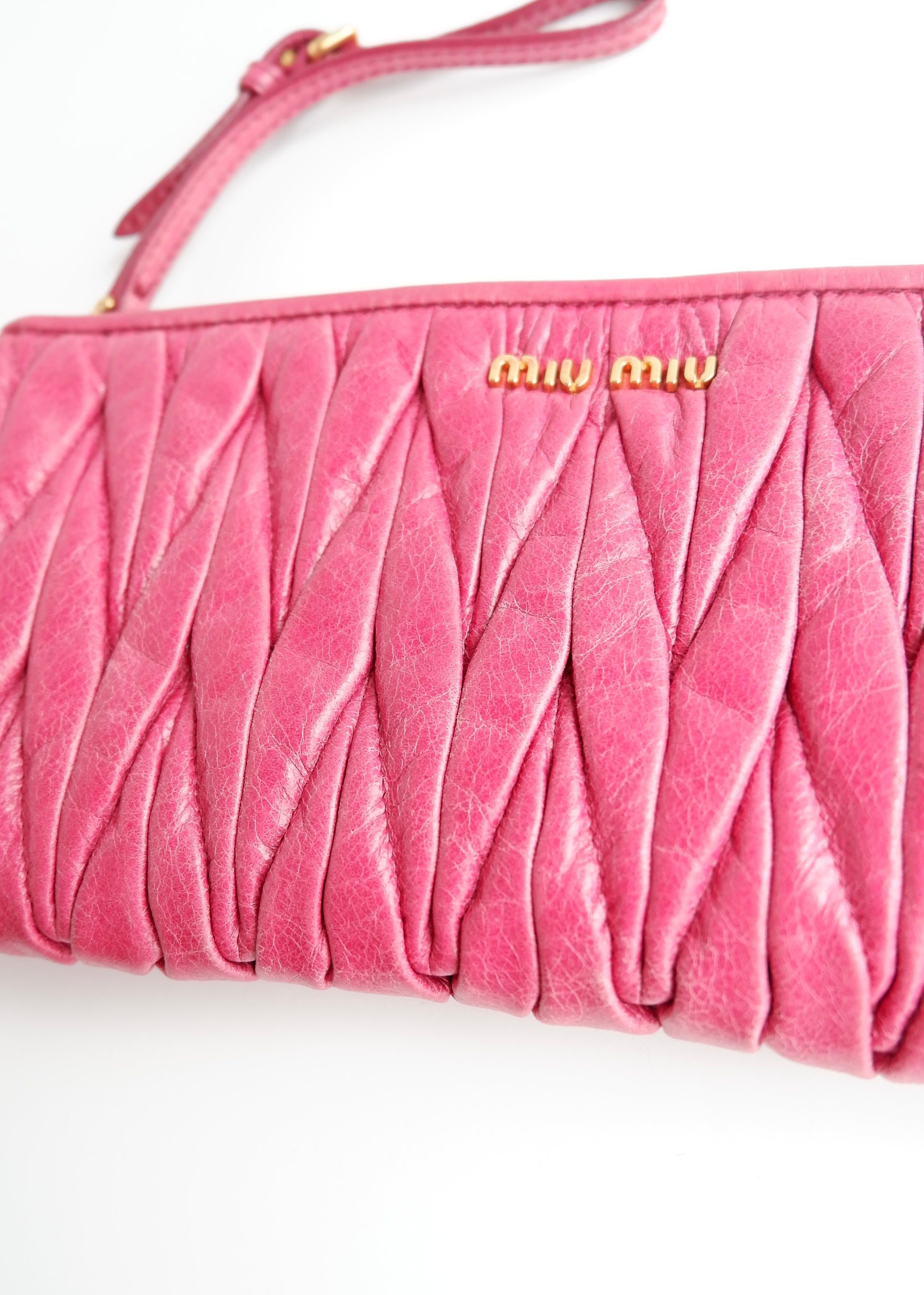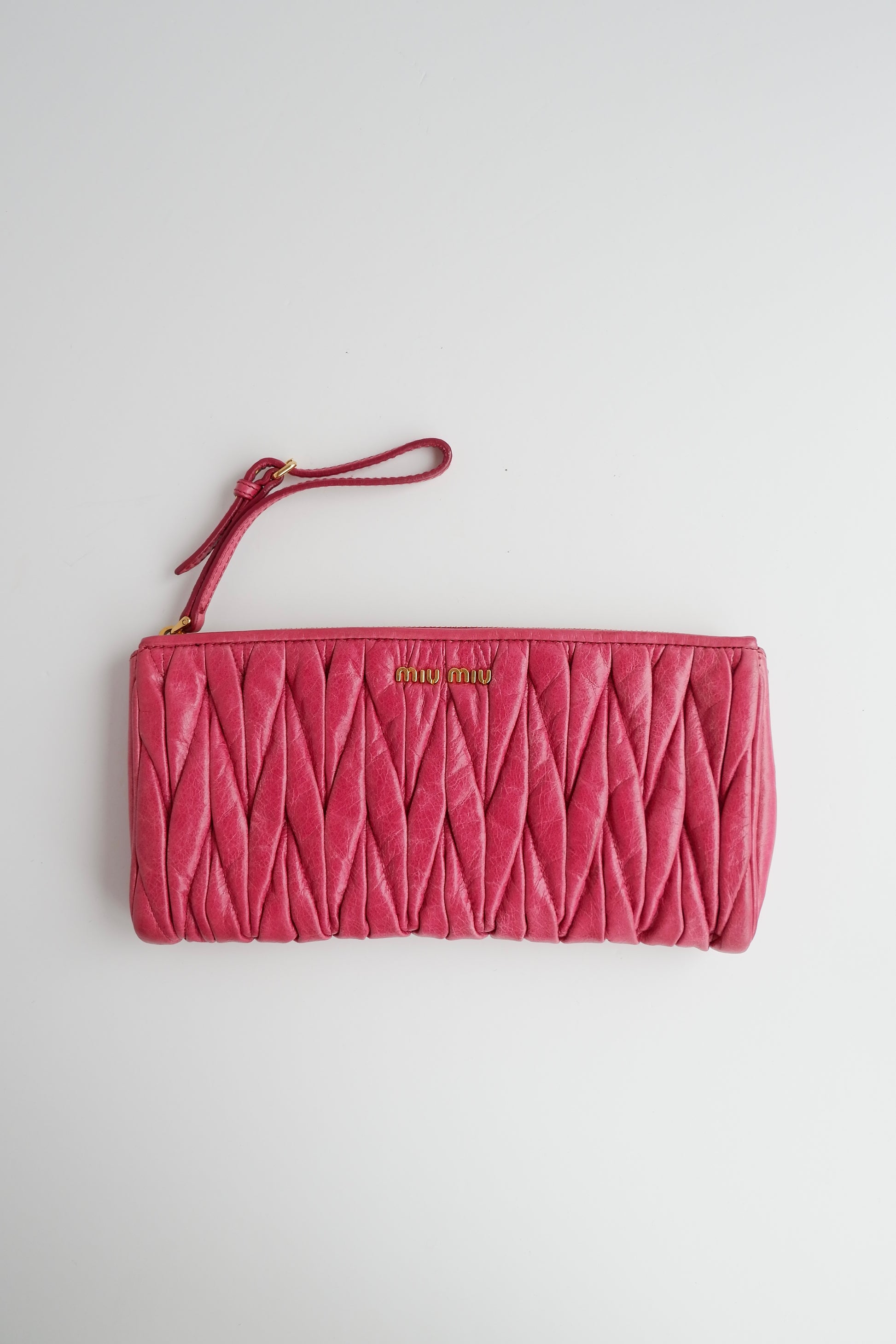 Authentic Preowned Miu Miu Pink Leather Wristlet Clutch