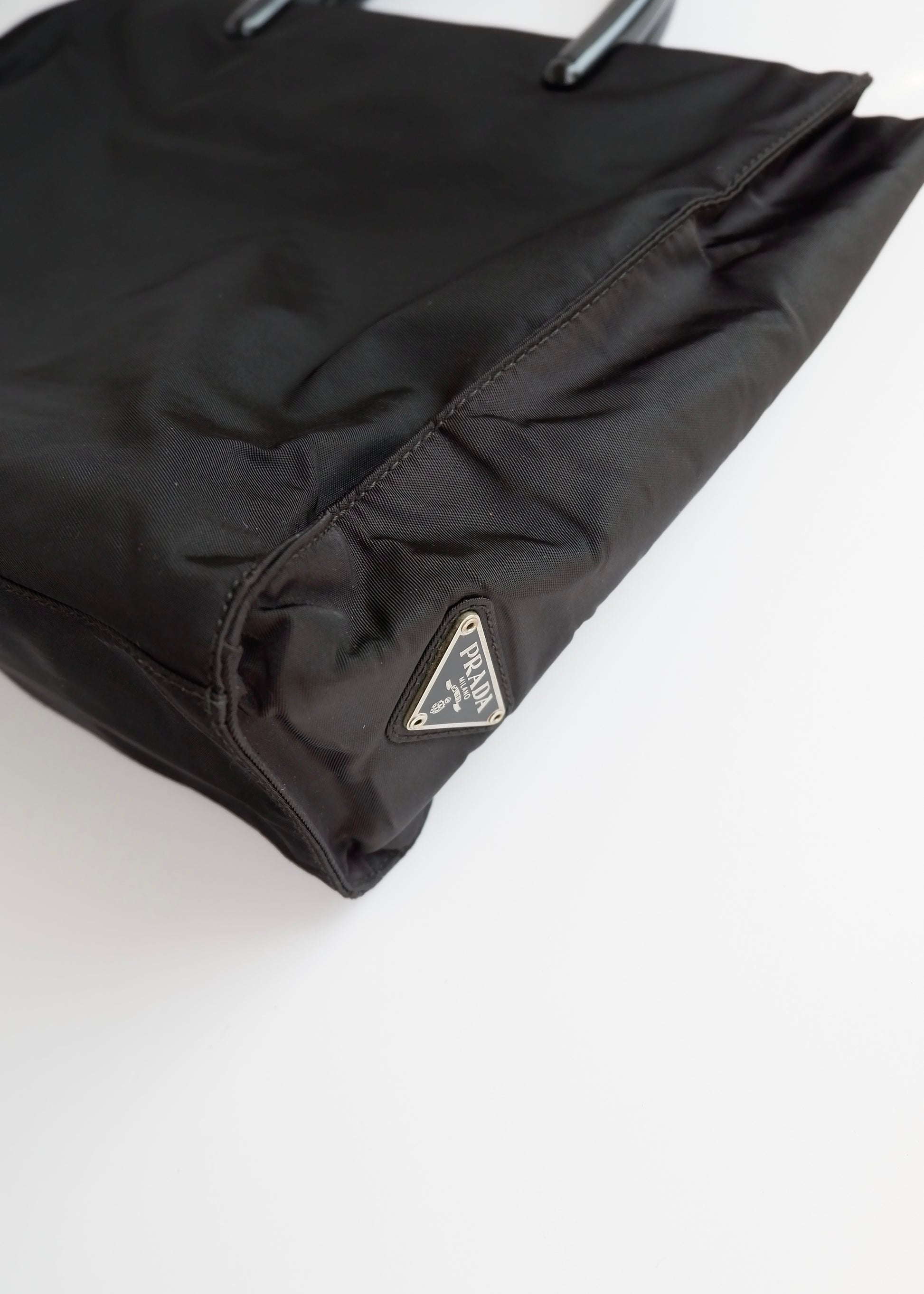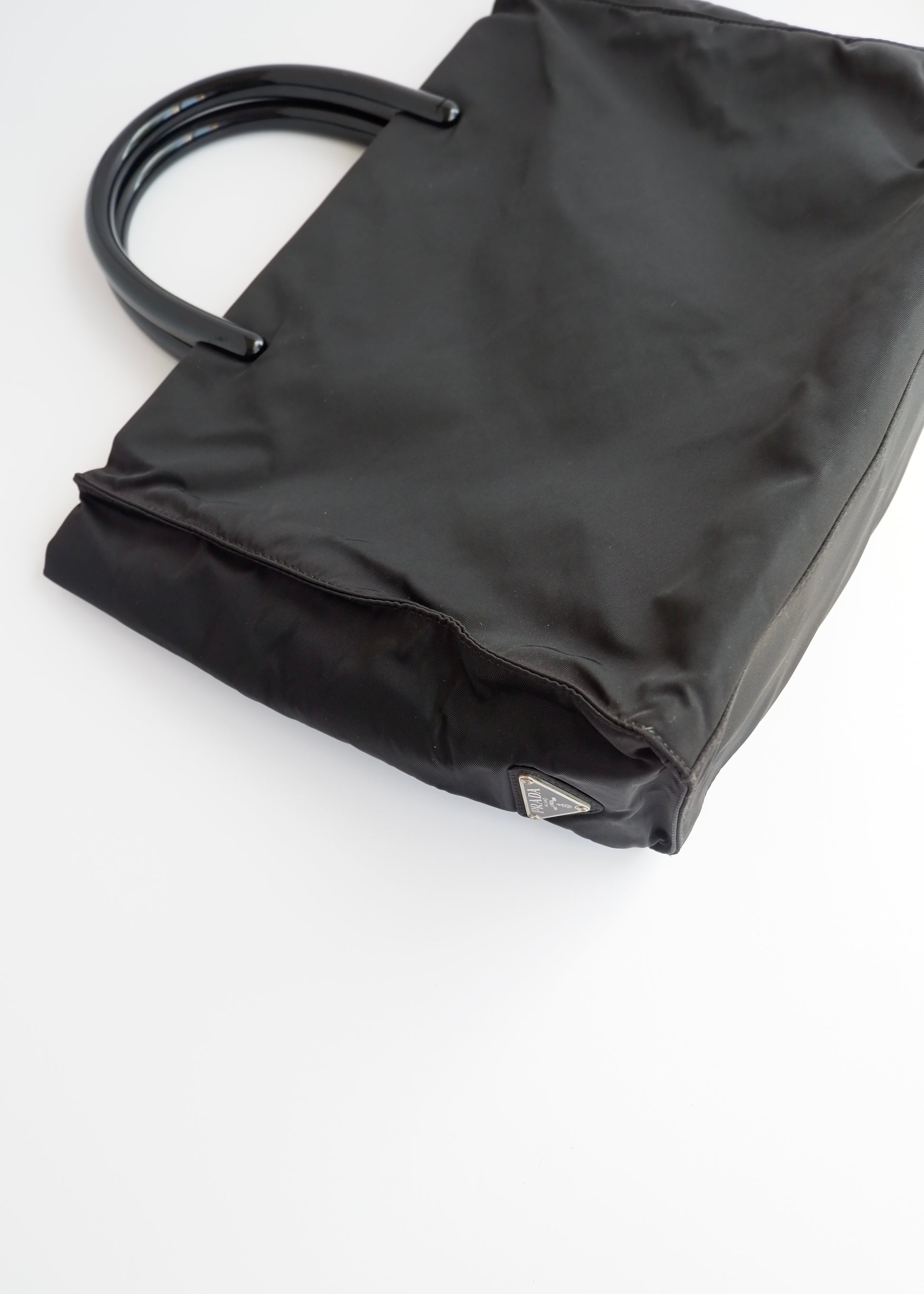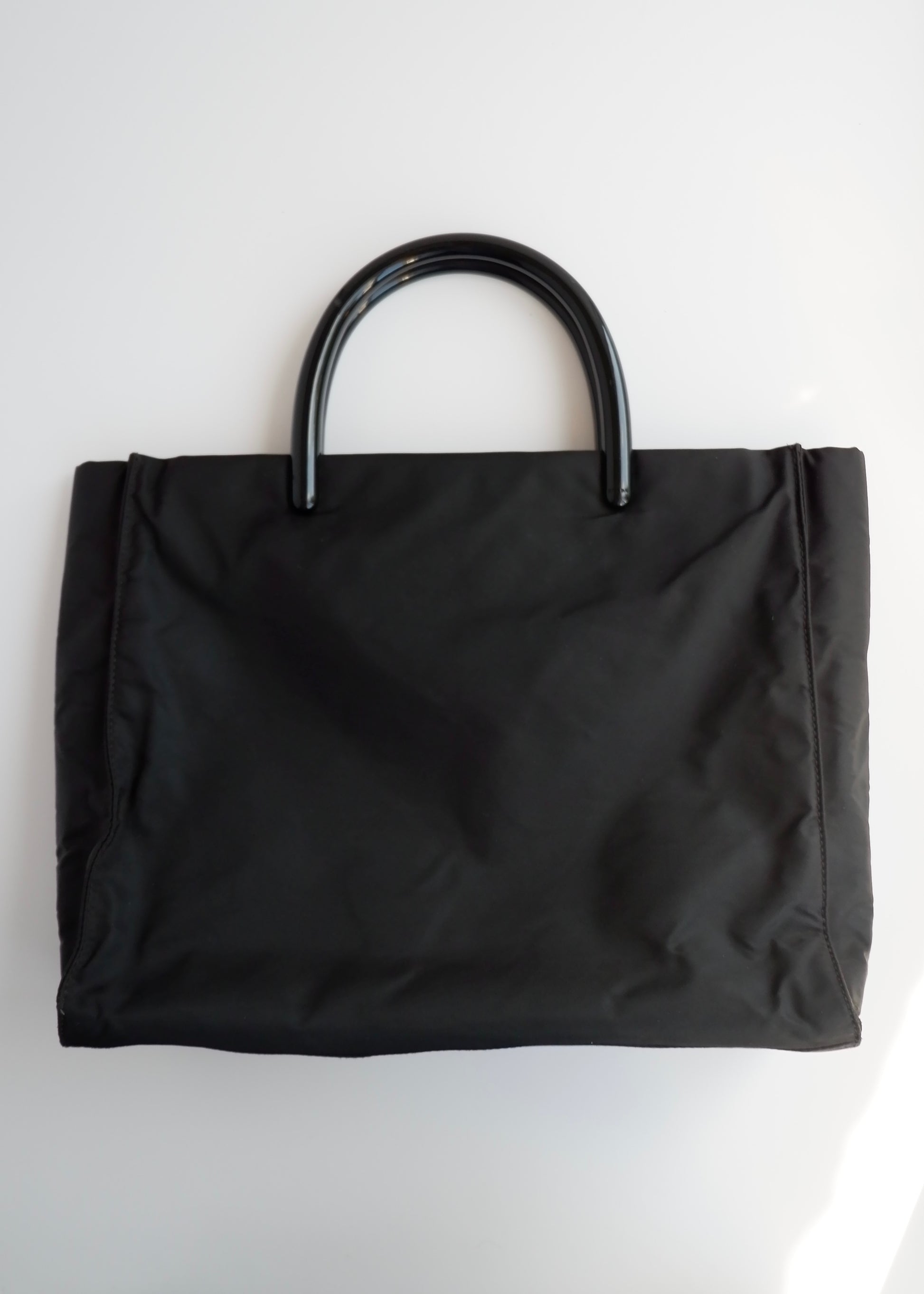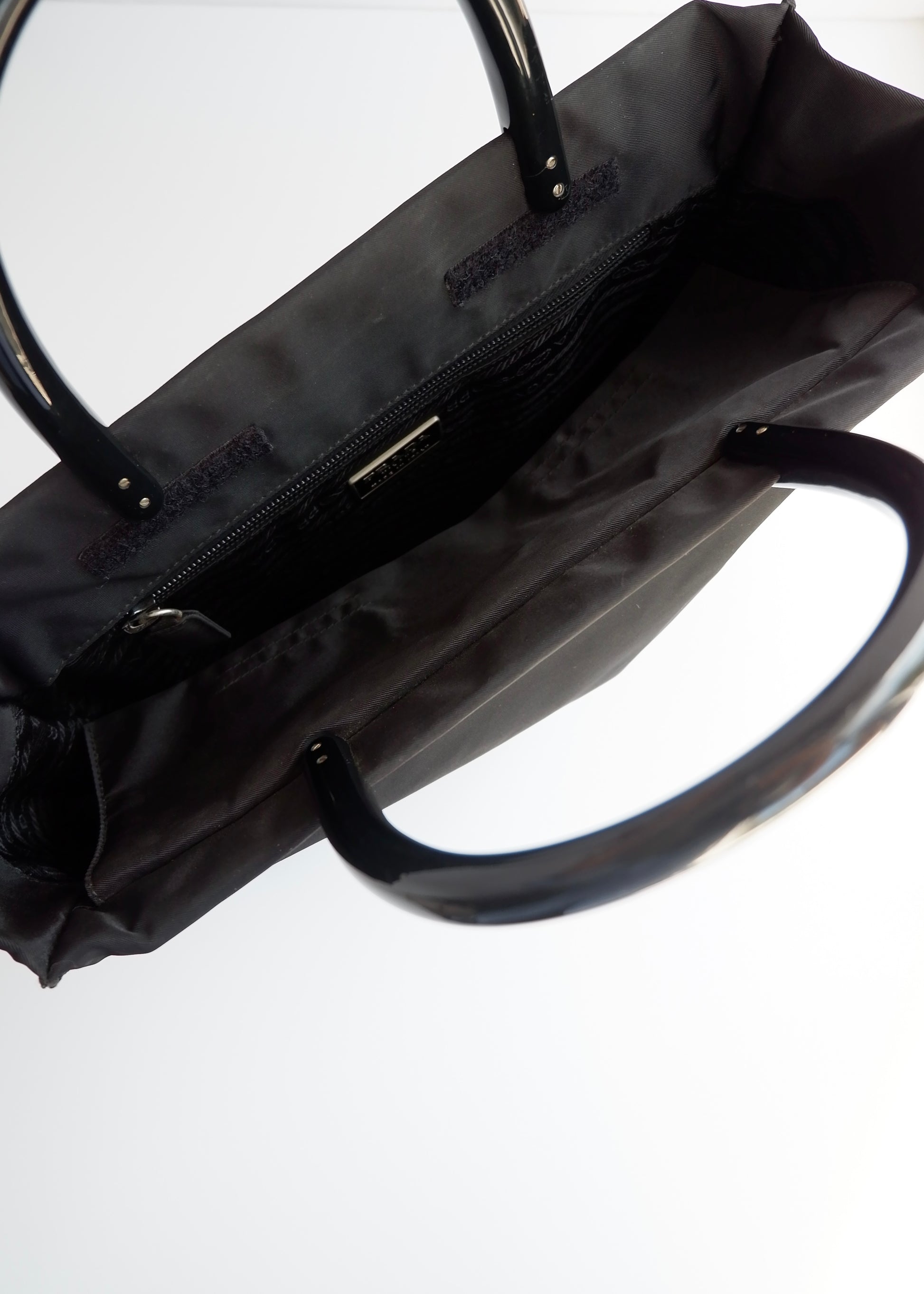 Authentic Preowned Prada Black Nylon Acetate Handle Handbag