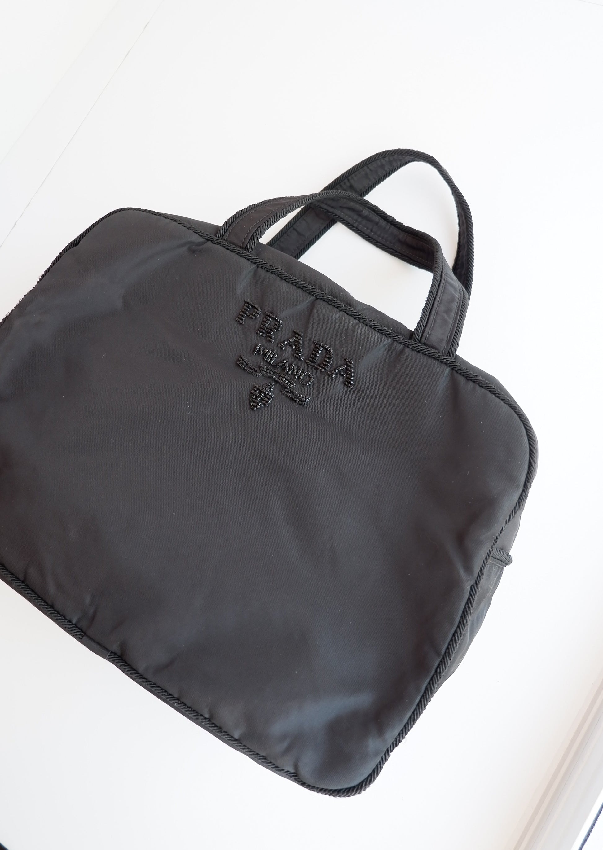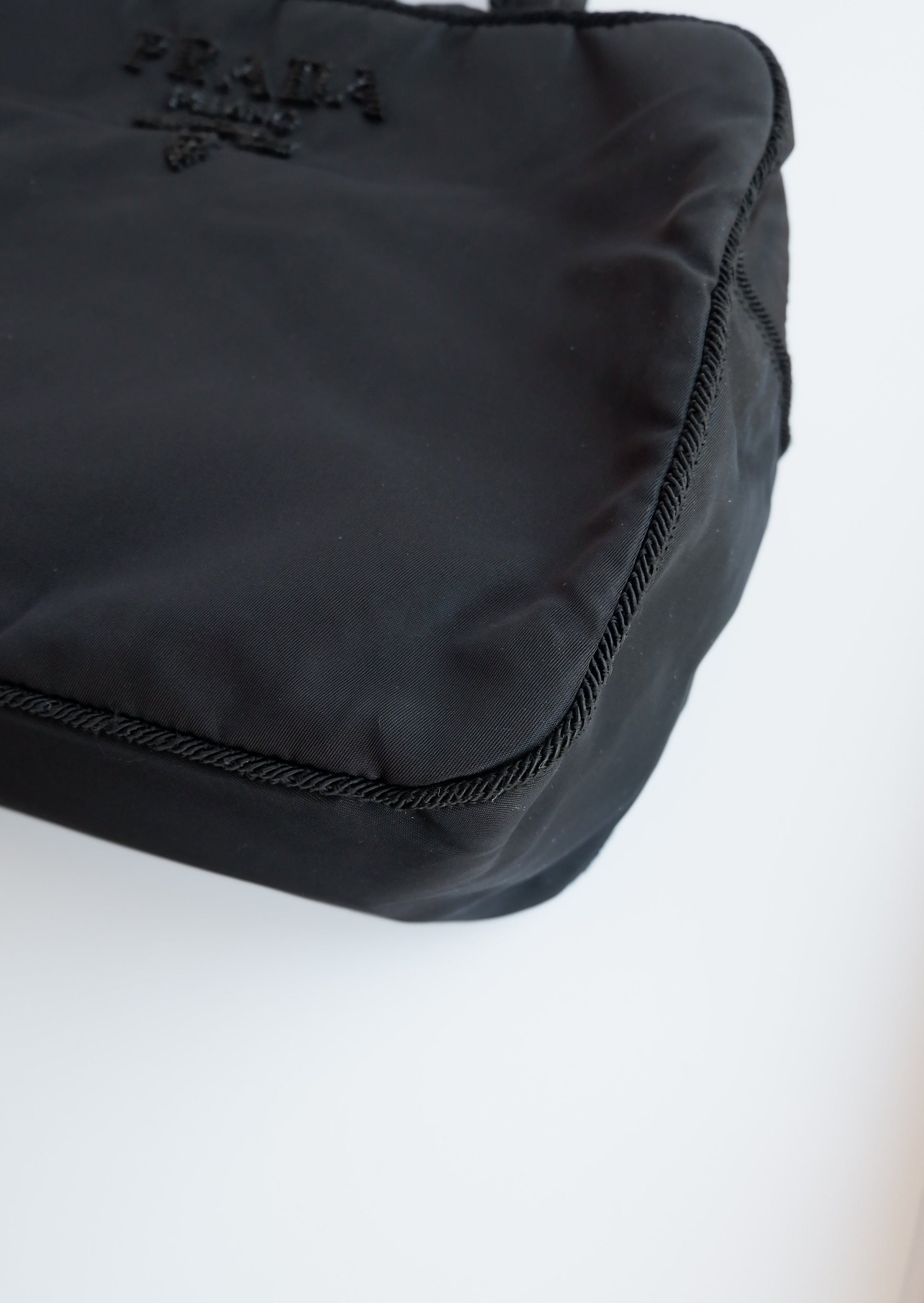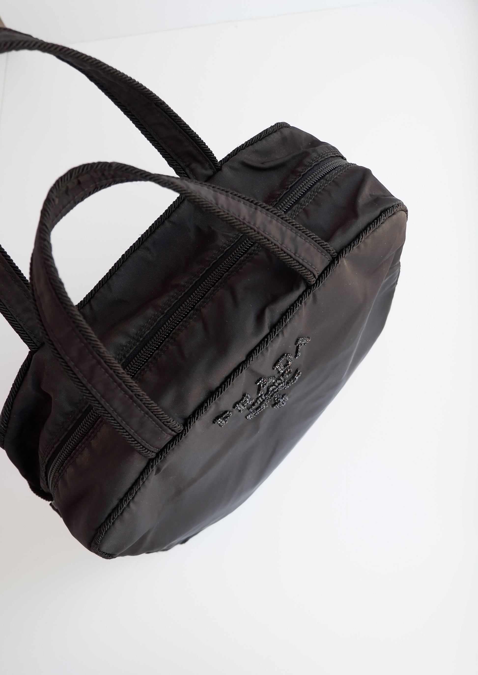 Authentic Preowned Prada Black Nylon Beaded Logo Handbag