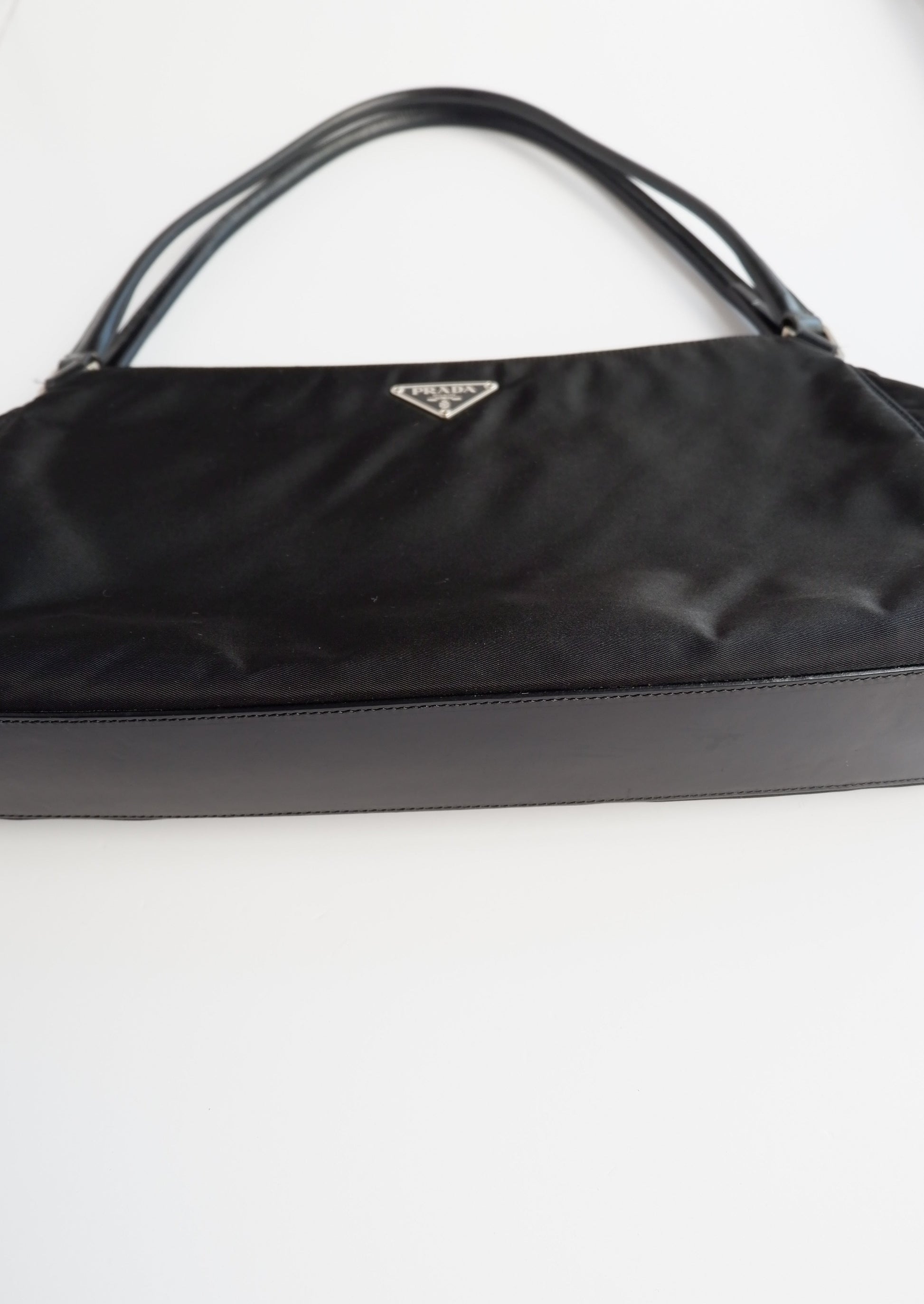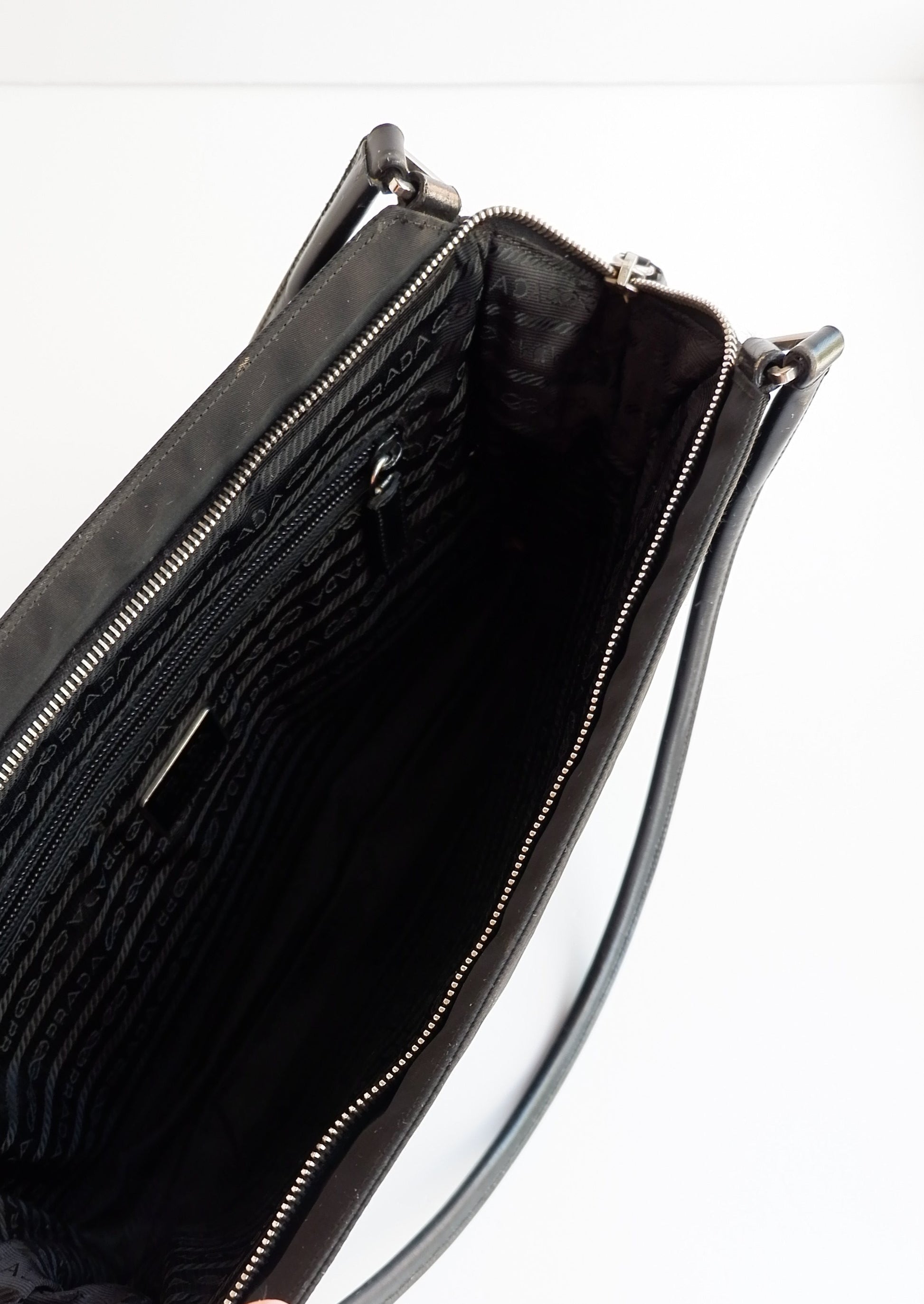 Authentic Preowned Prada Black Nylon Leather Strap Expandable Shoulder Bag