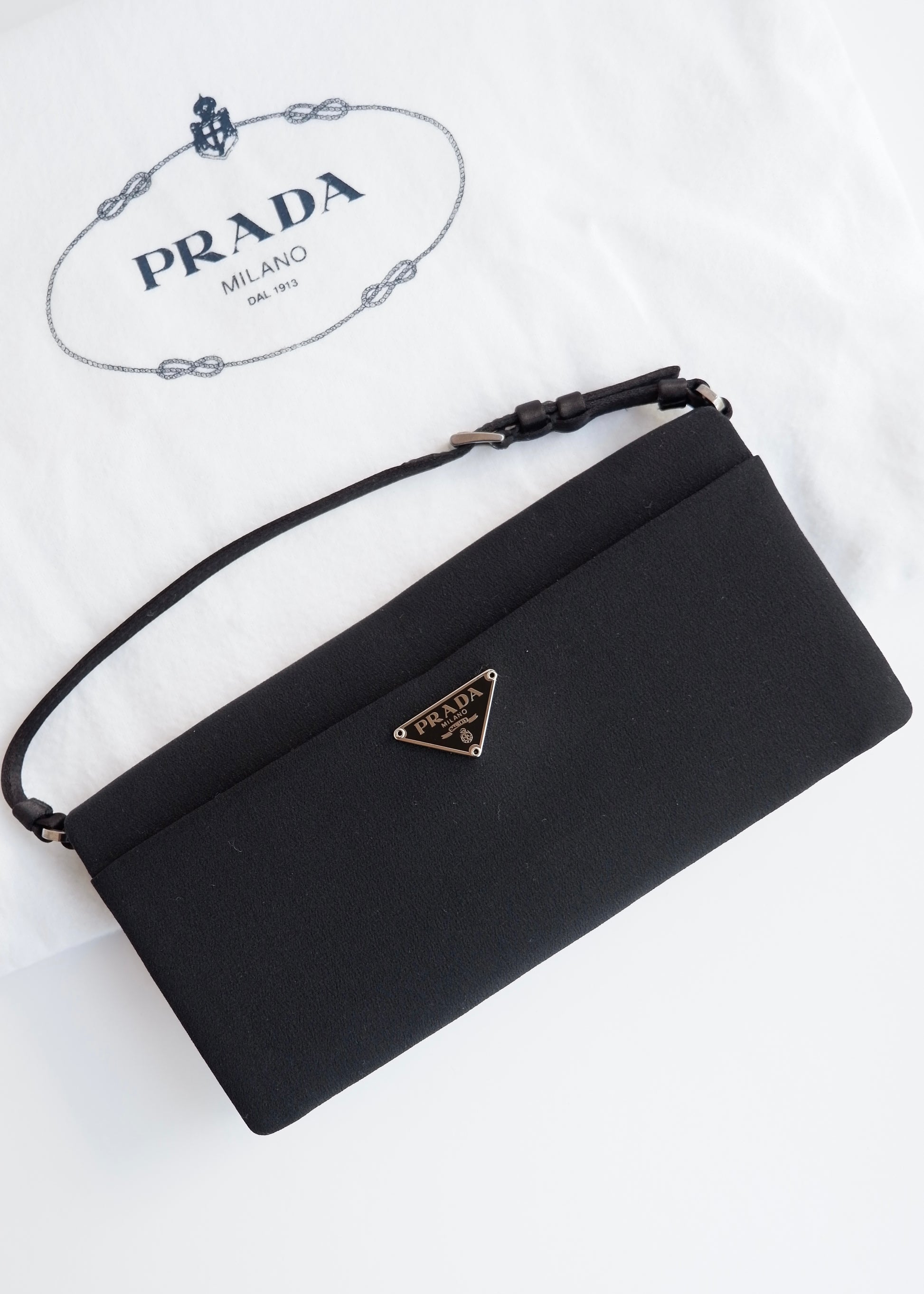 * The front of the bag is the side with the bow detail on it, but can of course be worn with the Prada logo out.