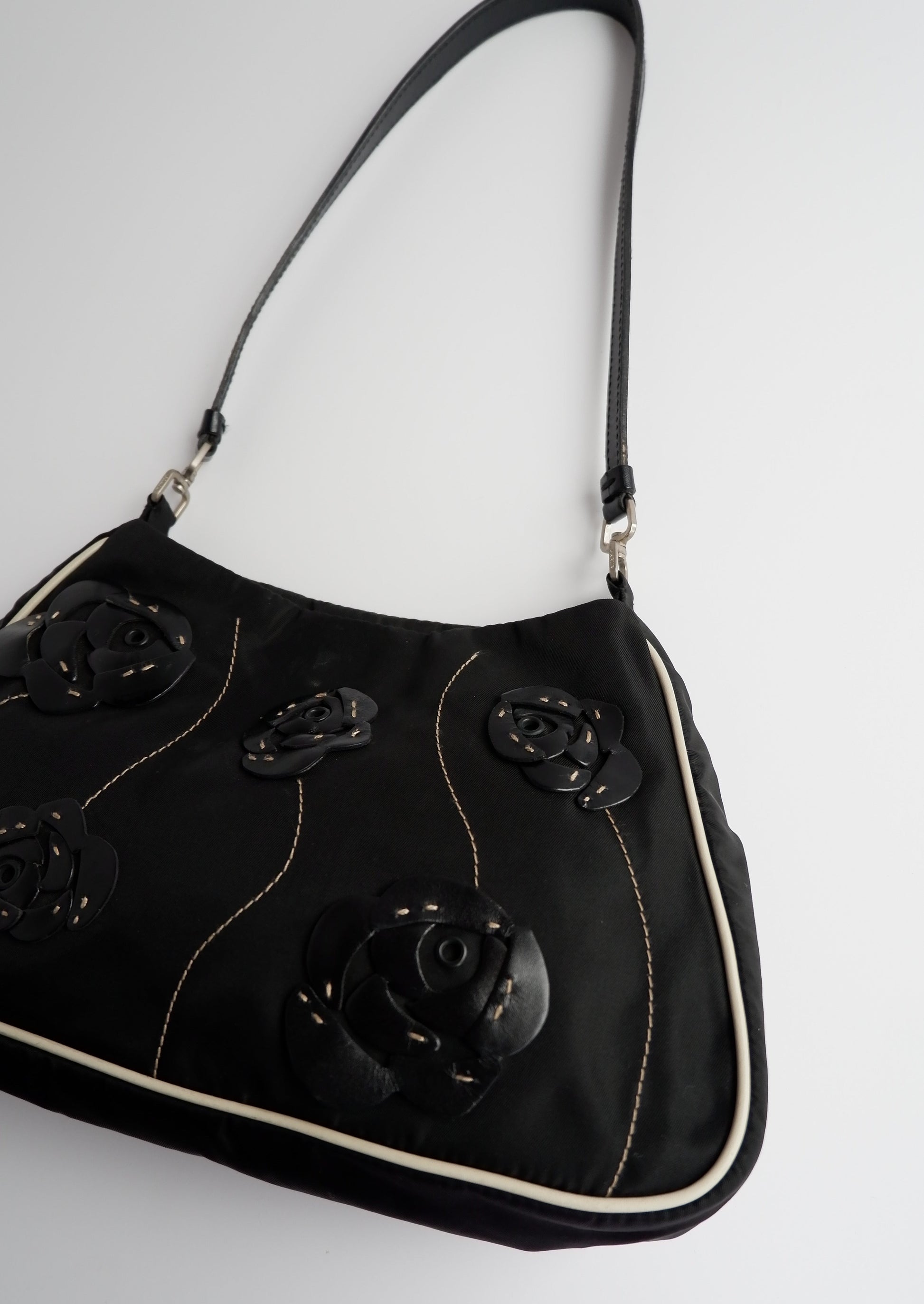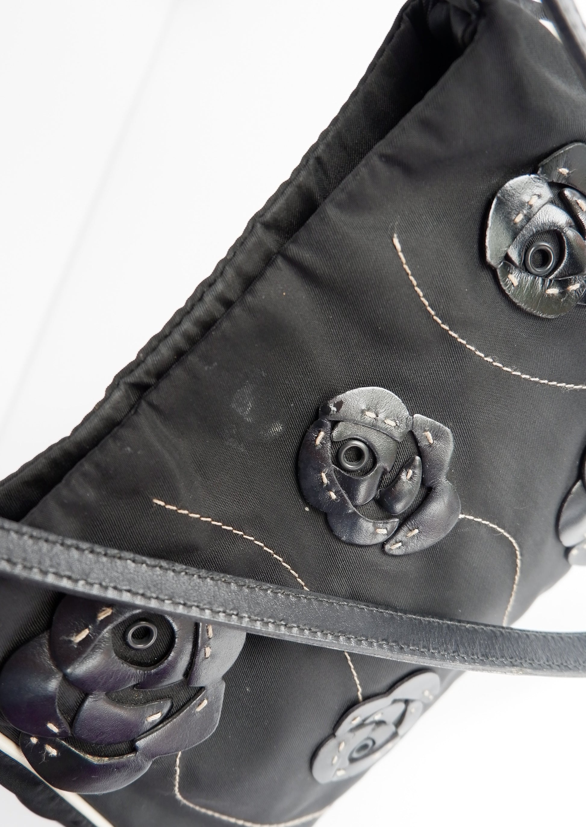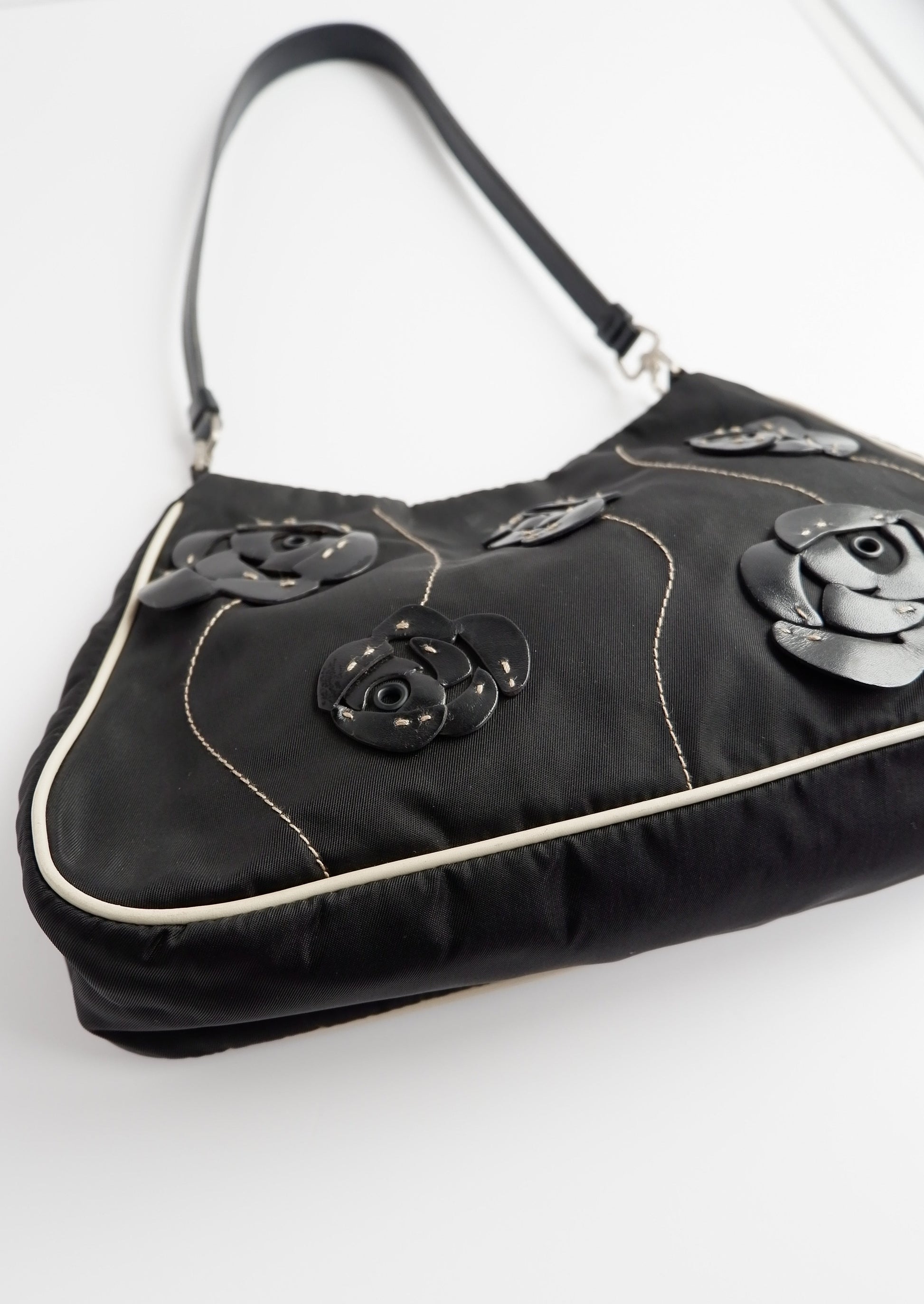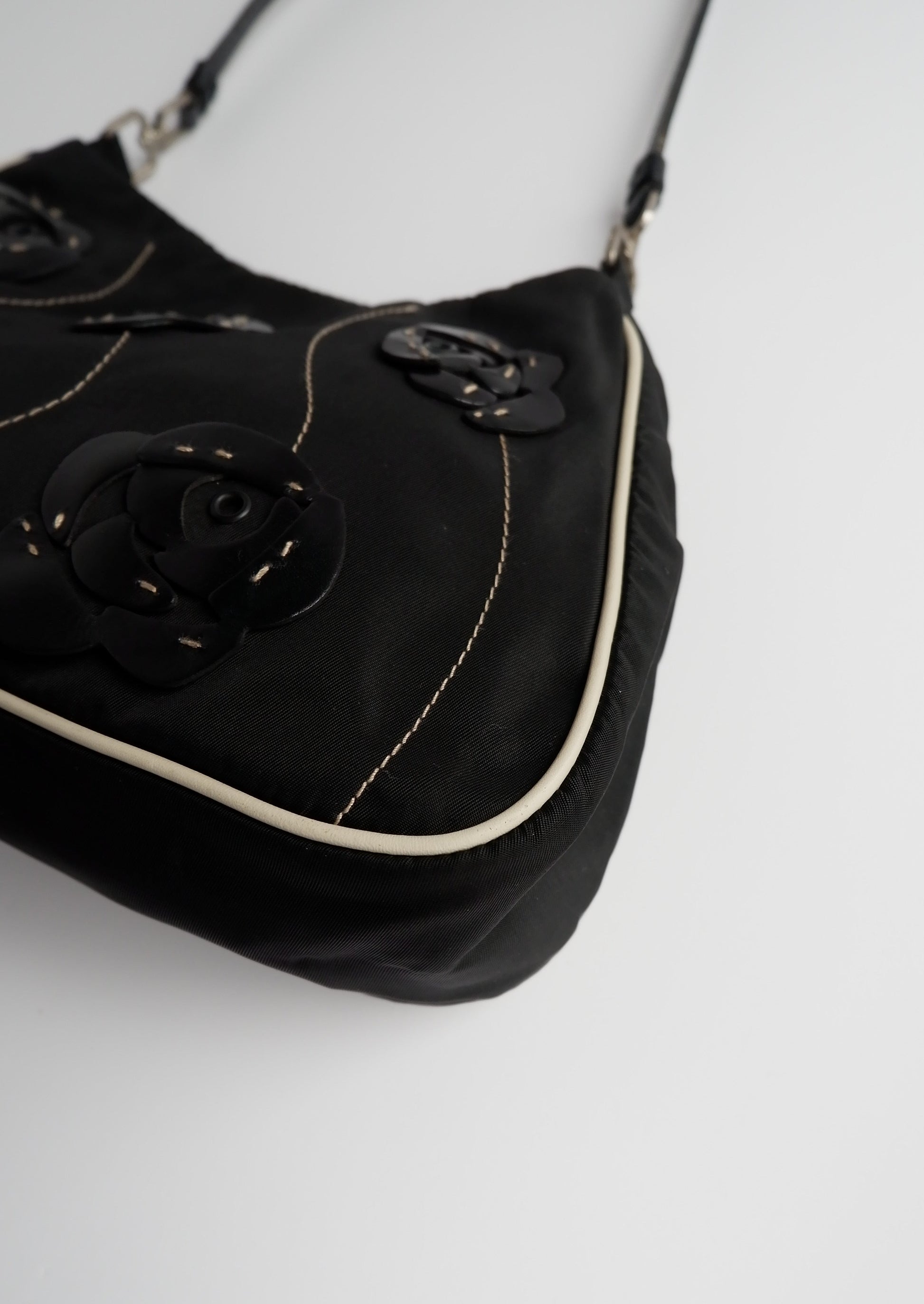 Authentic Preowned Prada Black/White Nylon Rose Detail Shoulder Bag