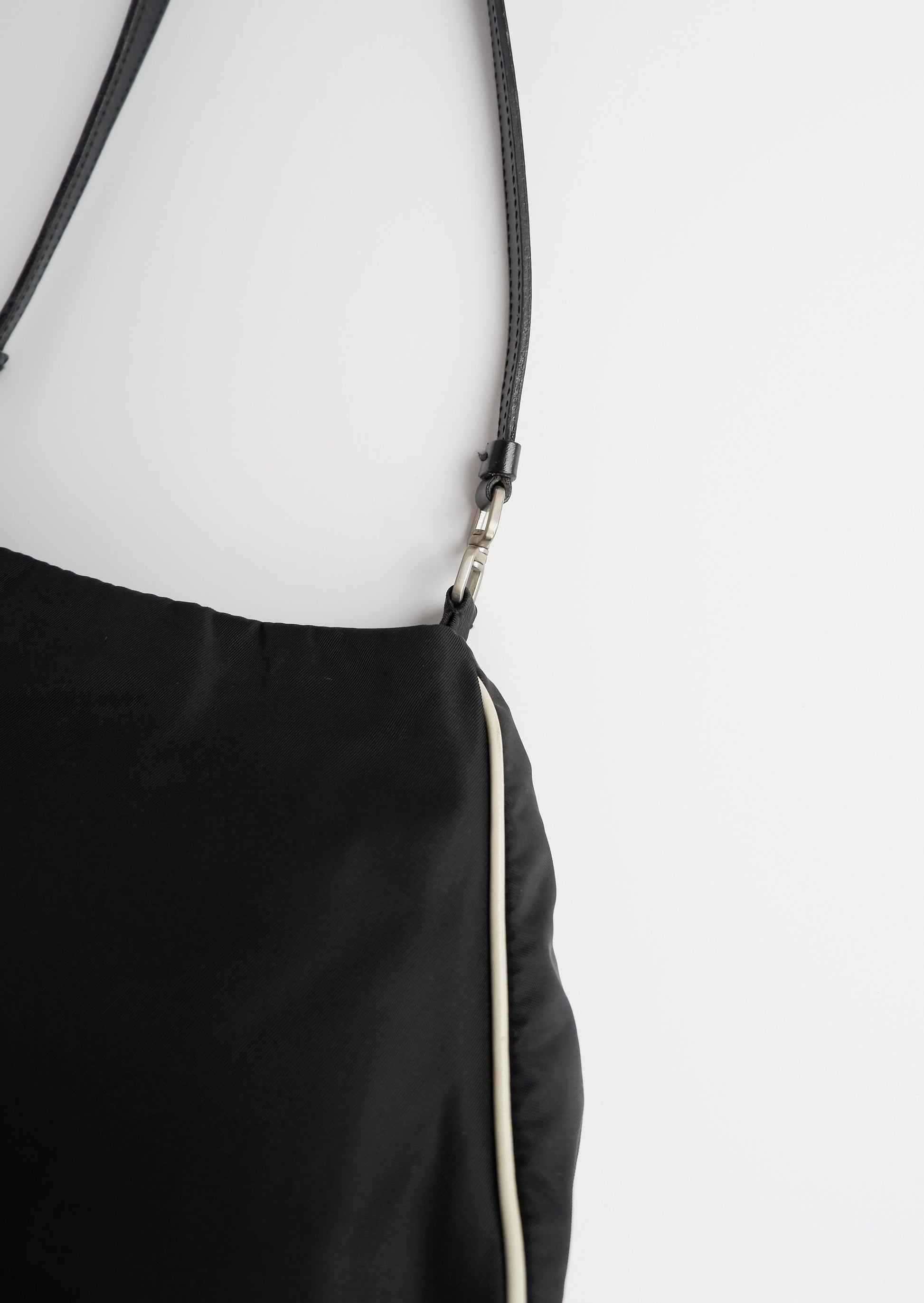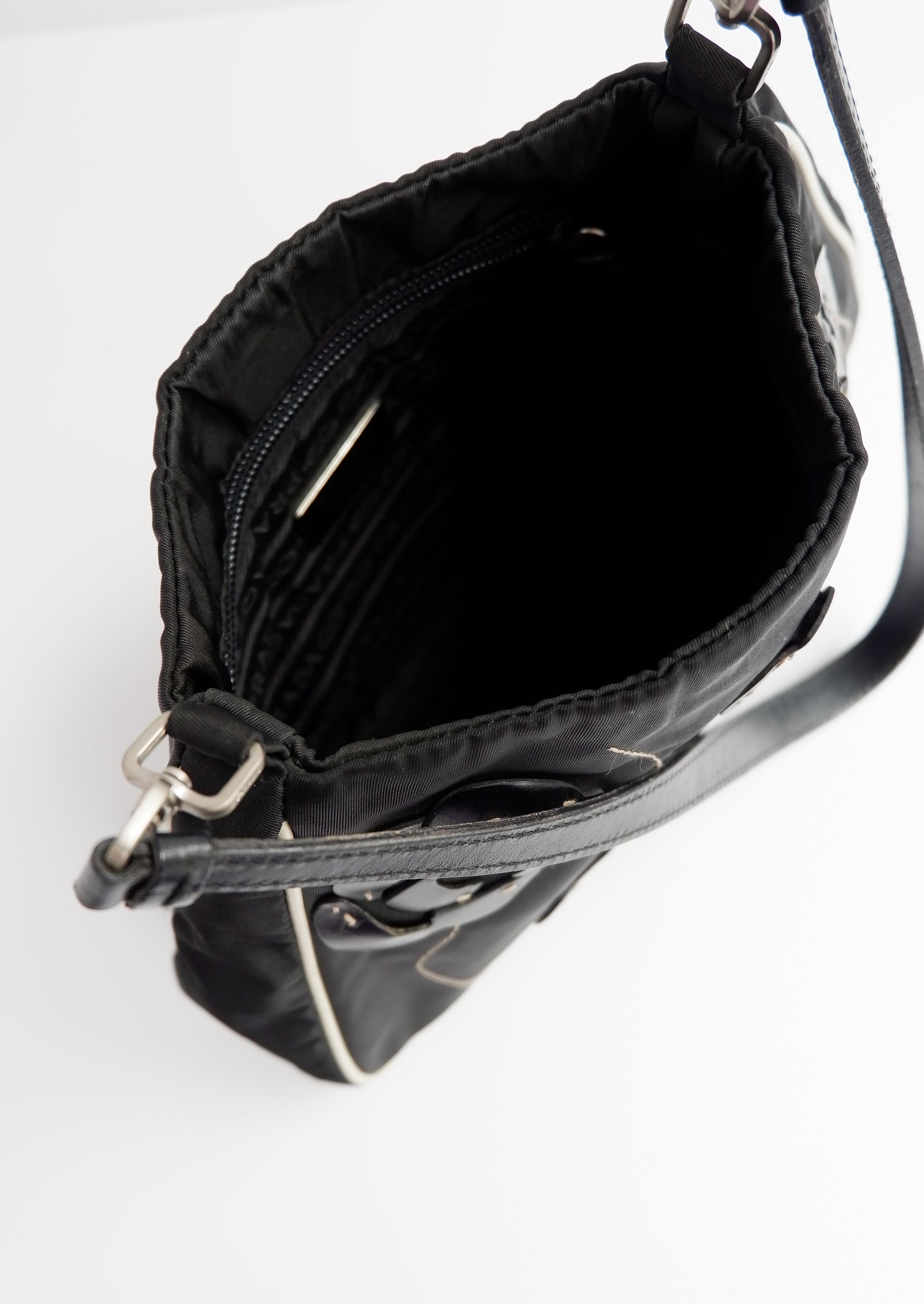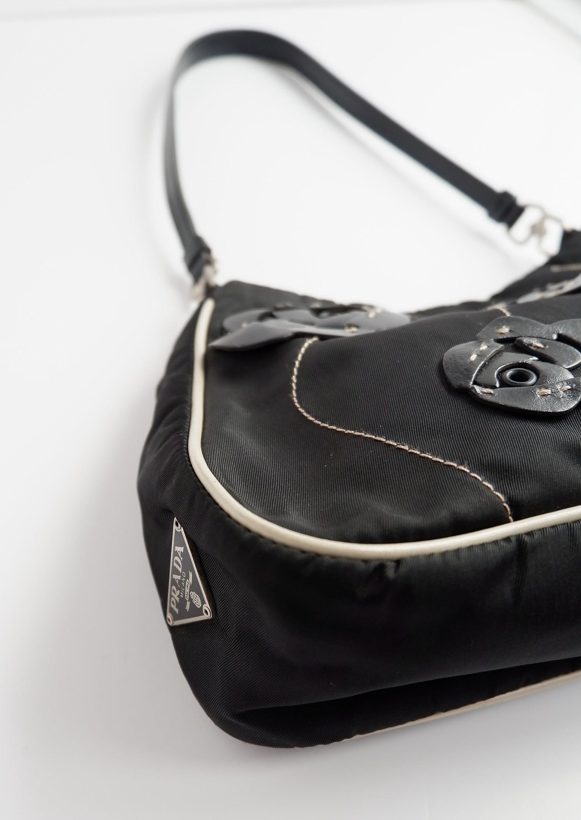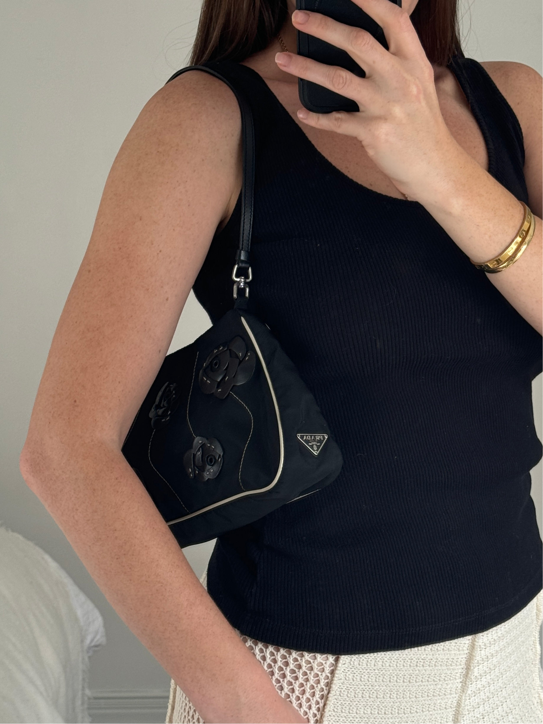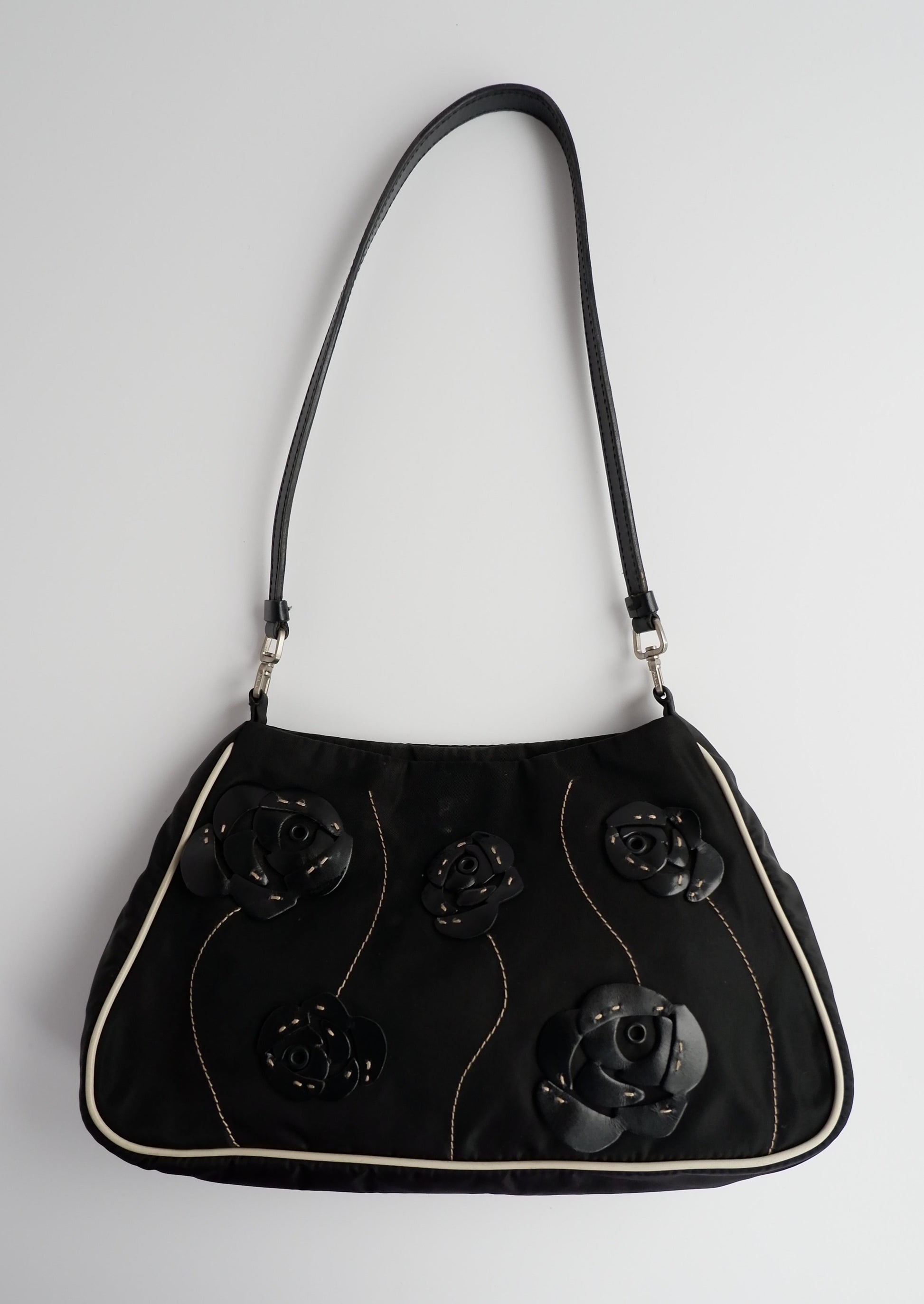 Authentic Preowned Prada Black/White Nylon Rose Detail Shoulder Bag