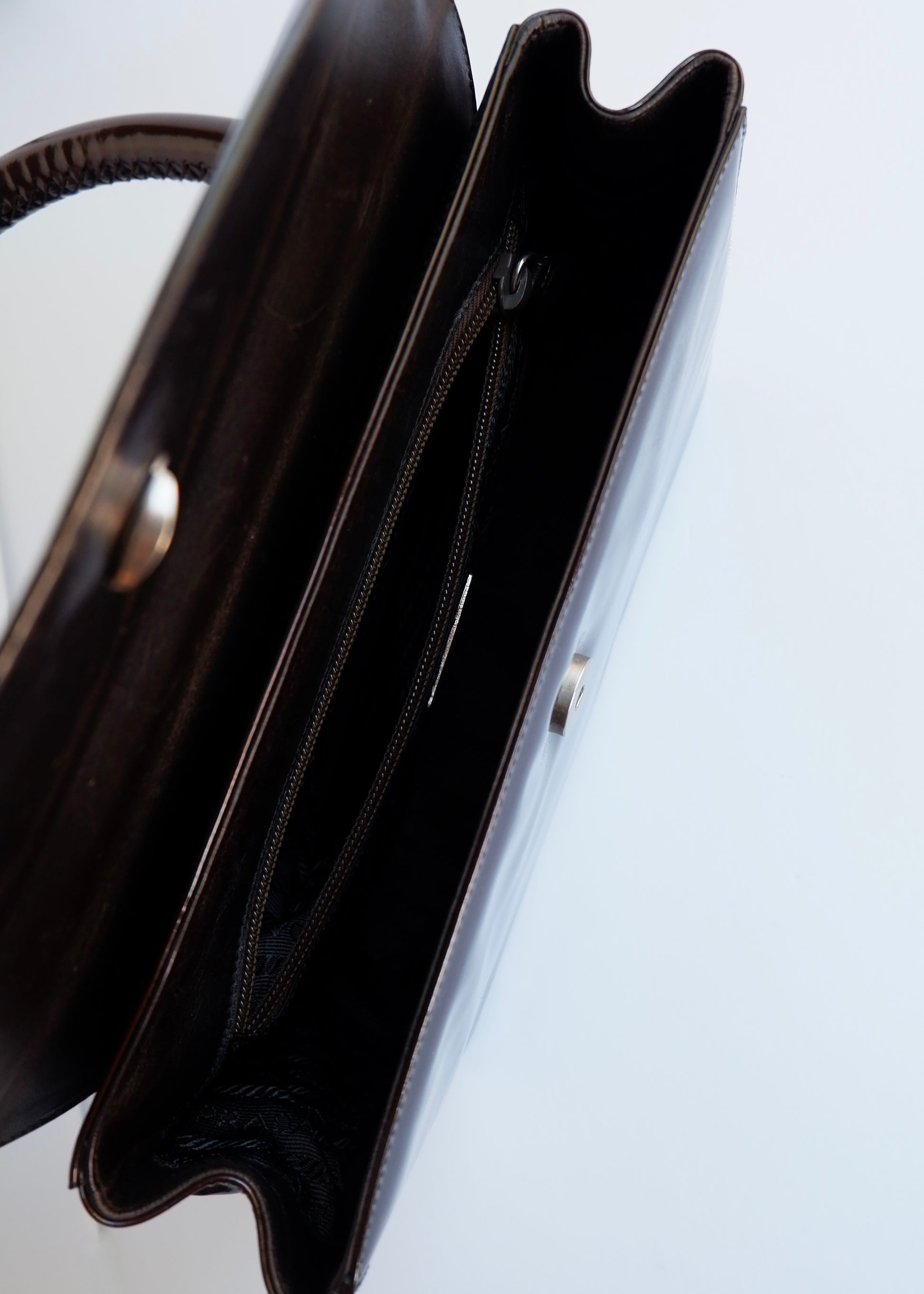 Authentic Preowned Prada Brown Patent Leather Top Handle Bag