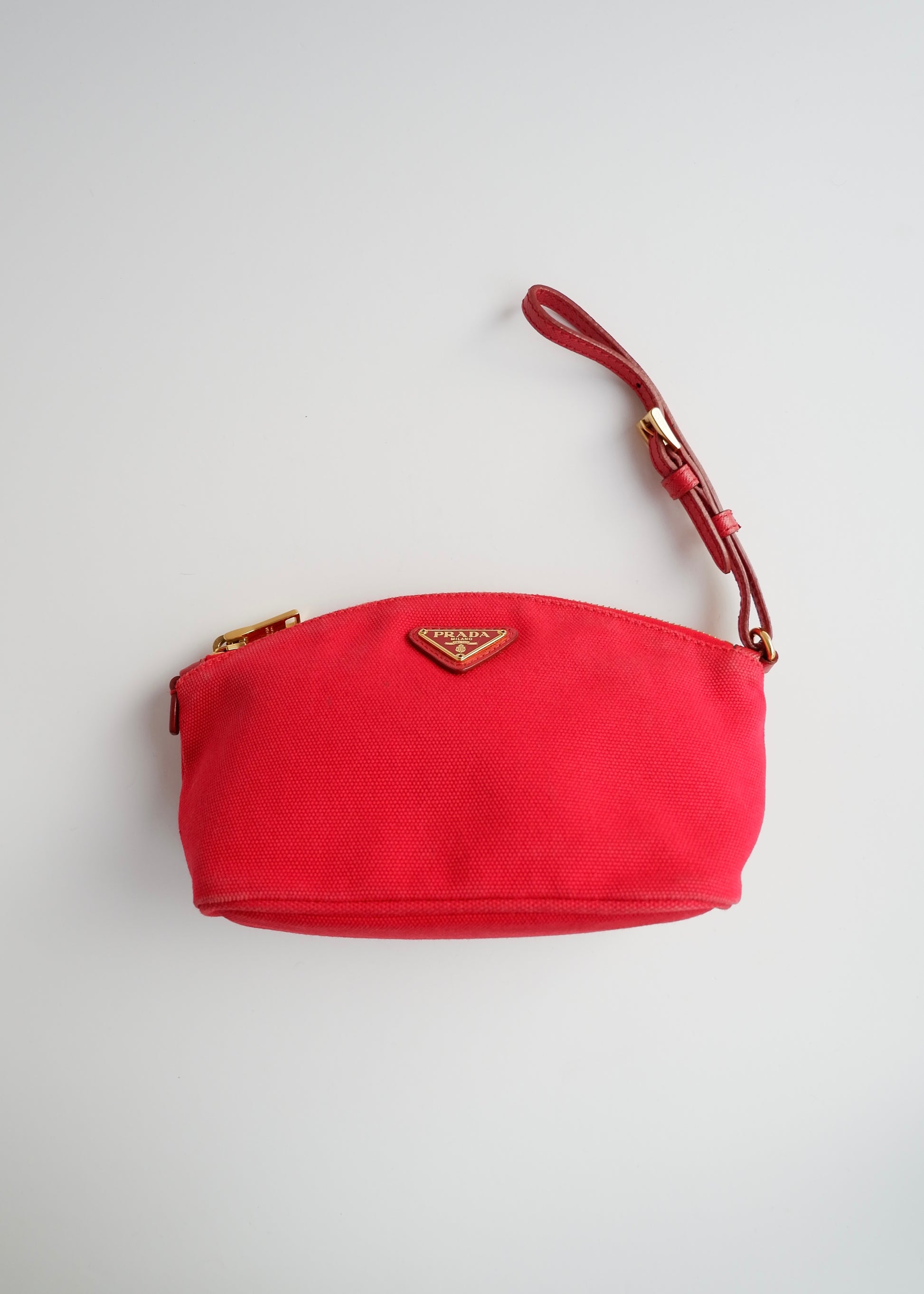 Authentic Preowned Prada Red Cavas Wristlet Pouch