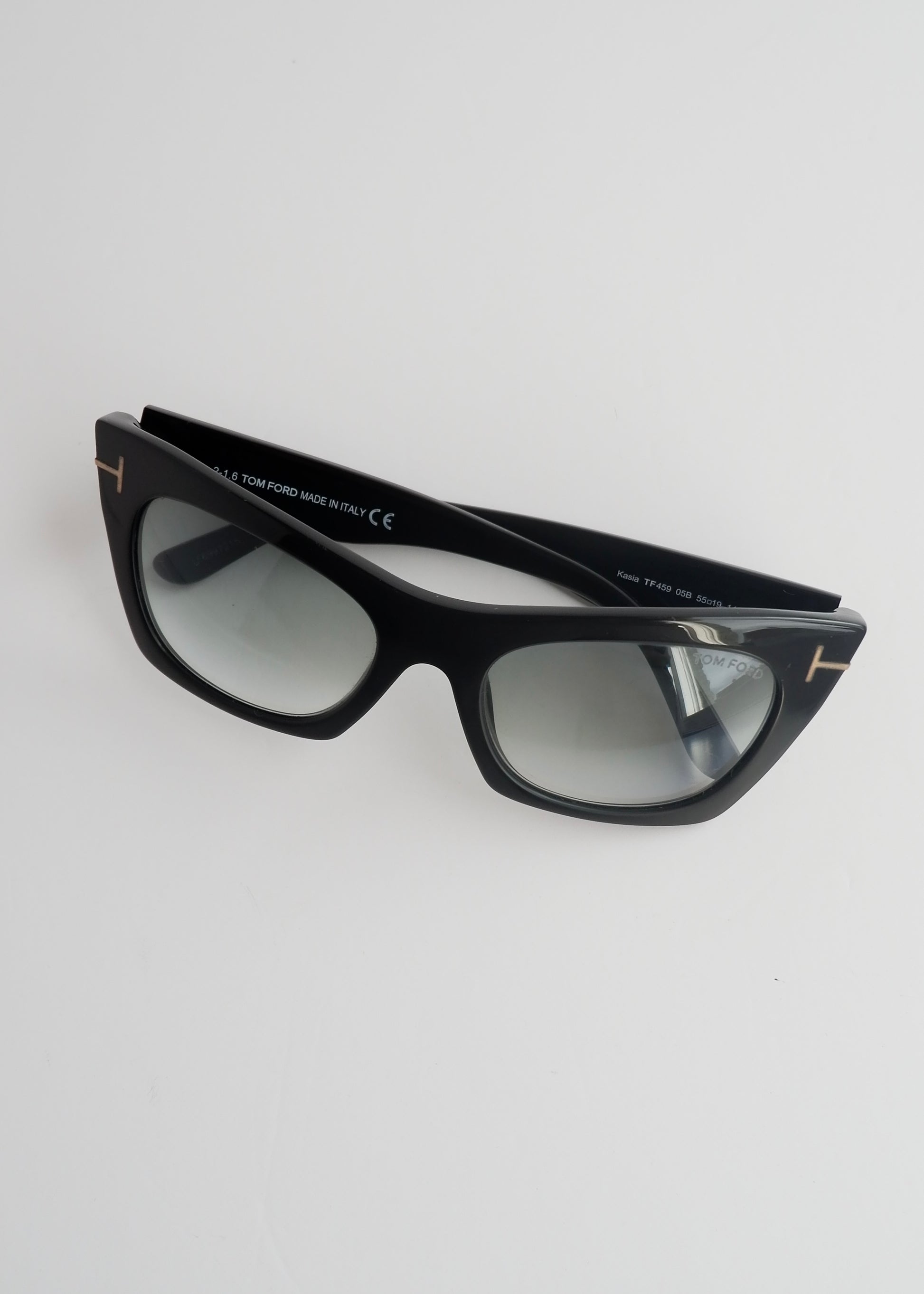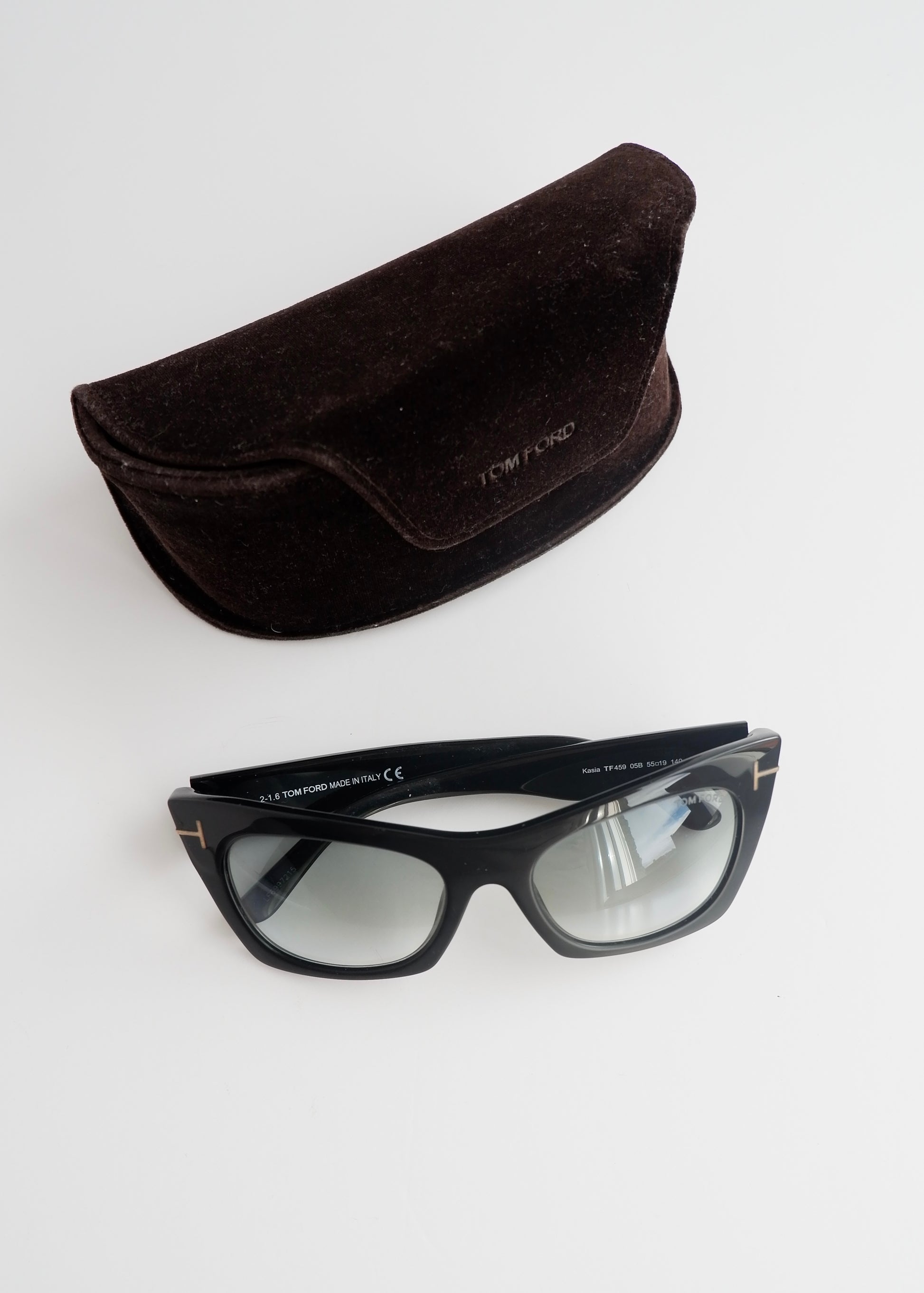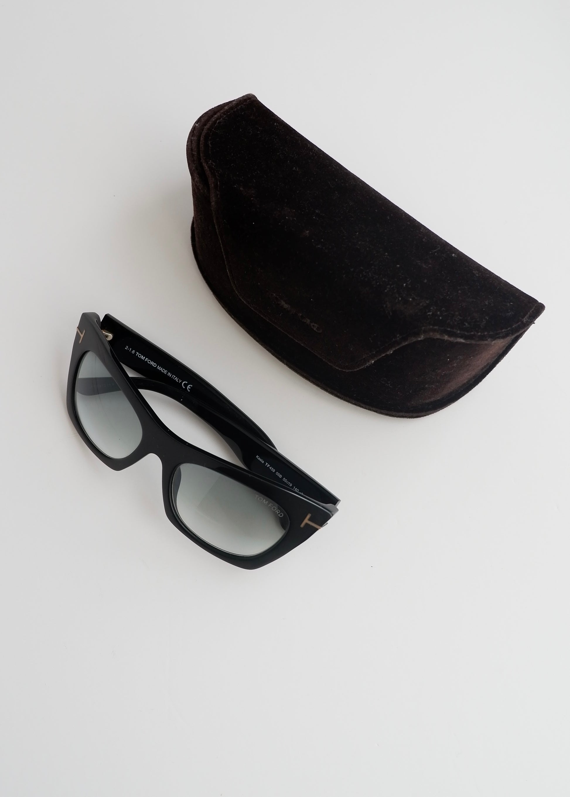 Authentic Preowned Tom Ford Black Cat Eye Blue Gradient Lense Sunglasses
