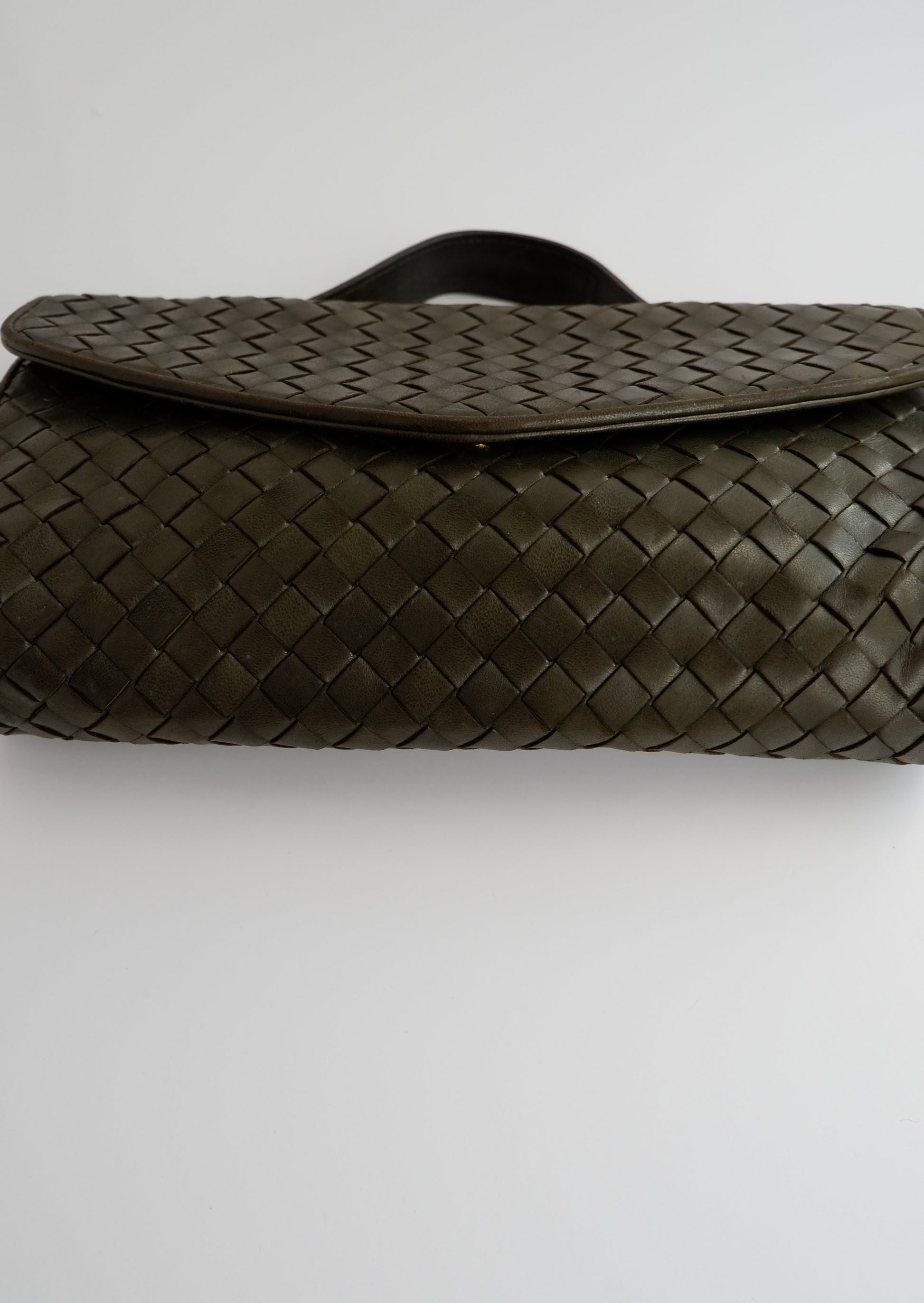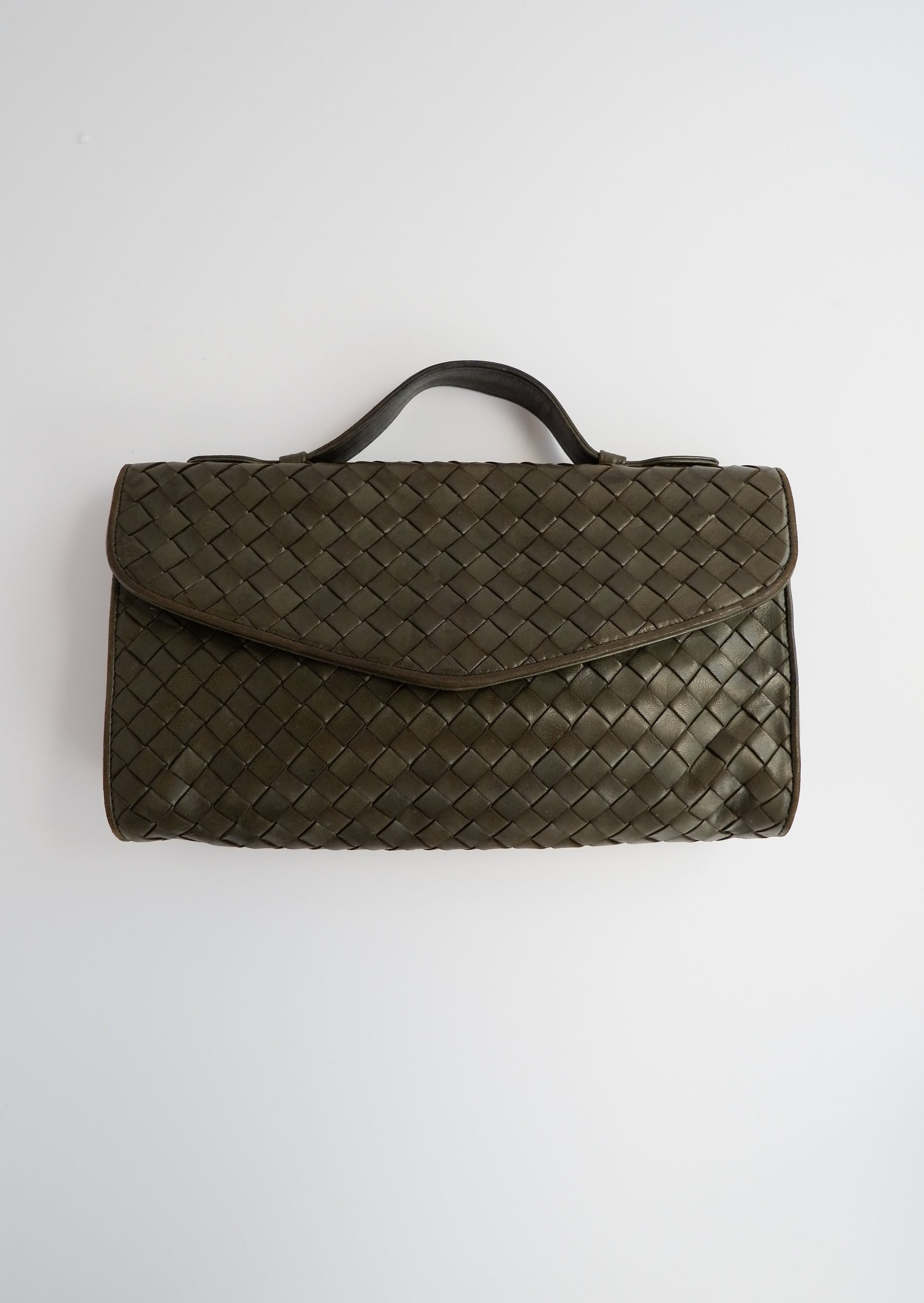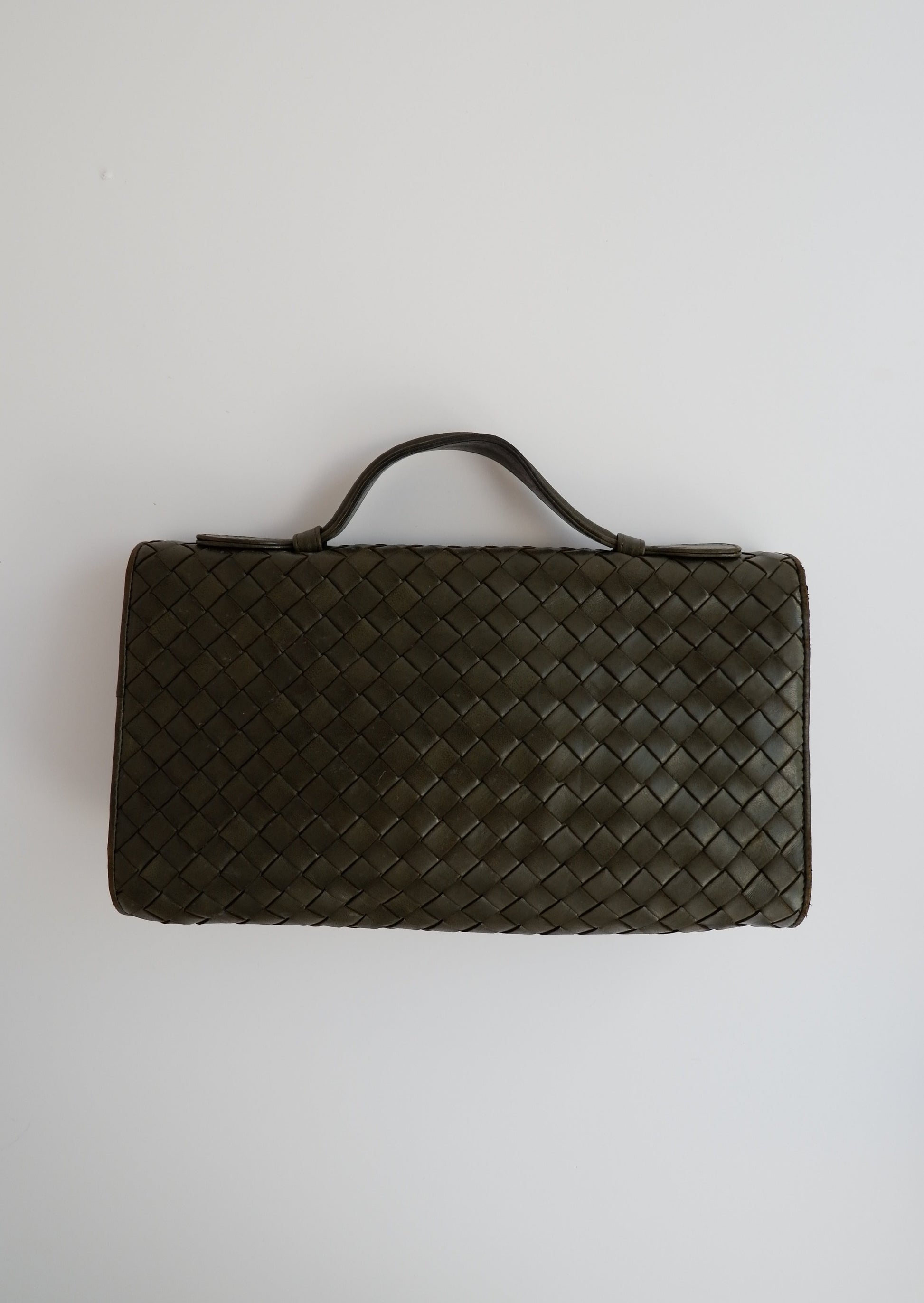 Authentic Preowned Vintage Bottega Veneta Green/Khaki Woven Clutch (Like Current Andiamo Clutch)