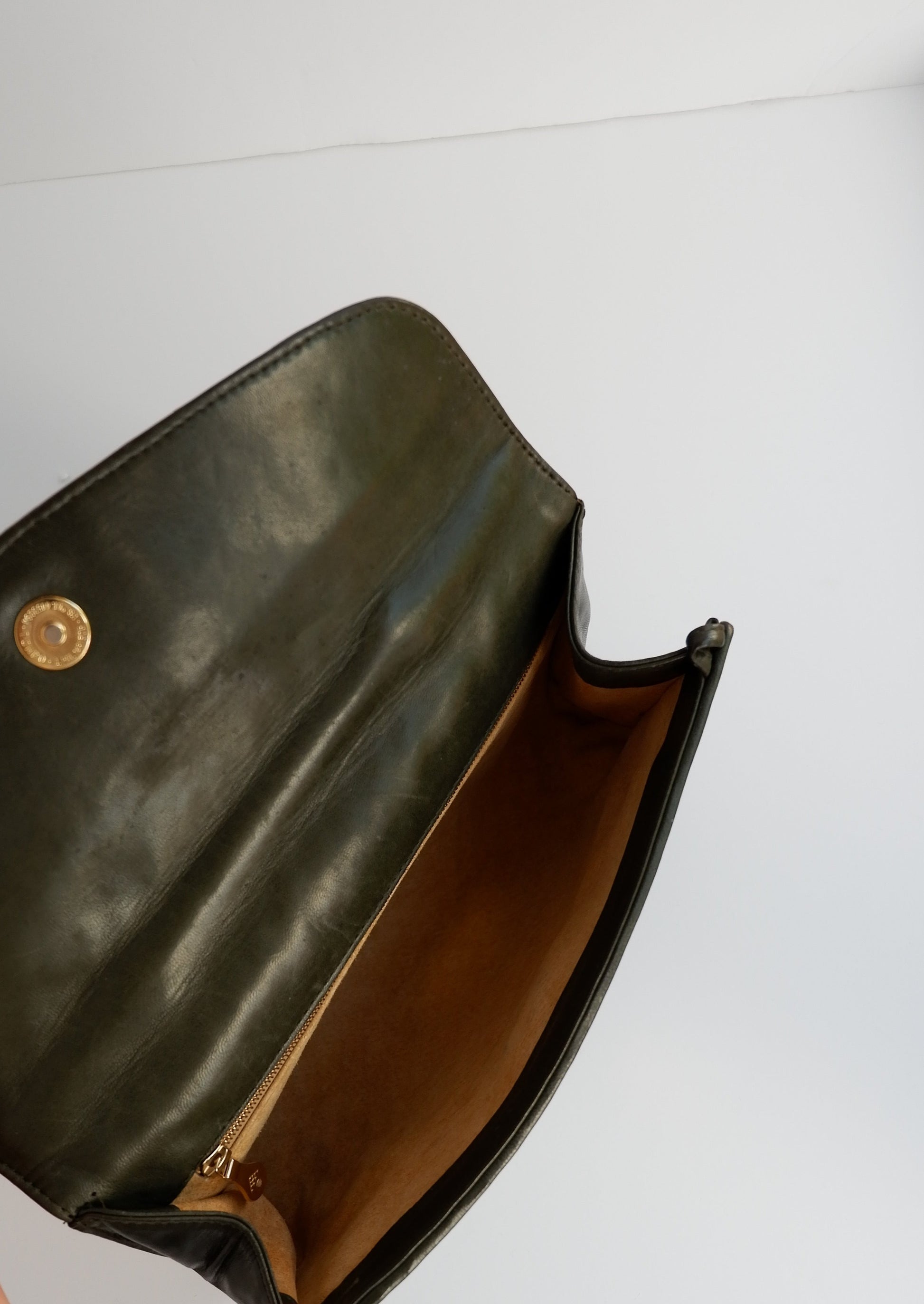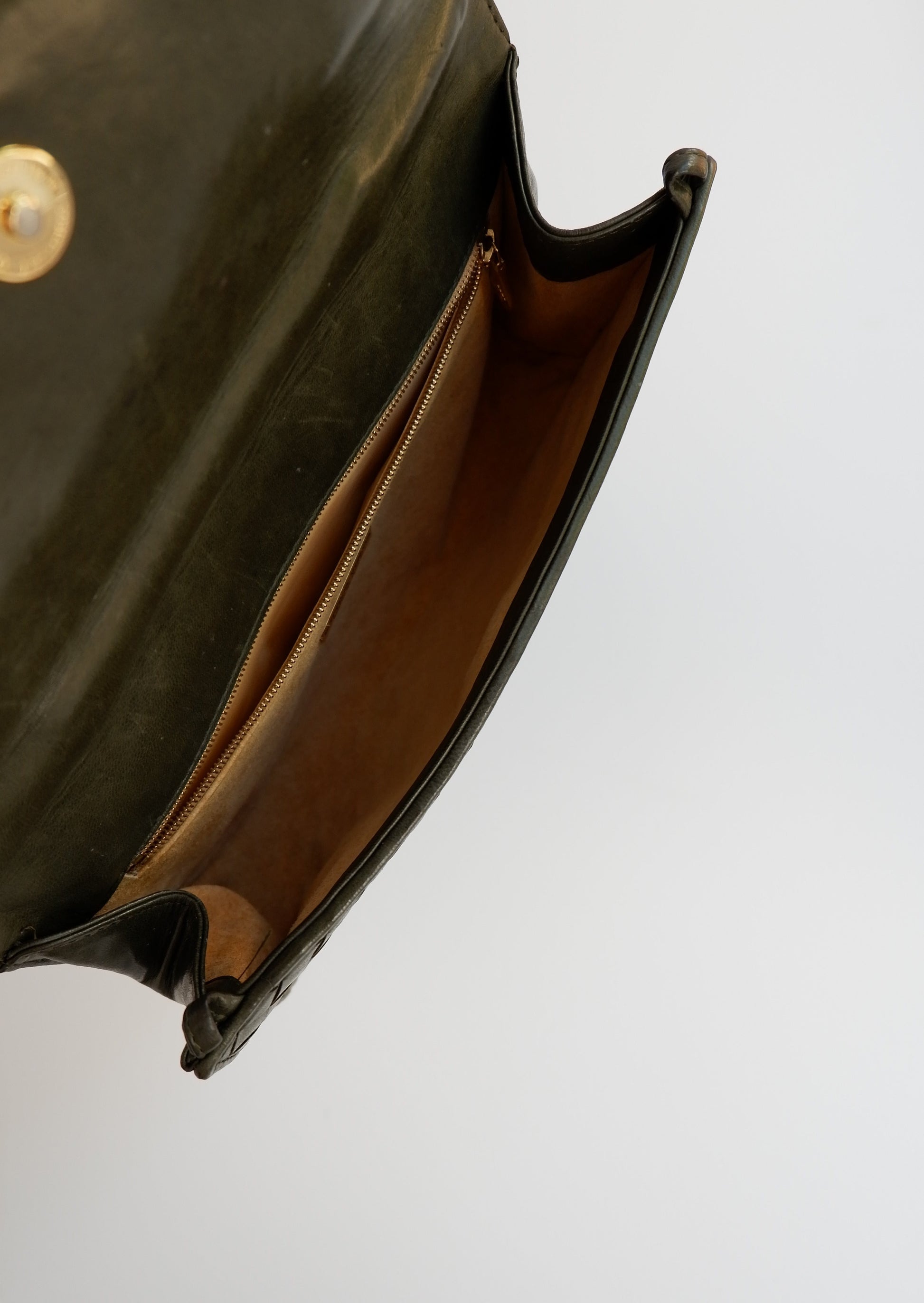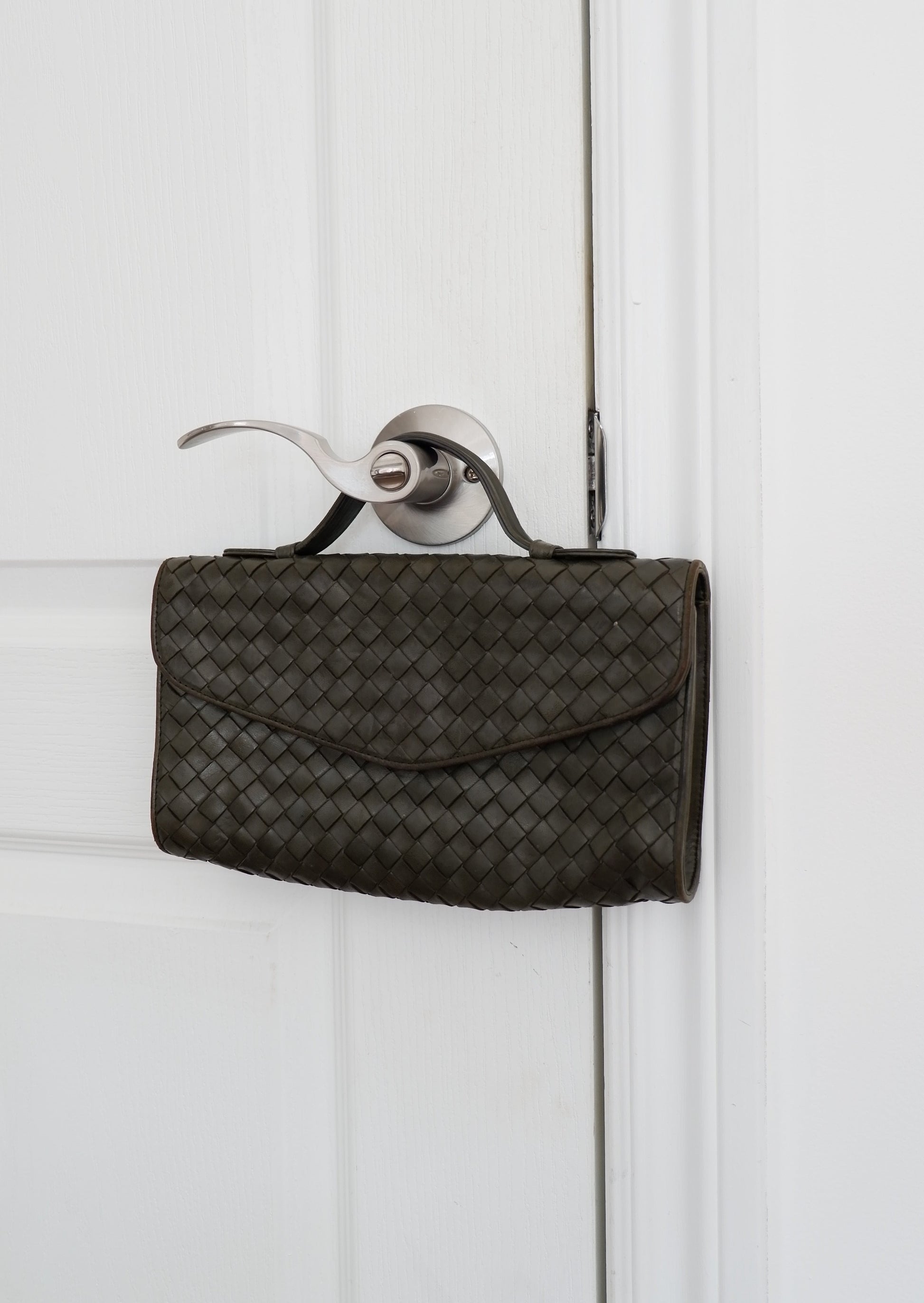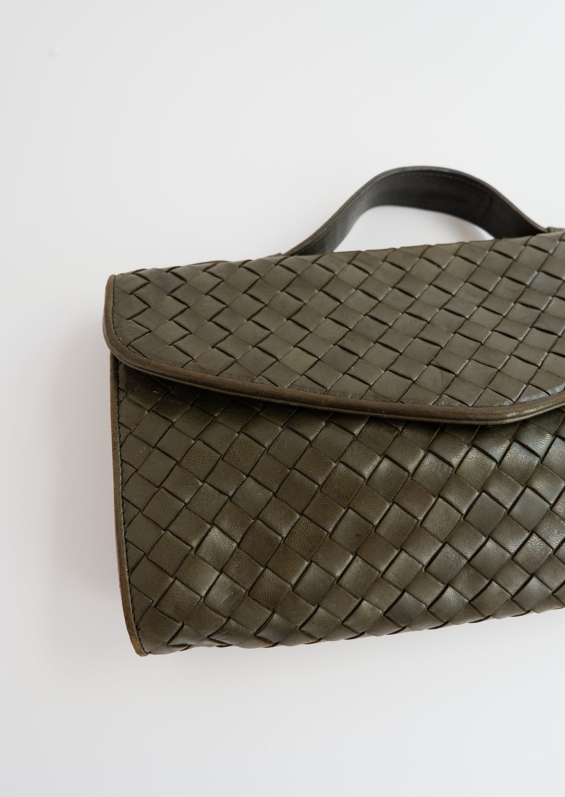 Authentic Preowned Vintage Bottega Veneta Green/Khaki Woven Clutch (Like Current Andiamo Clutch)
