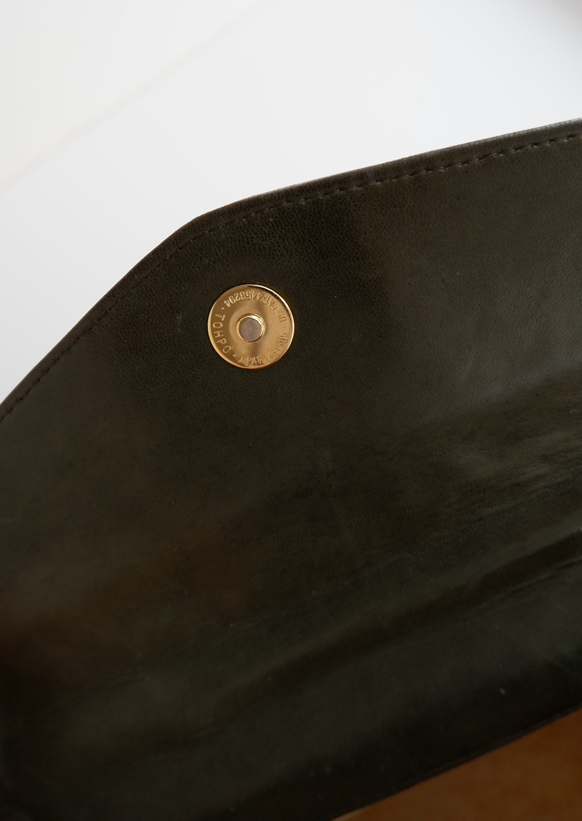 Condition: 8/10 Good Vintage Condition - The bag shows signs of wear on the exterior leather. The interior leather flap has some scratches. The inside is clean with no marks or stains.