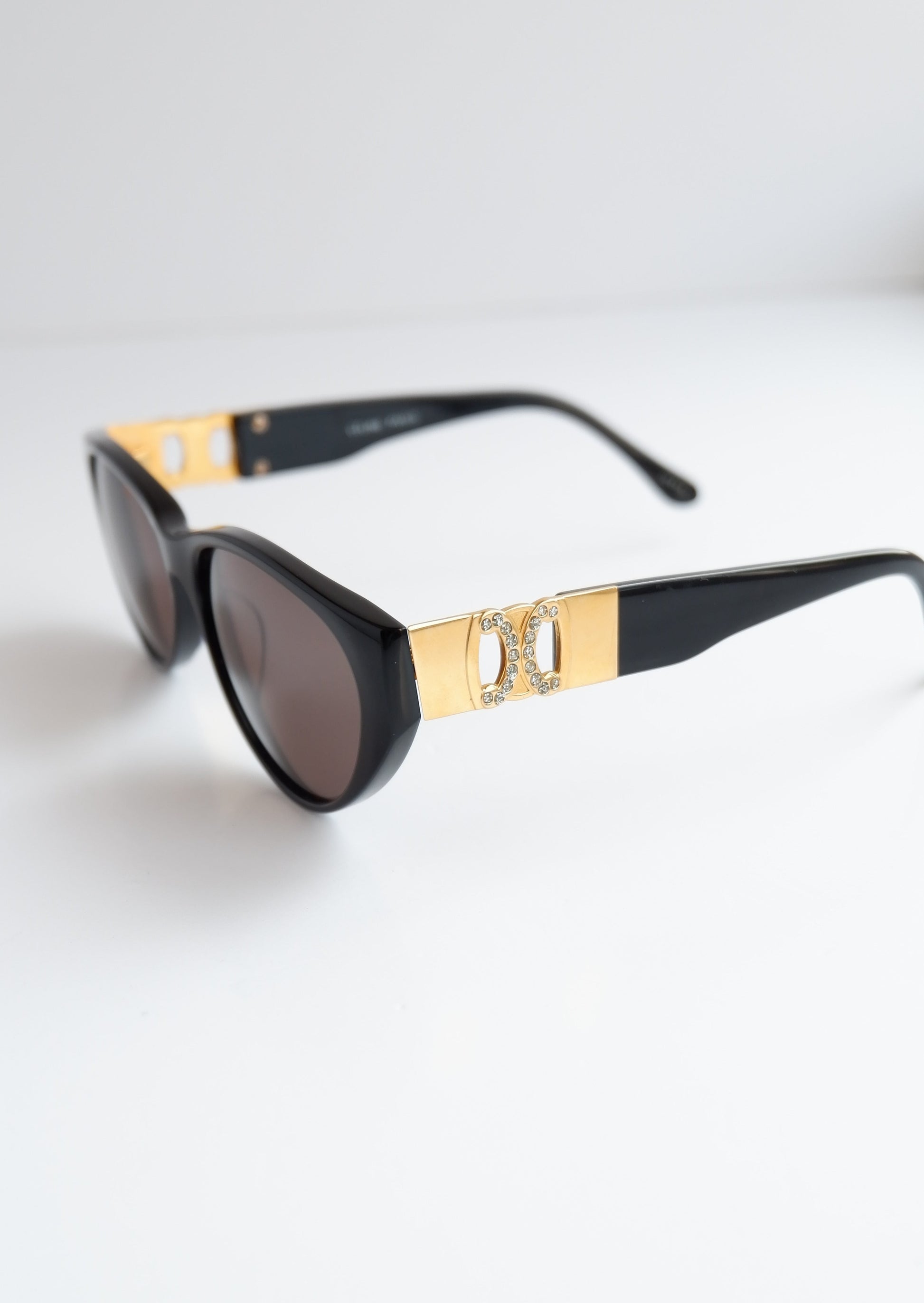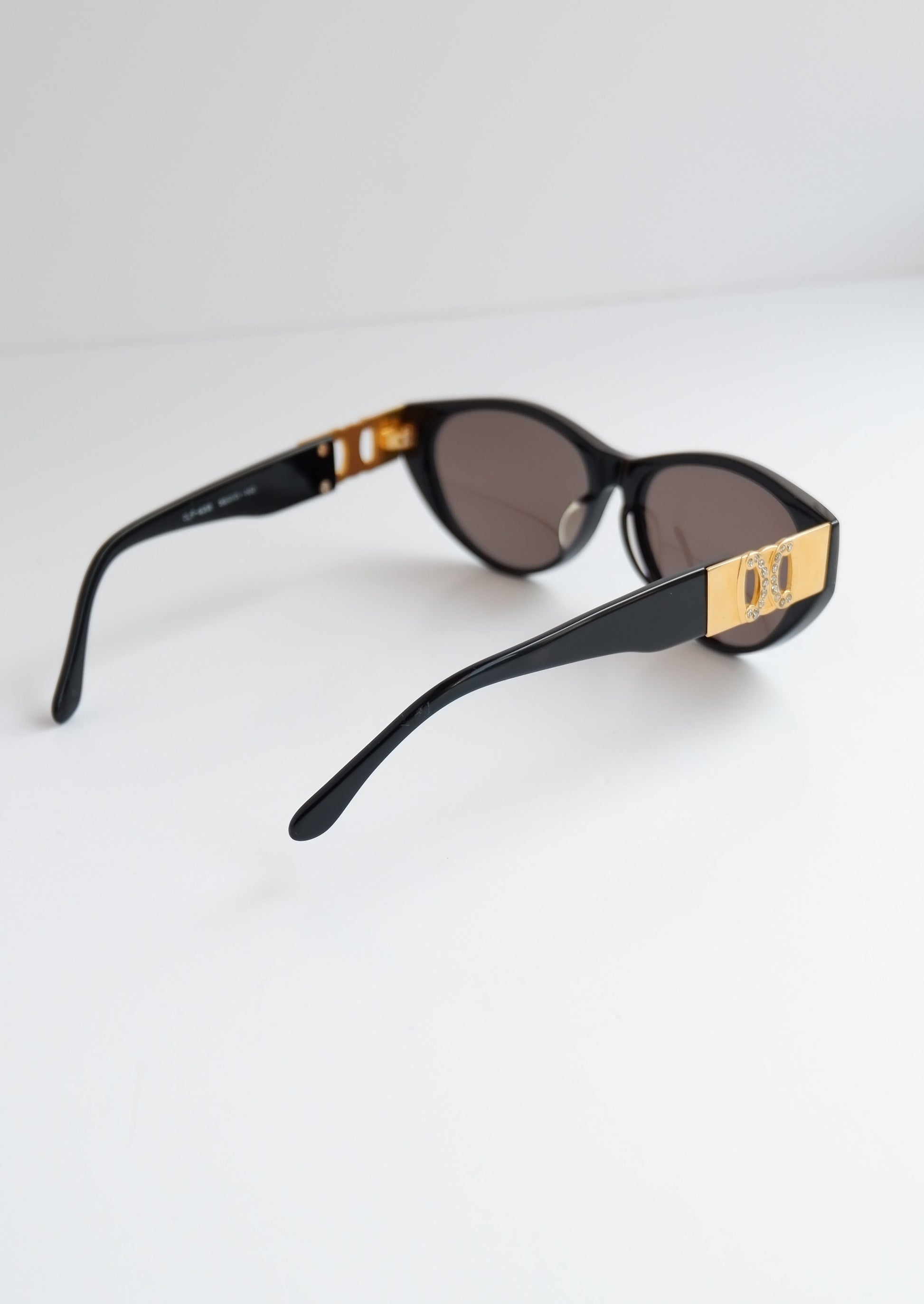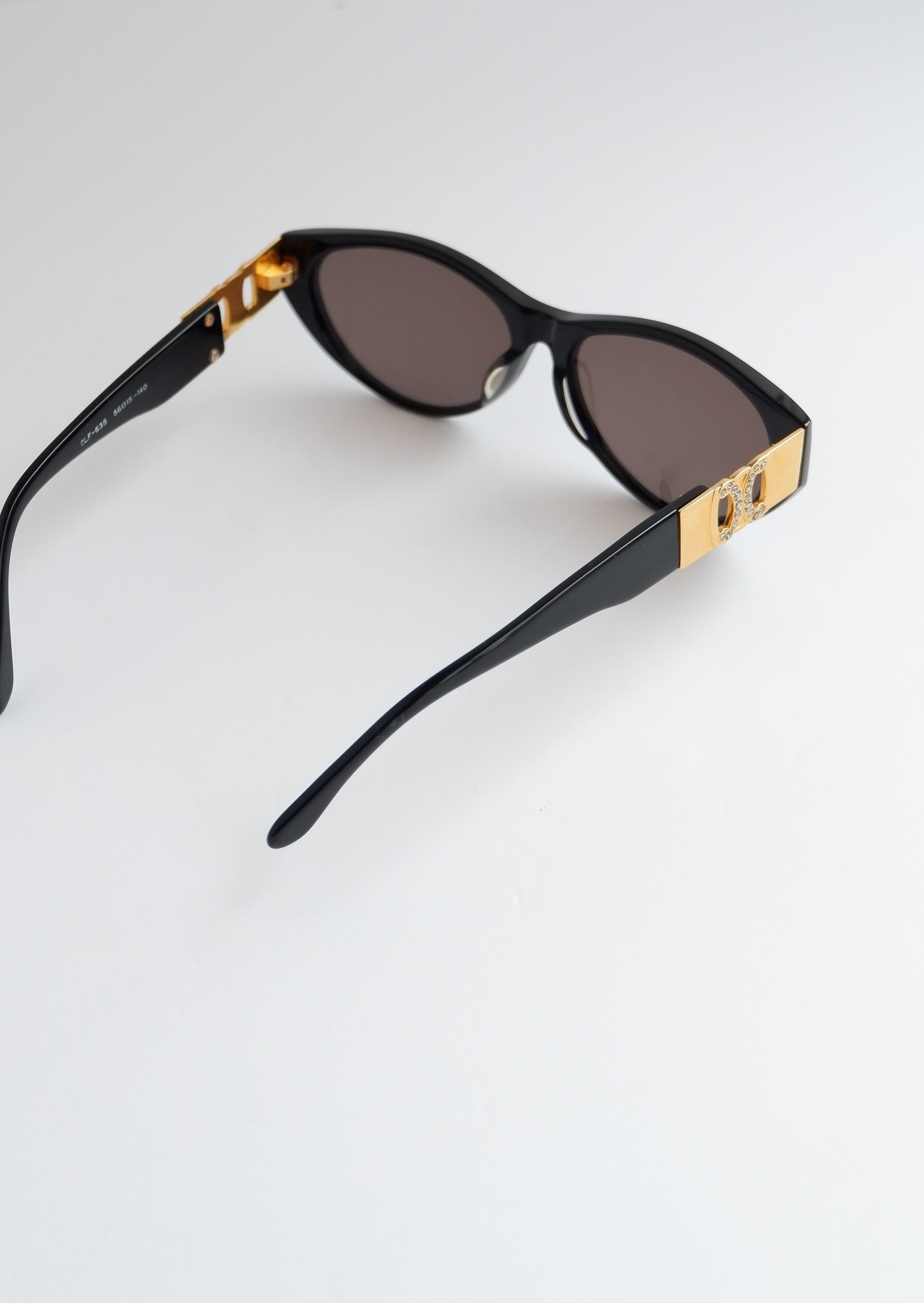 Authentic Preowned Vintage Celine Black Gold/ Embellished Logo Cat Eye Sunglasses