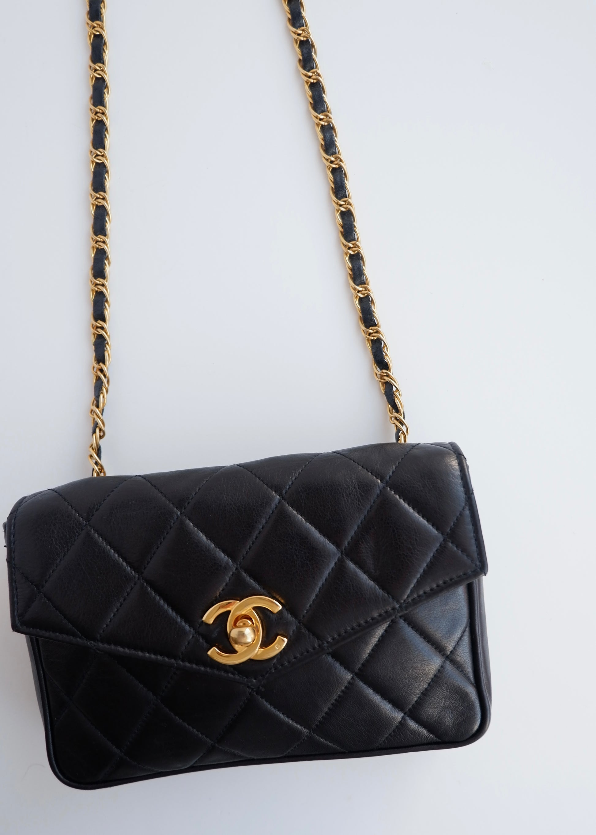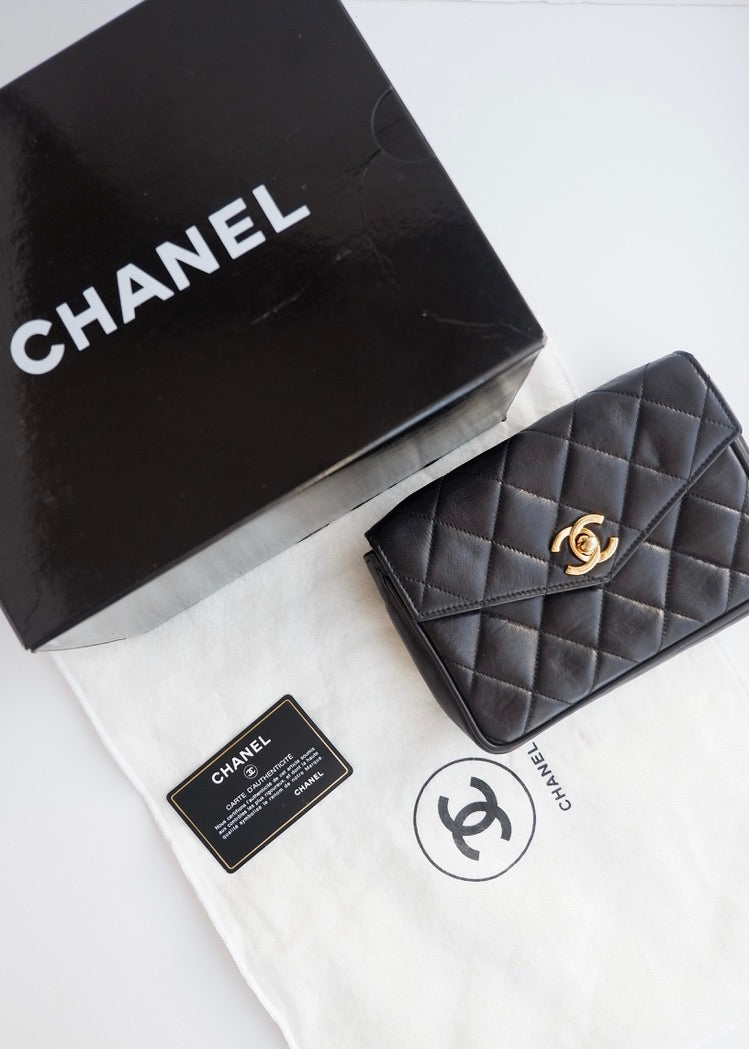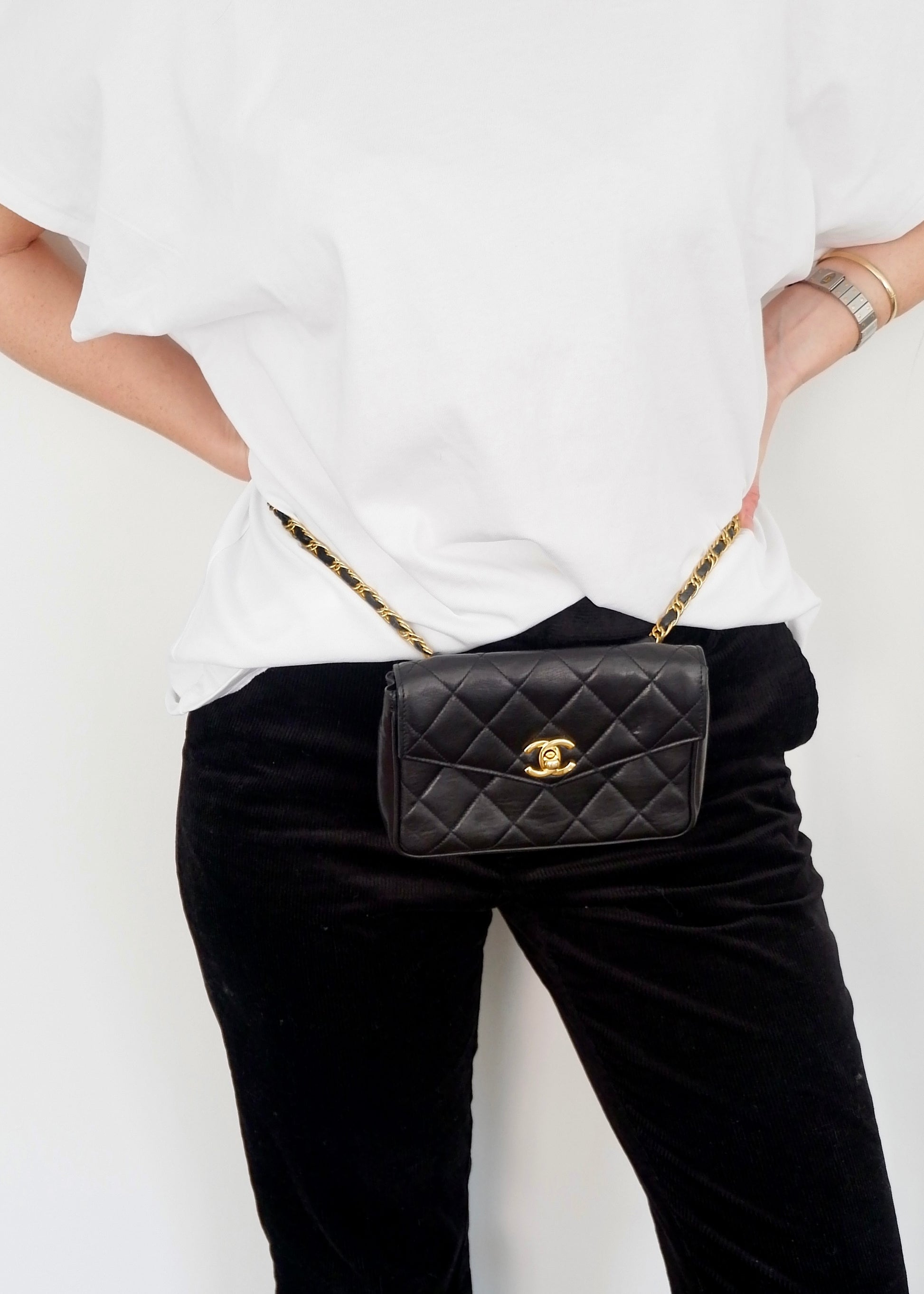 Authentic Preowned Vintage Chanel Black Lambskin Belt Bag GHW
