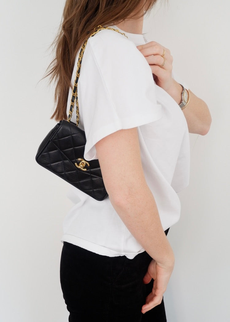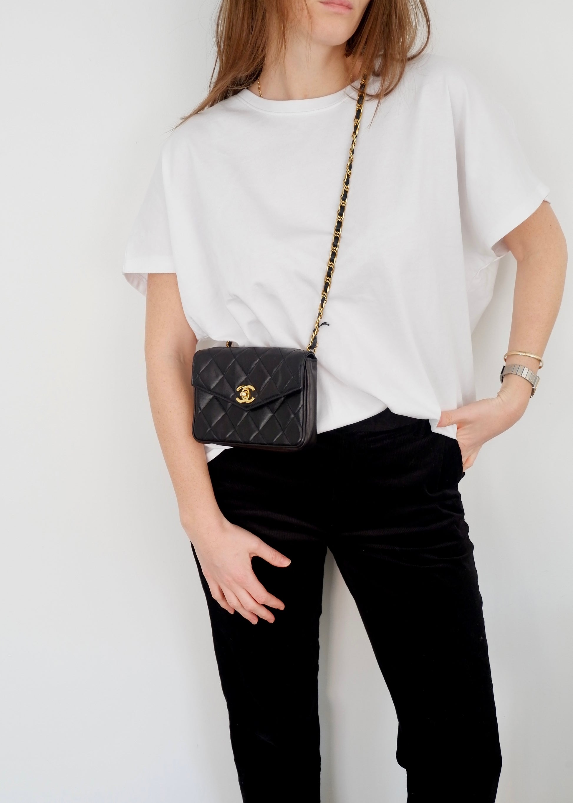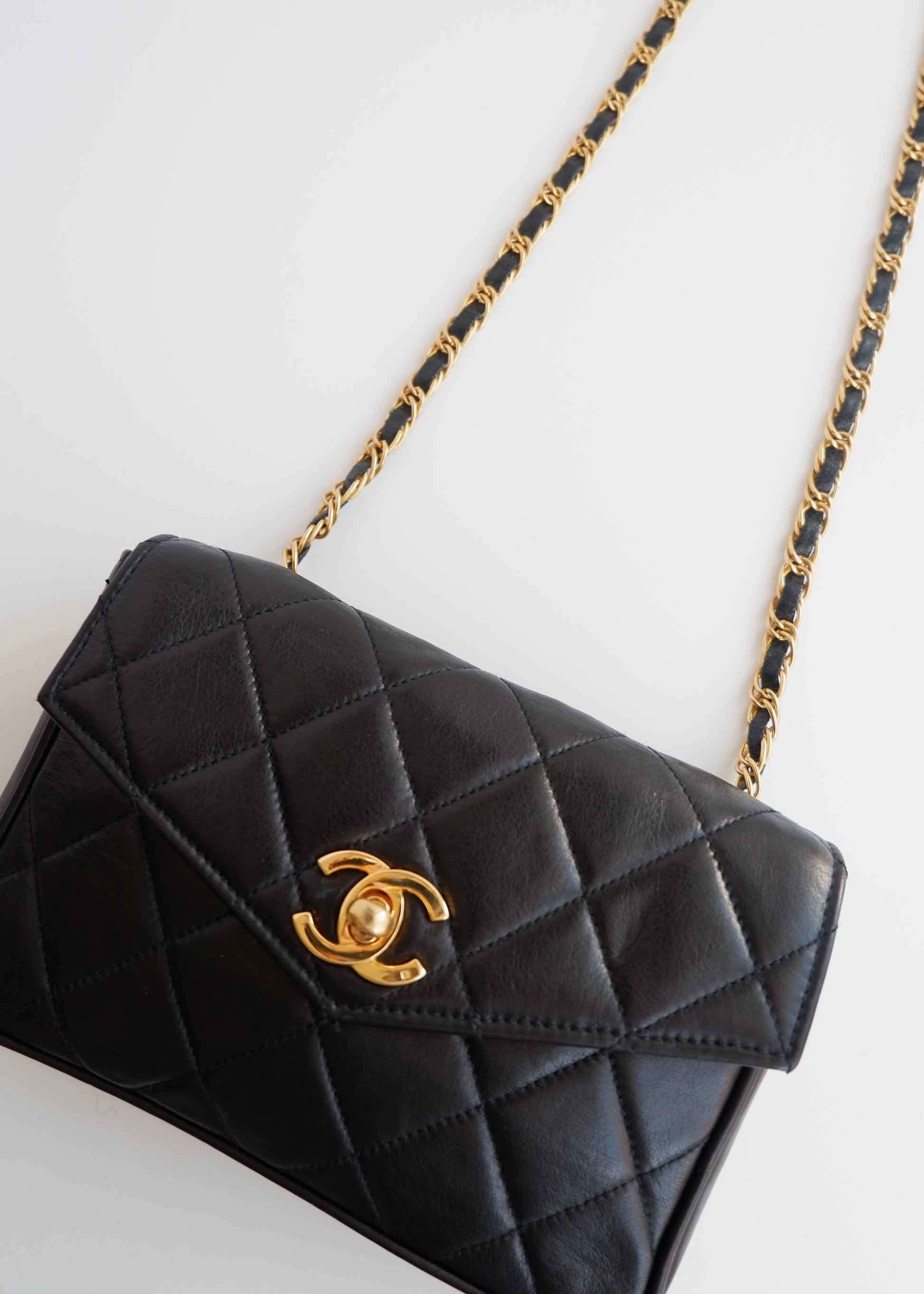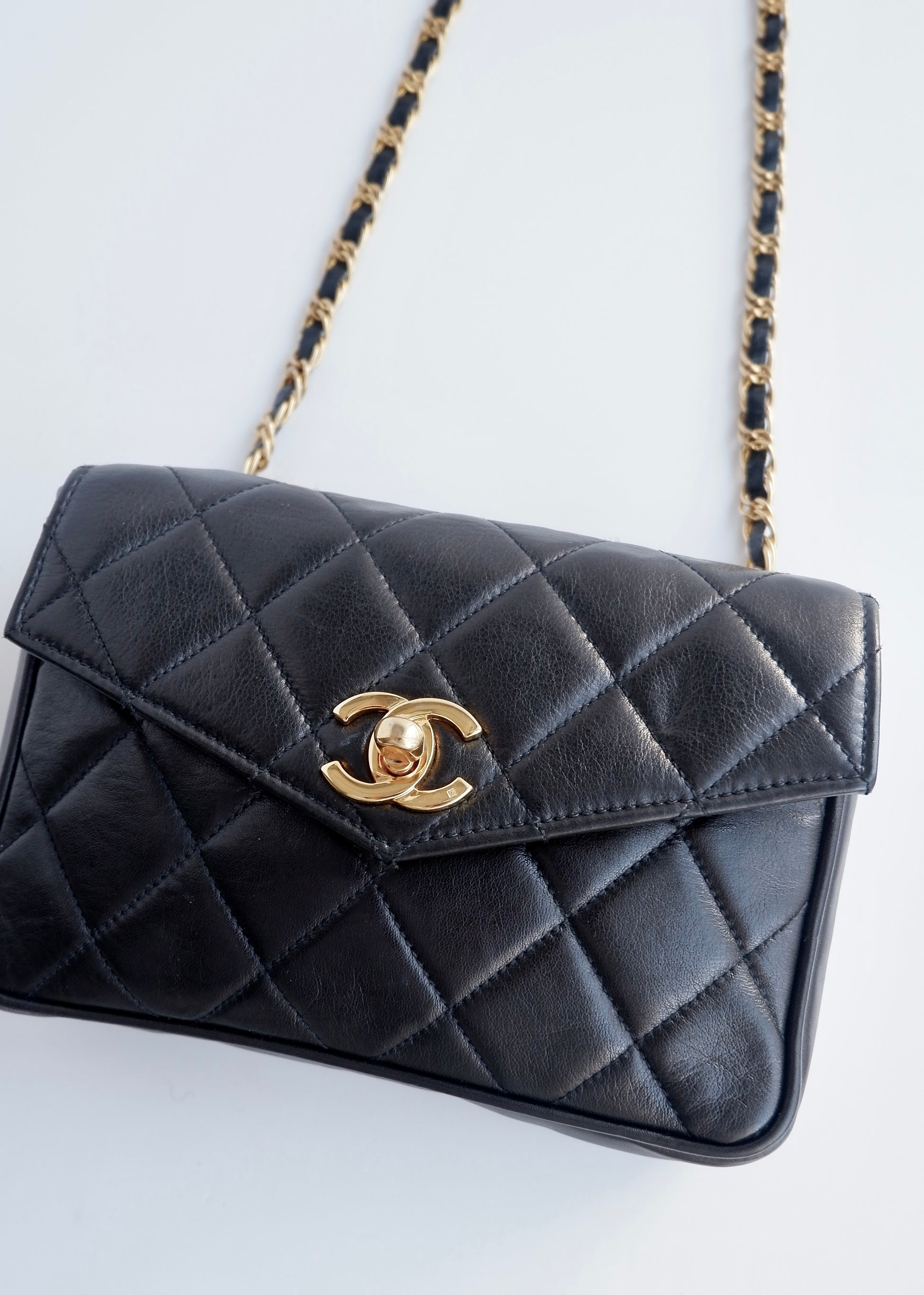 Authentic Preowned Vintage Chanel Black Lambskin Belt Bag GHW