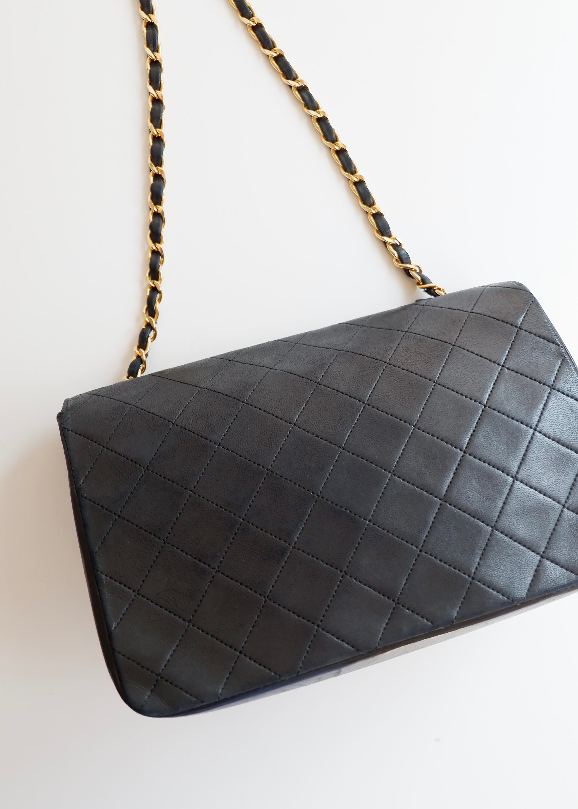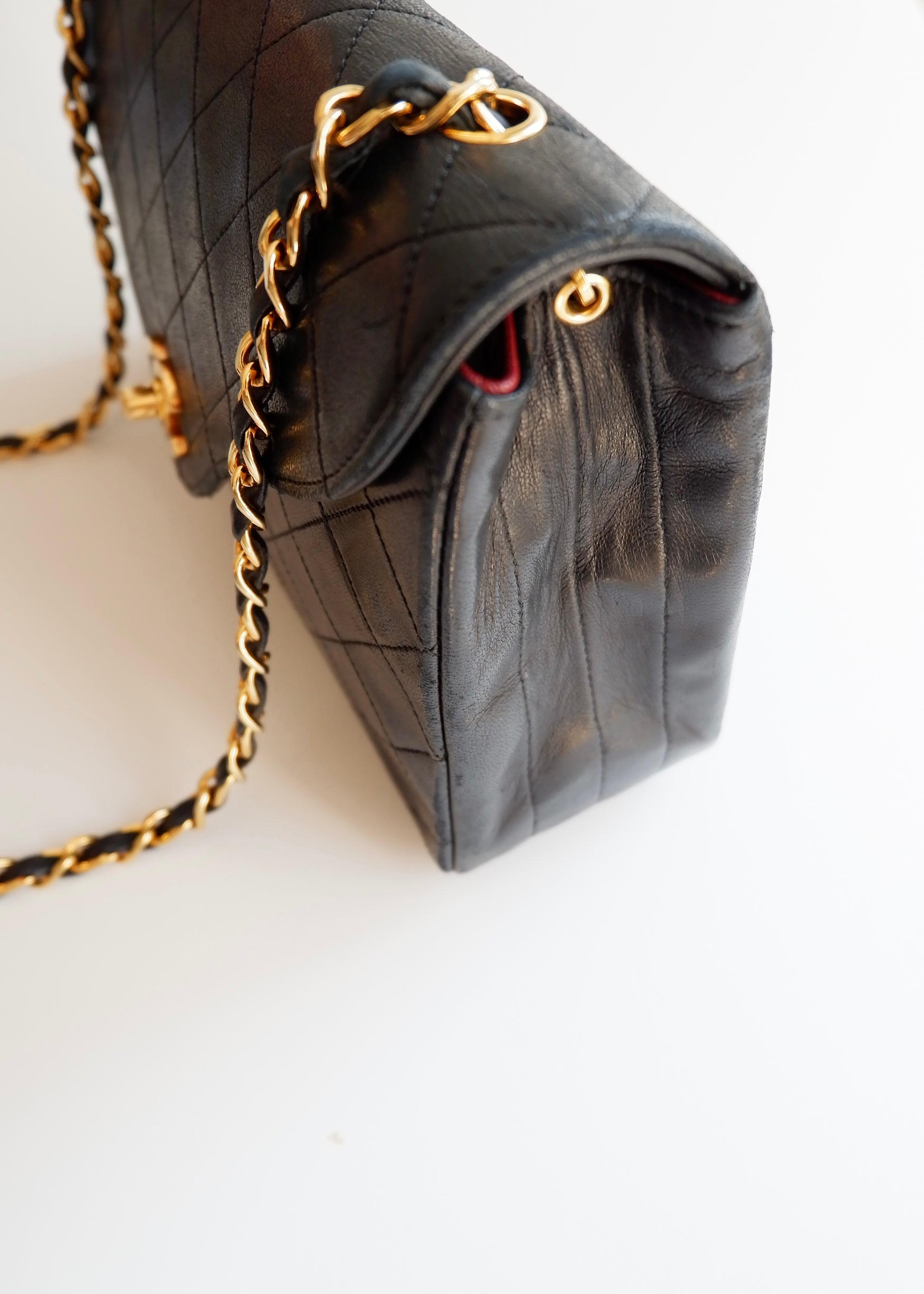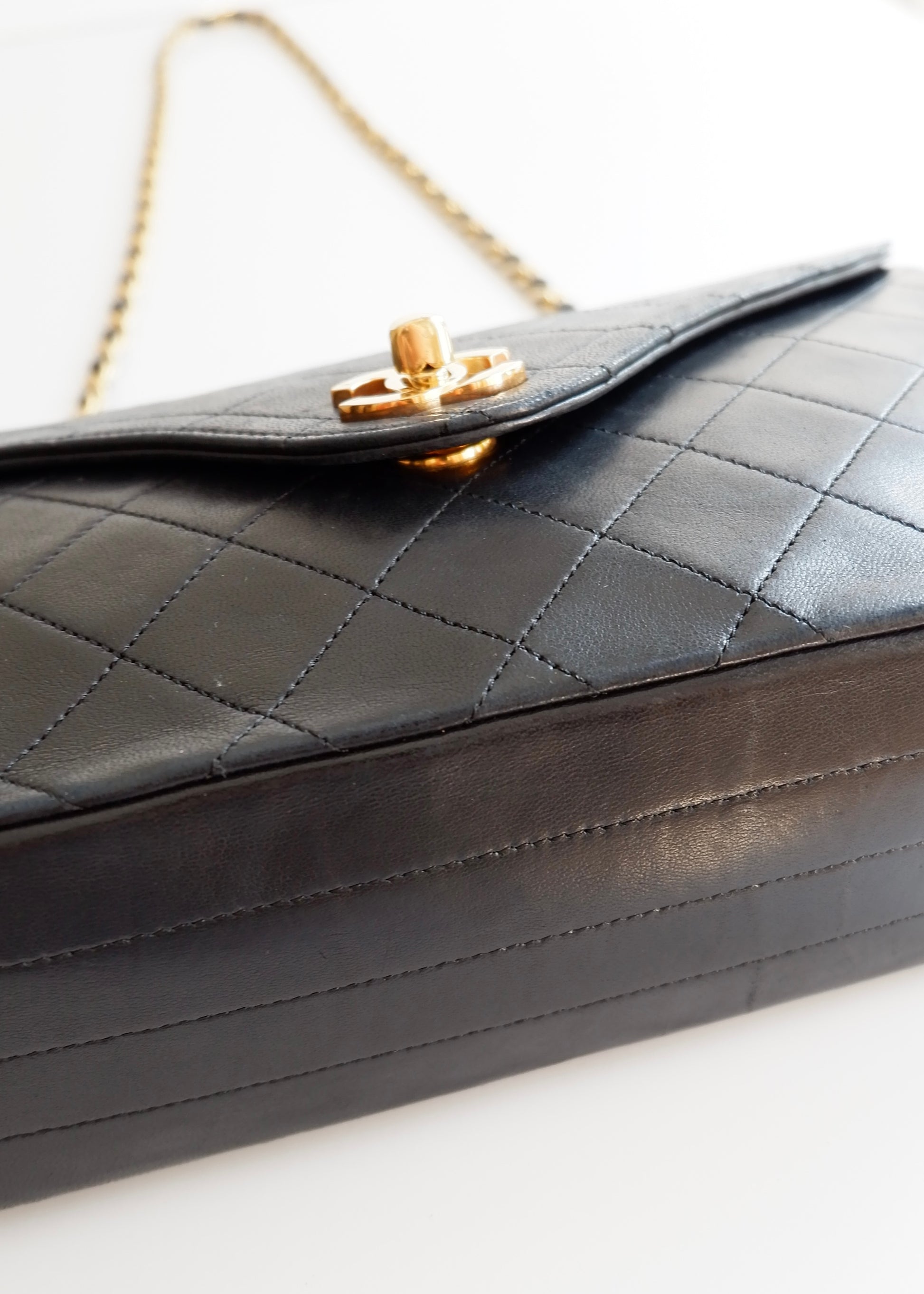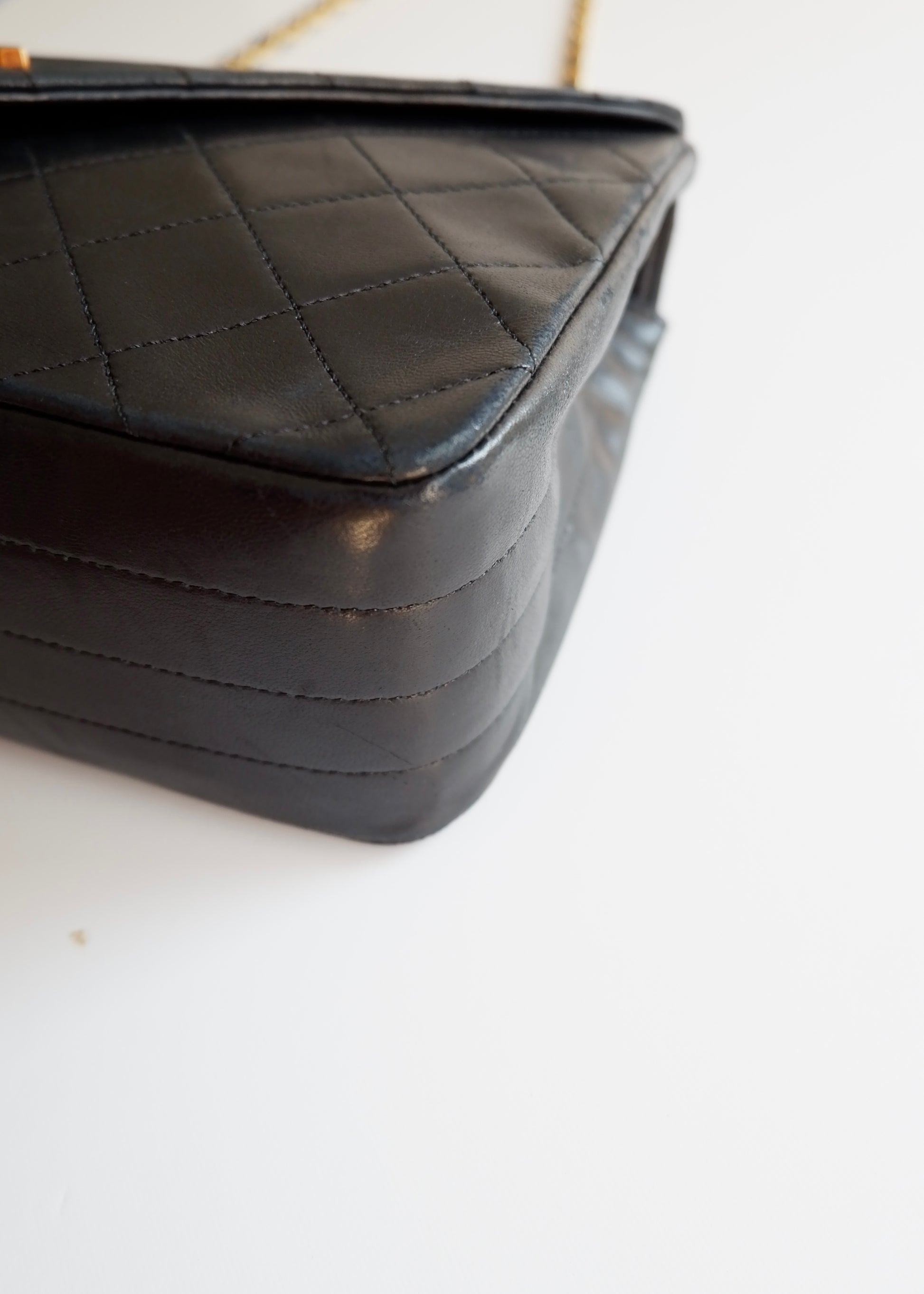 Authentic Preowned Vintage Chanel Black Lambskin Single Flap Bag GHW