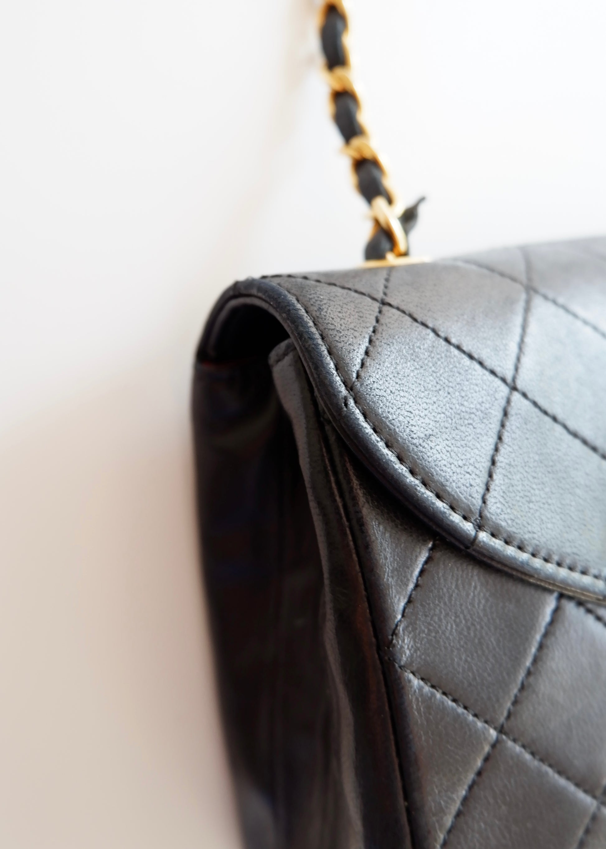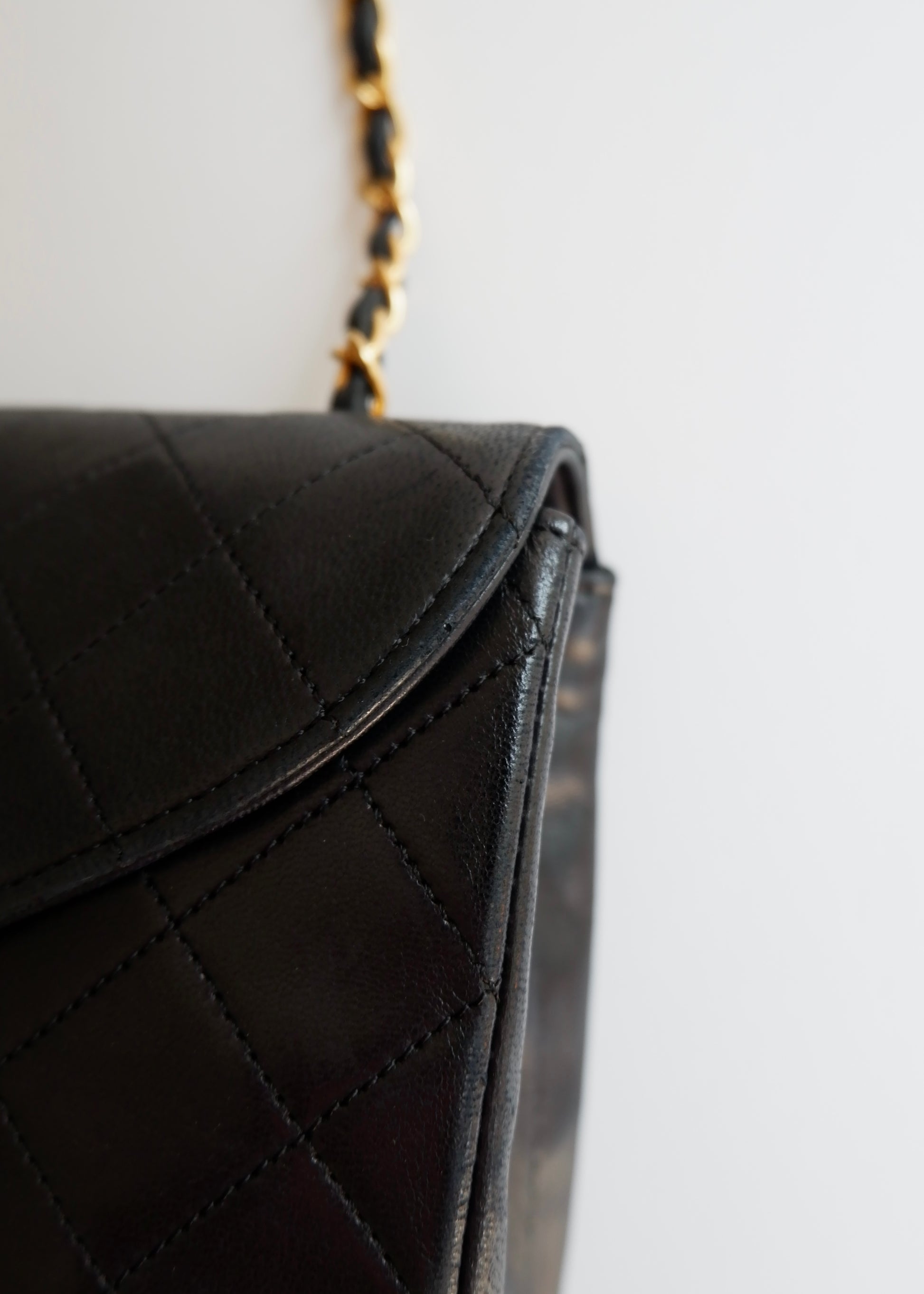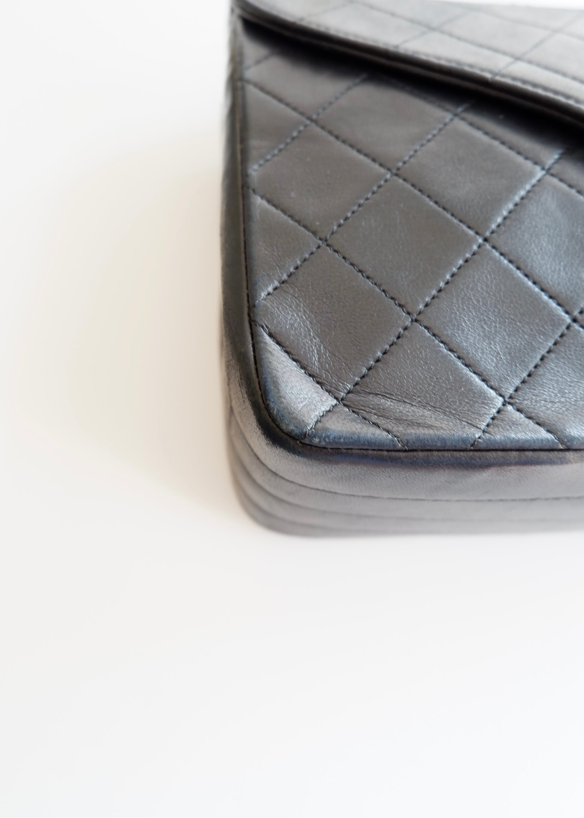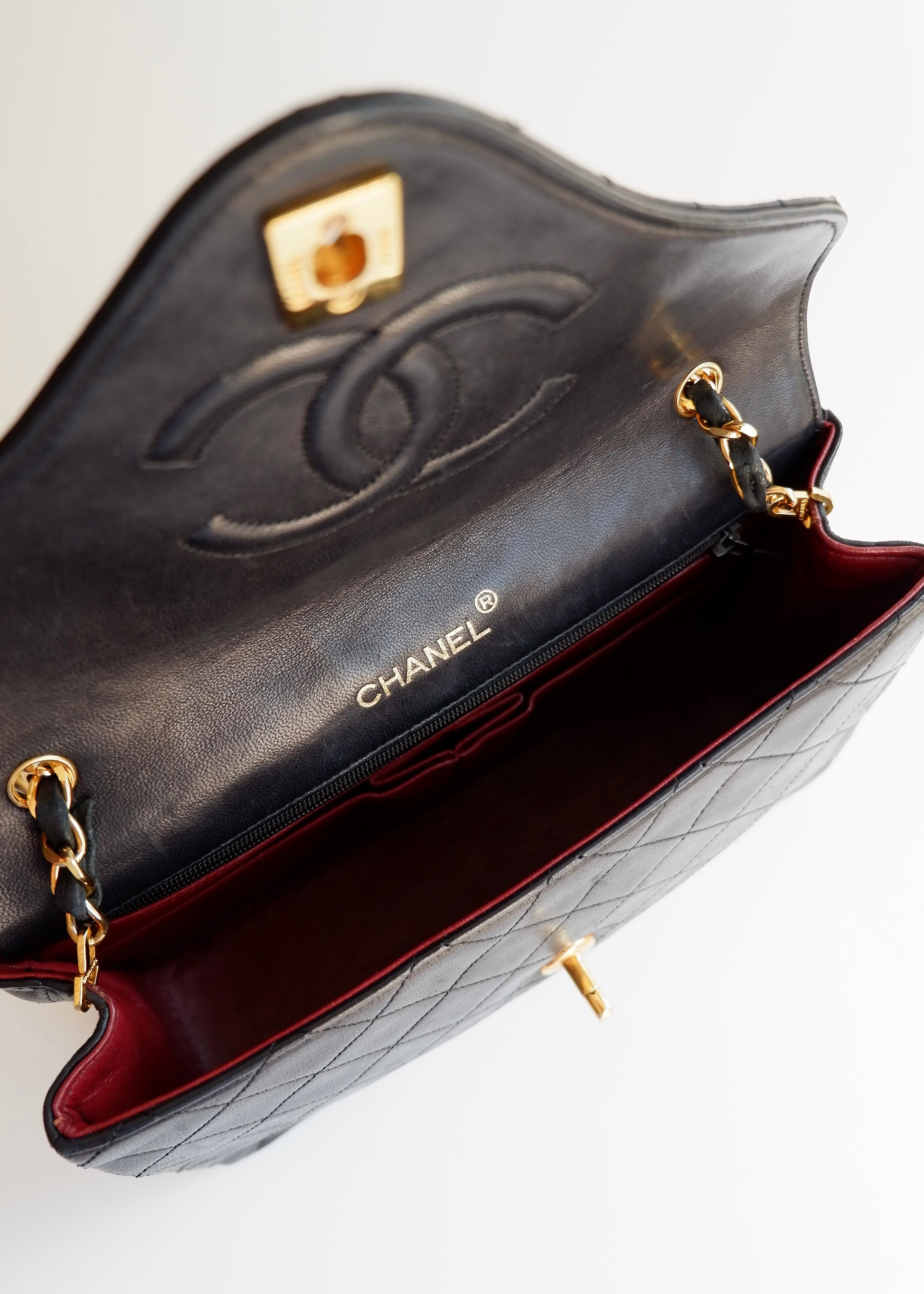 Authentic Preowned Vintage Chanel Black Lambskin Single Flap Bag GHW