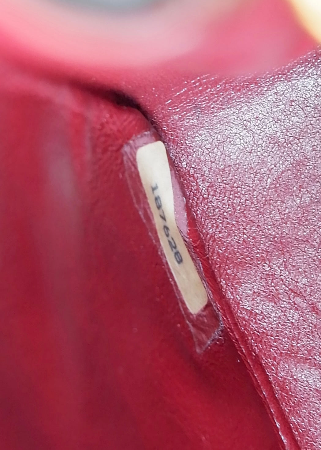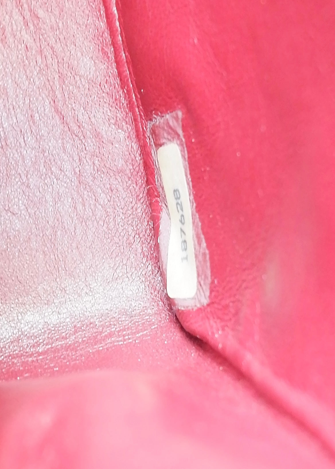 Condition: 8/10 Good Vintage Condition: There are general signs of wear on the leather (lambskin) due to wear and the fragility of the material. The corners have some light scuffing. There is one leather portion of the chain/leather strap that has come detached but does not affect the integrity or use of the strap itself.