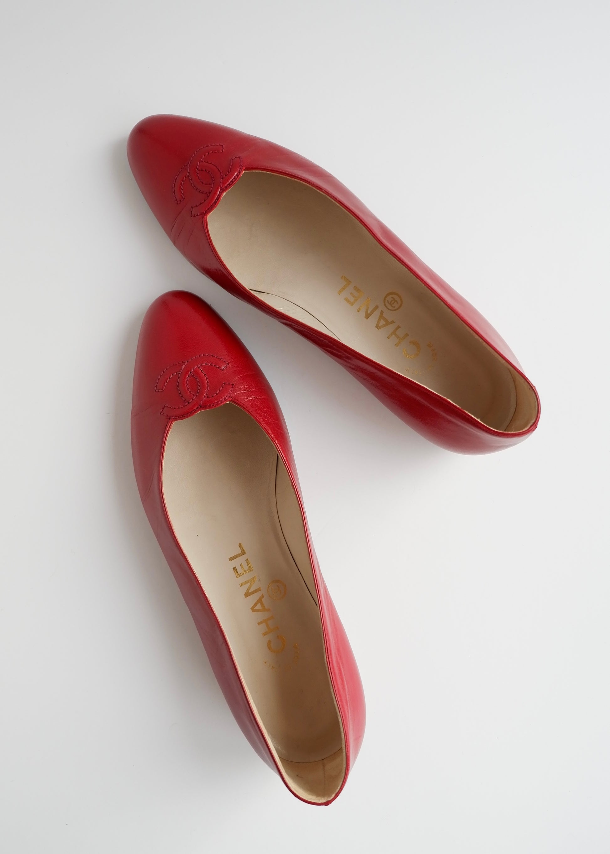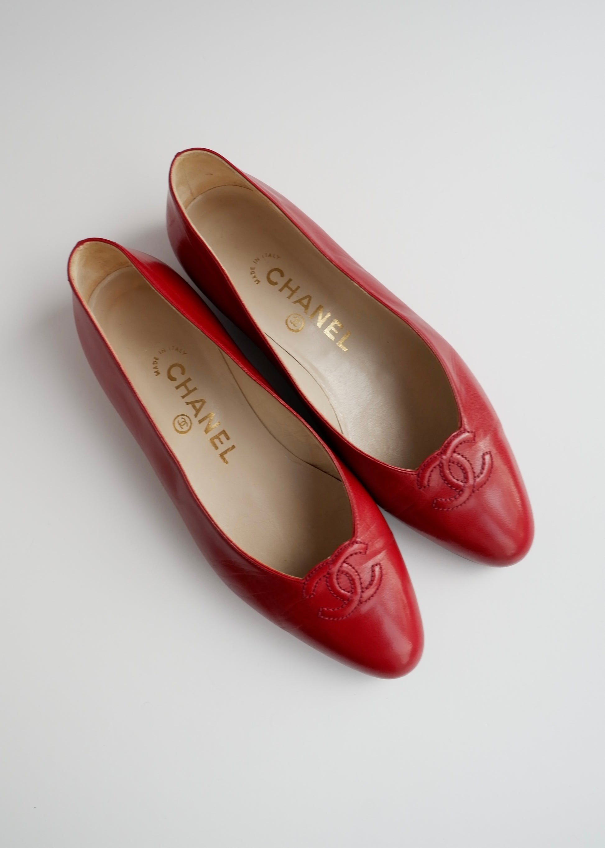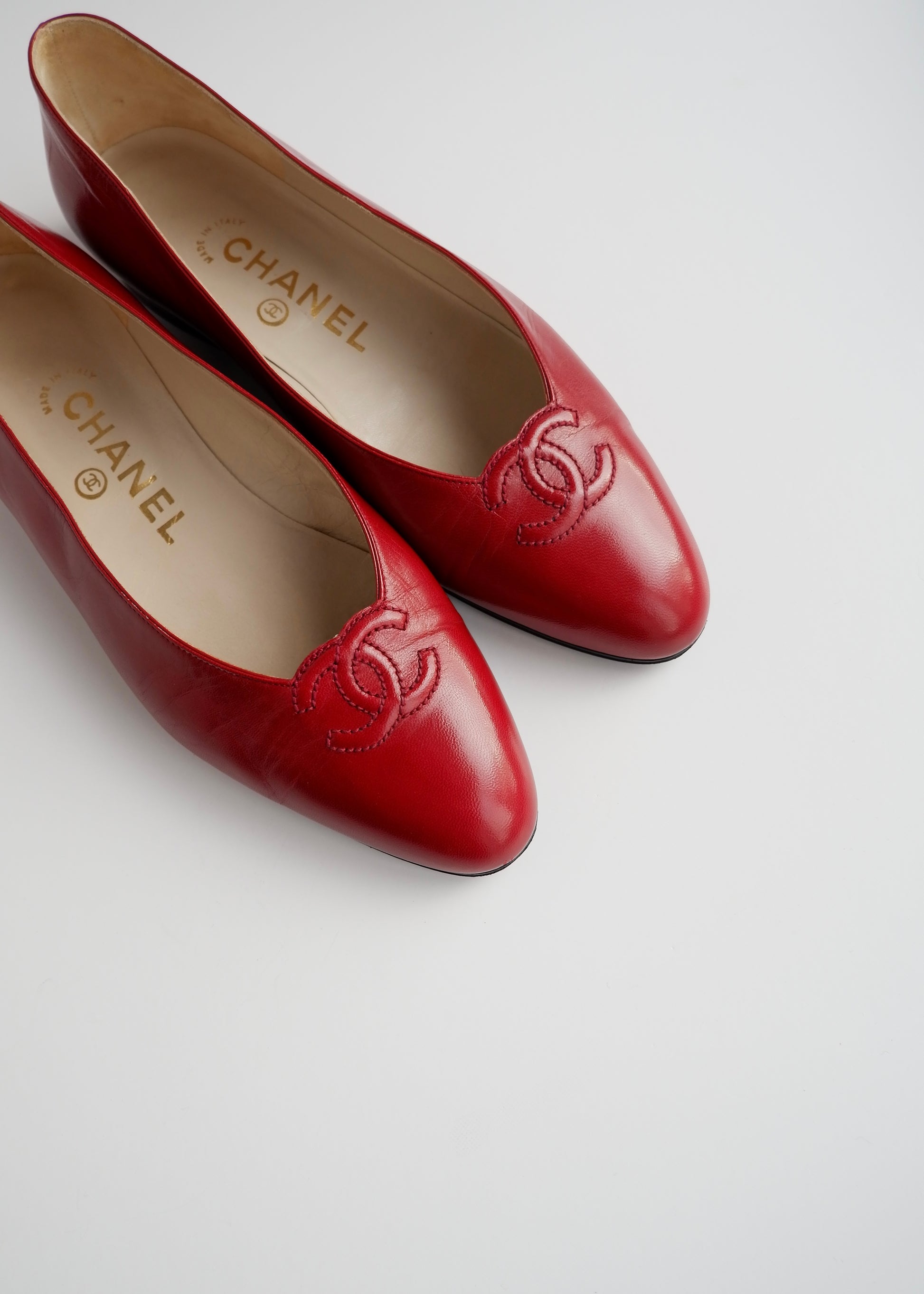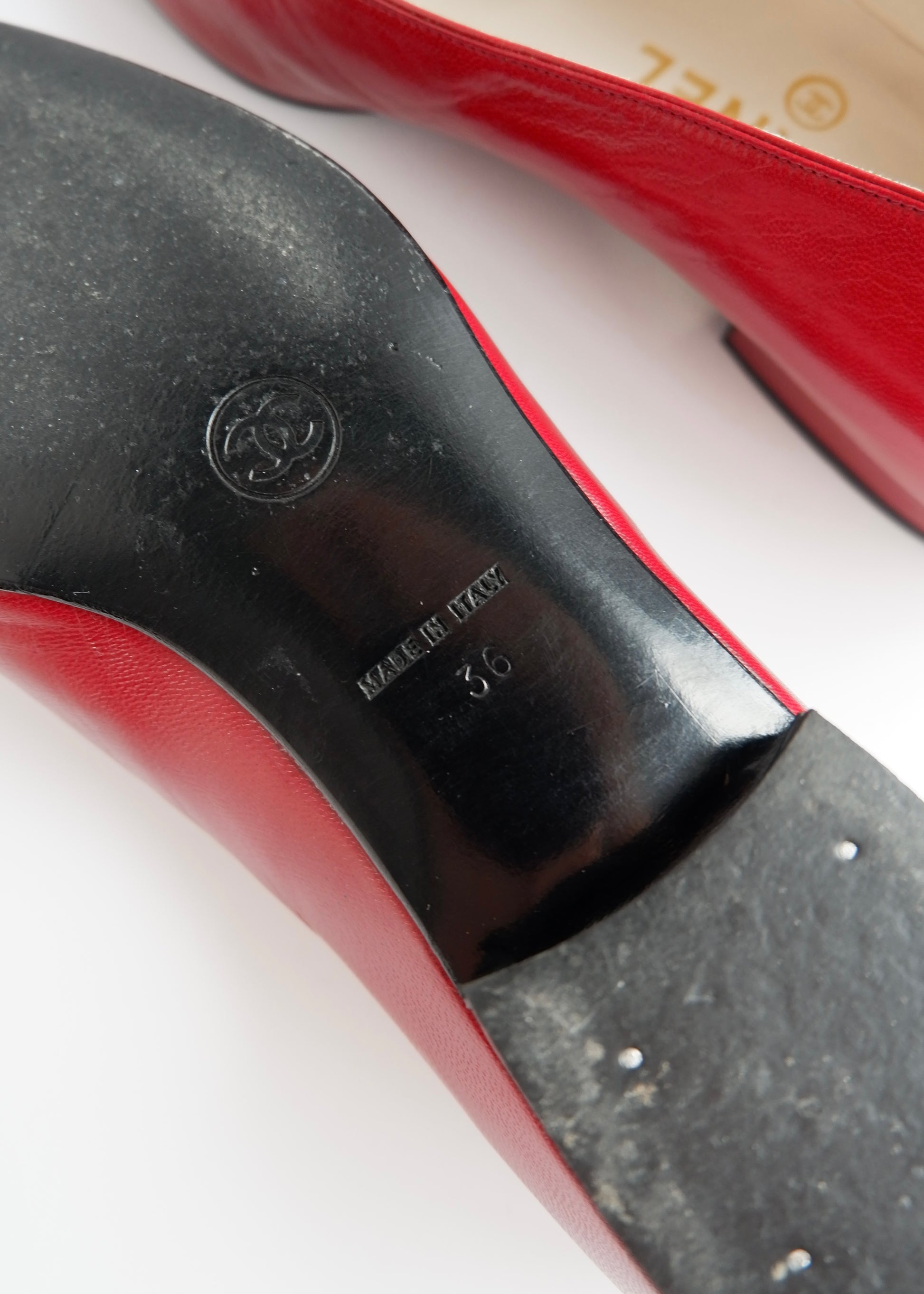 Authentic Preowned Vintage Chanel Red Leather CC Logo Flats - 36
