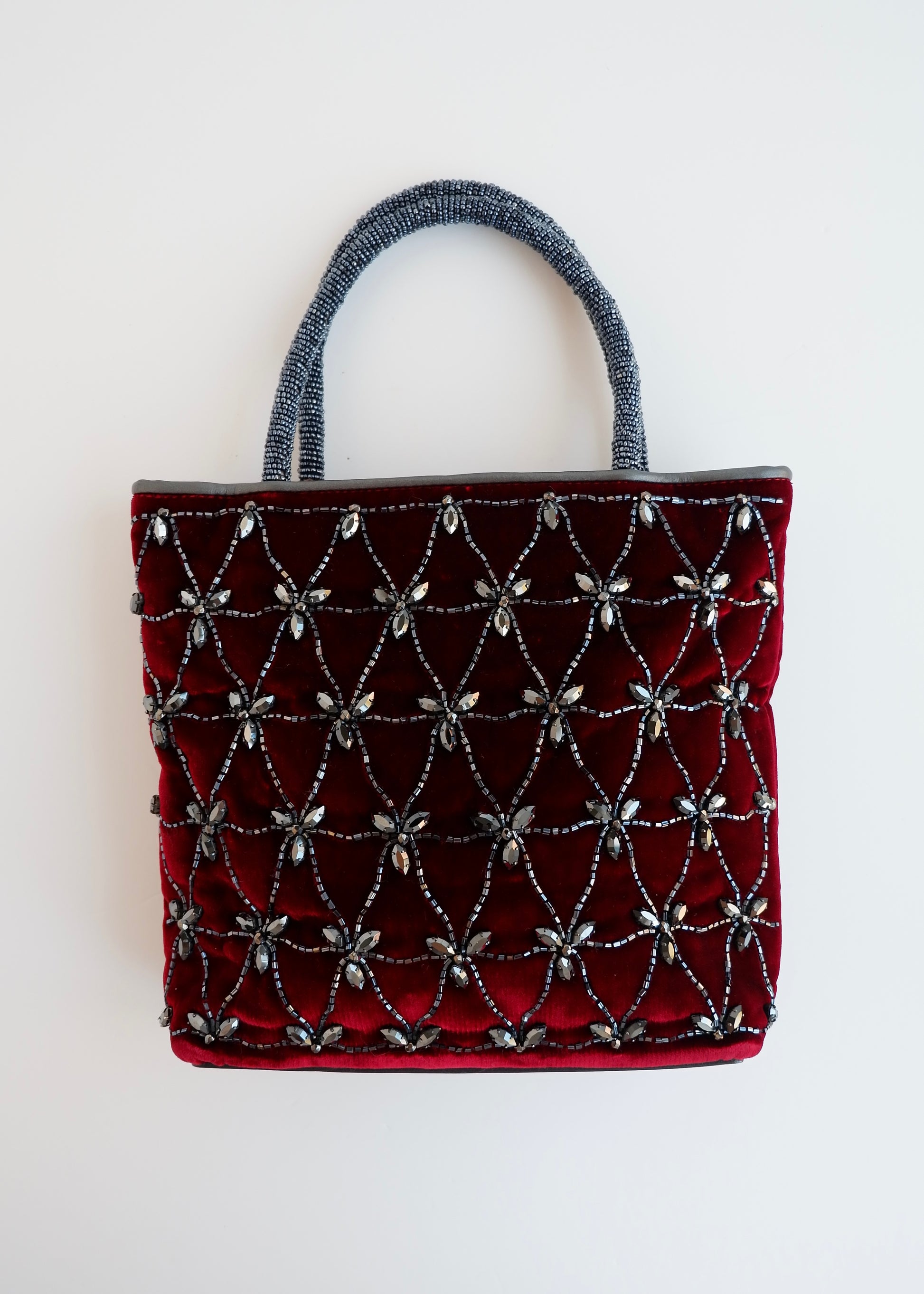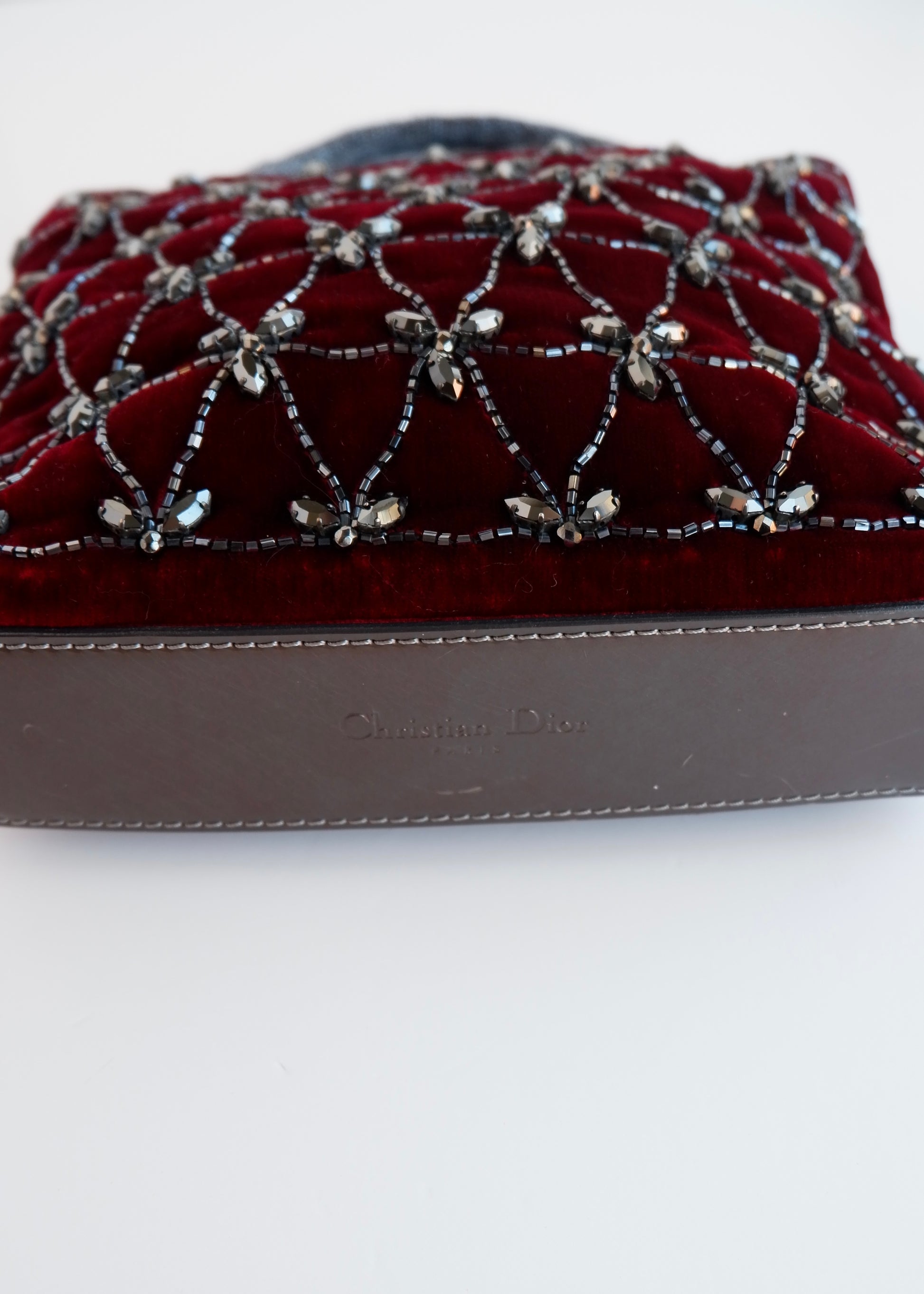Authentic Preowned Vintage Christian Dior Burdgundy Velvet Embellished Sparkly Top Handle Bag