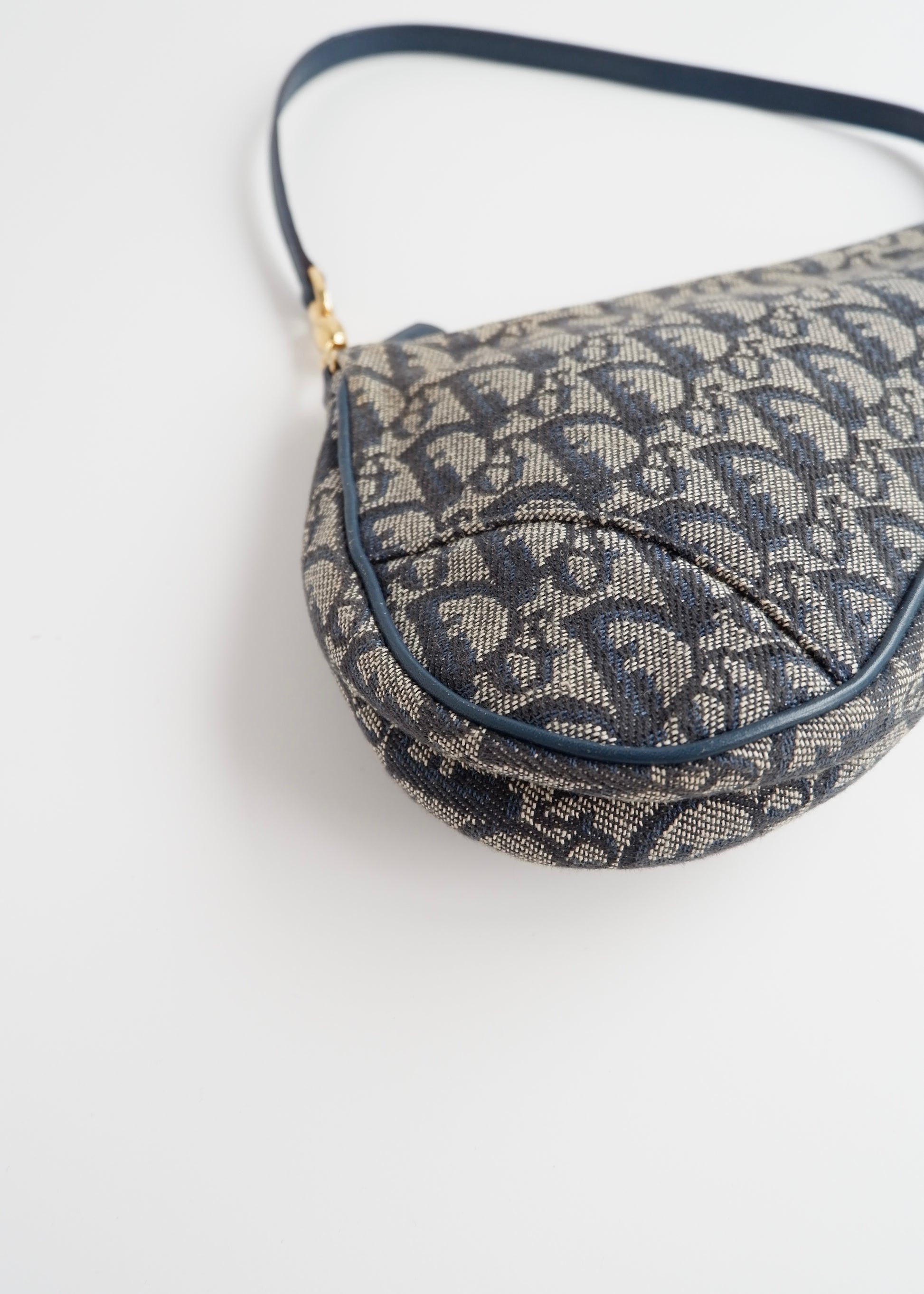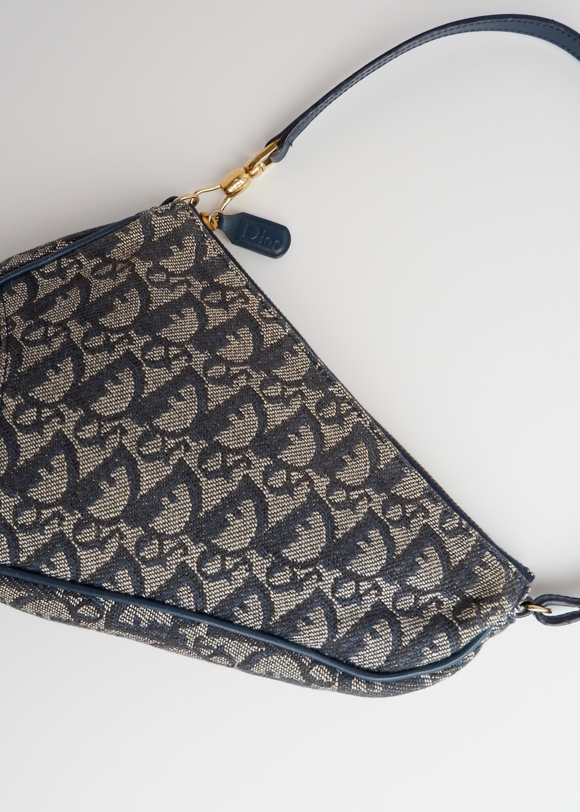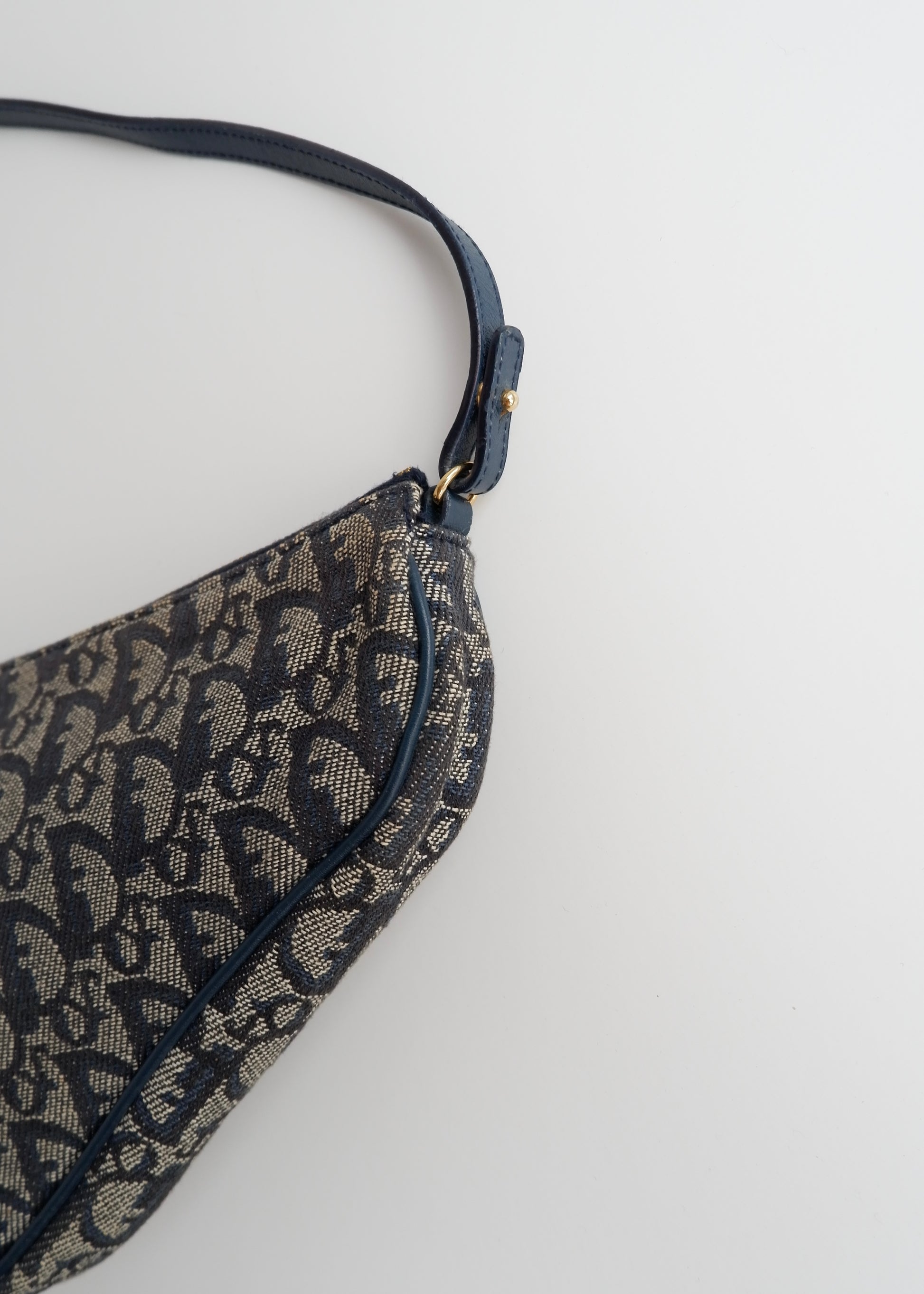 Authentic Preowned Vintage Dior Navy Oblique Canvas Saddle Bag