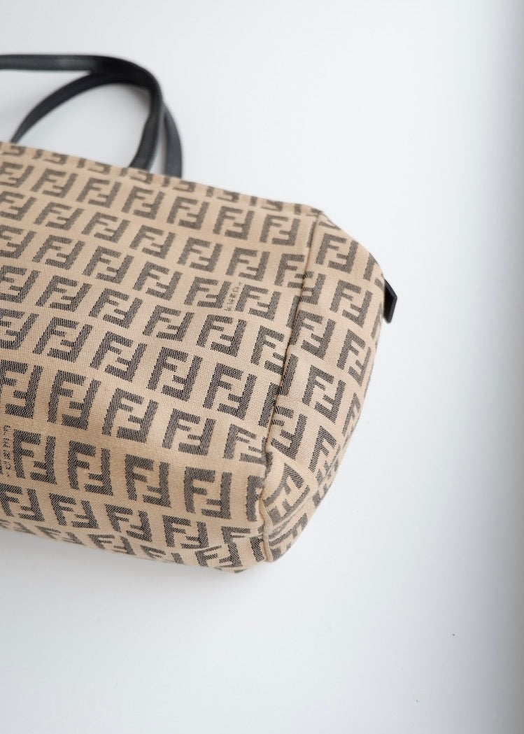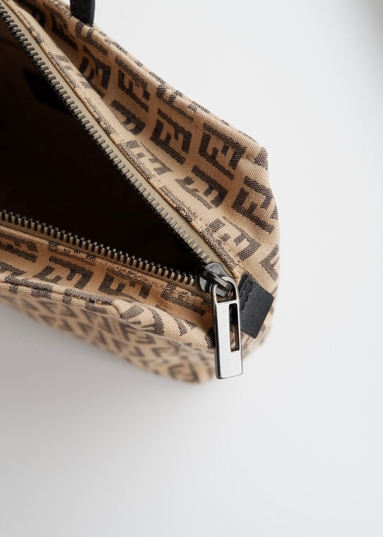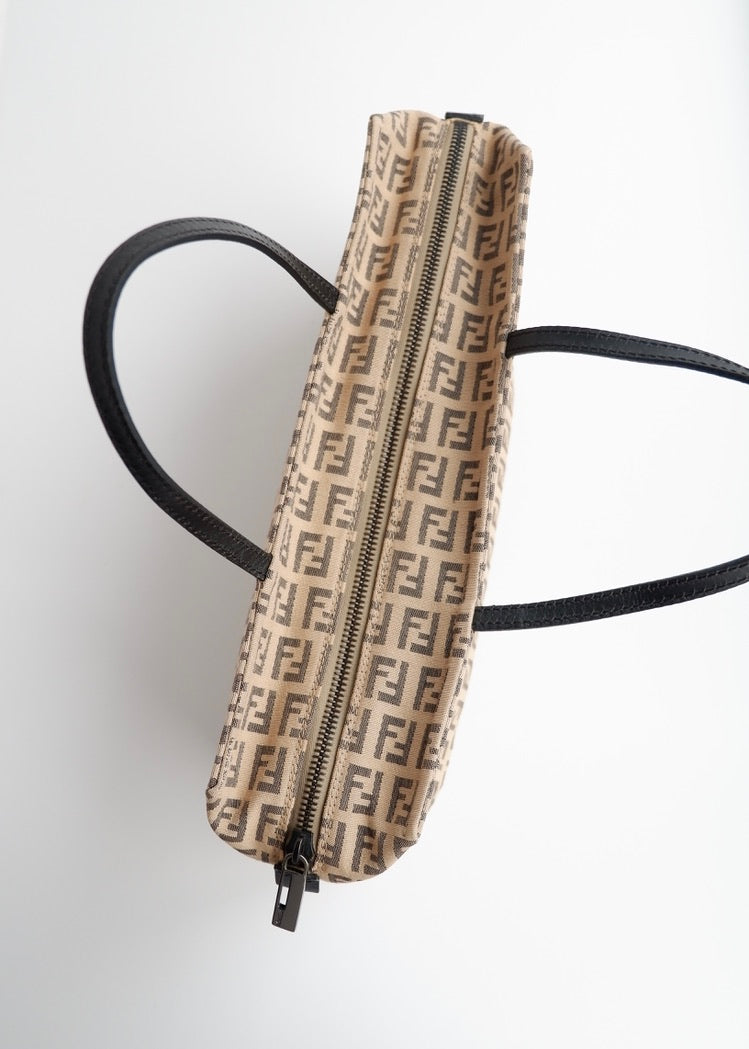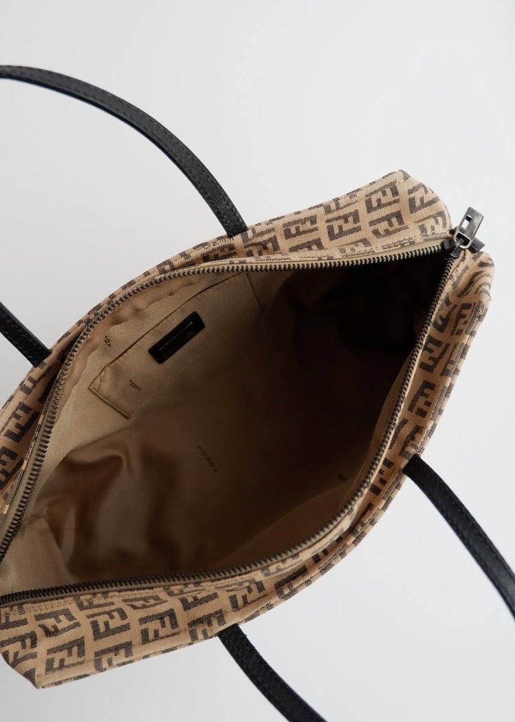 Authentic Preowned Vintage Fendi Brown Canvas Zucchino Print East West Shoulder Bag