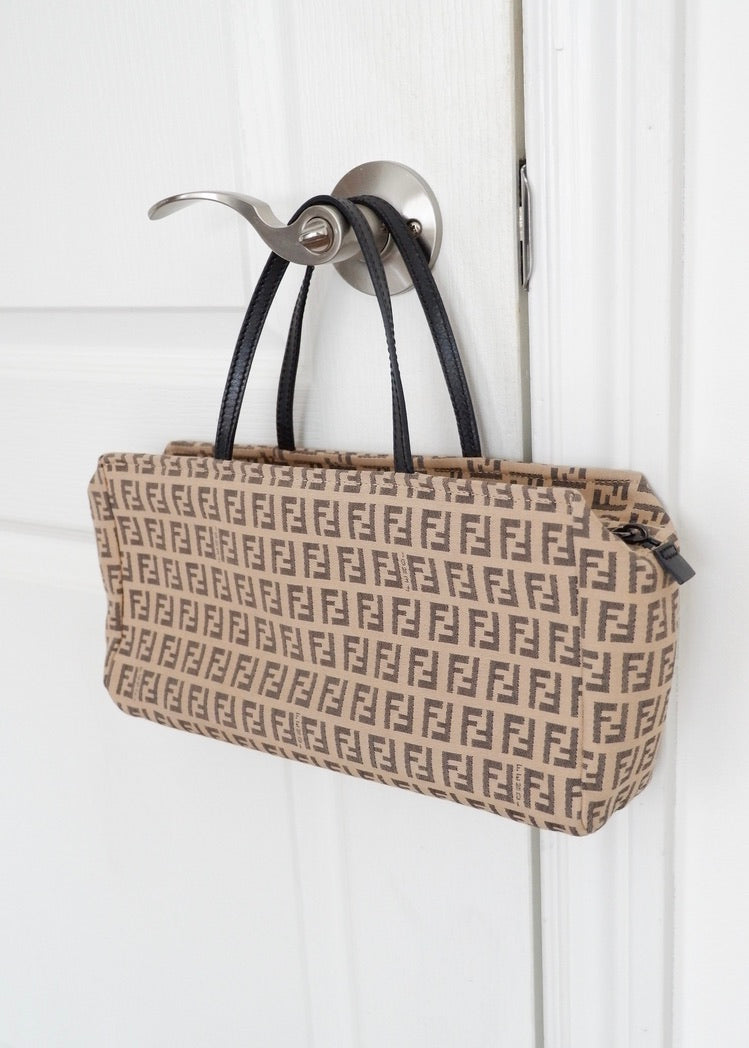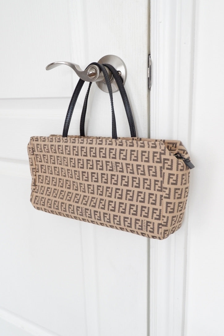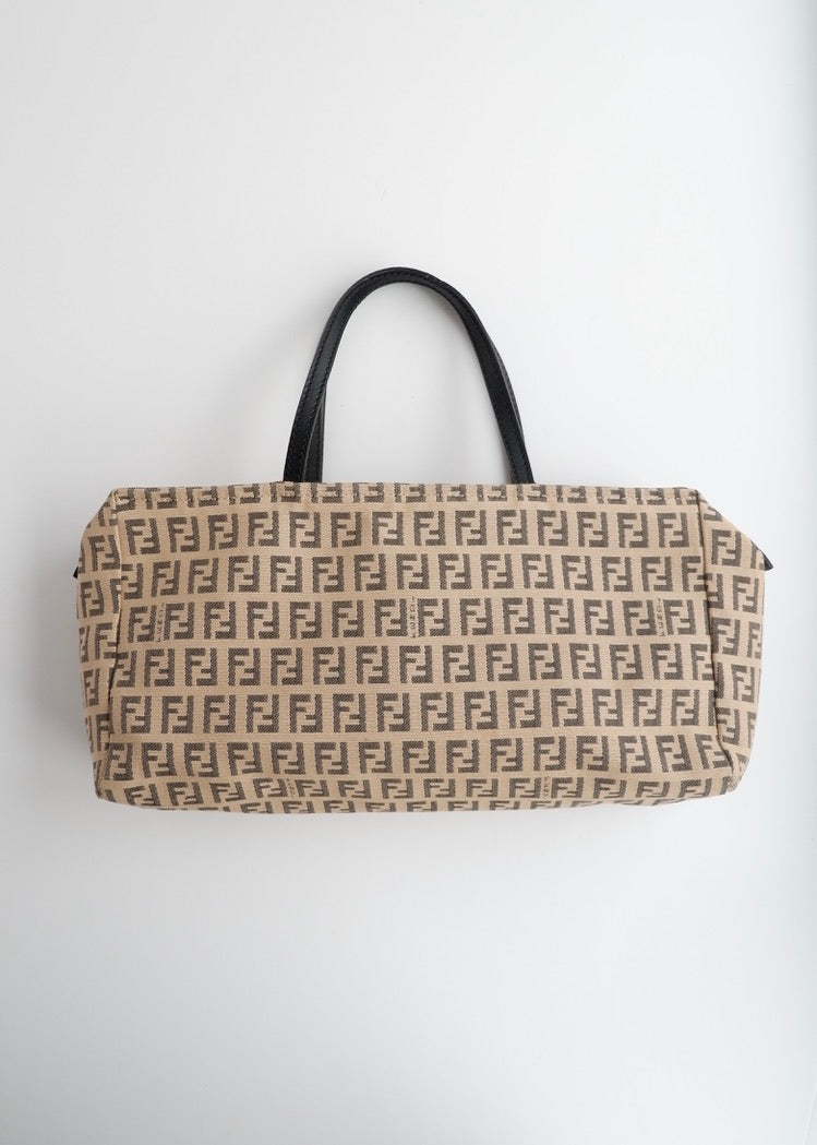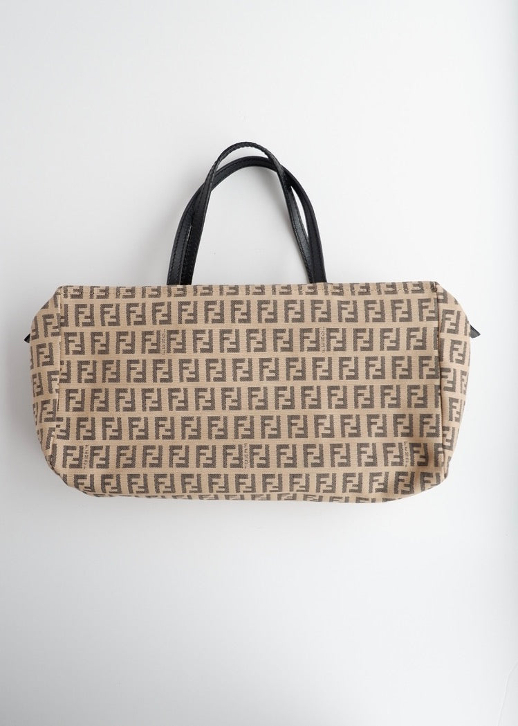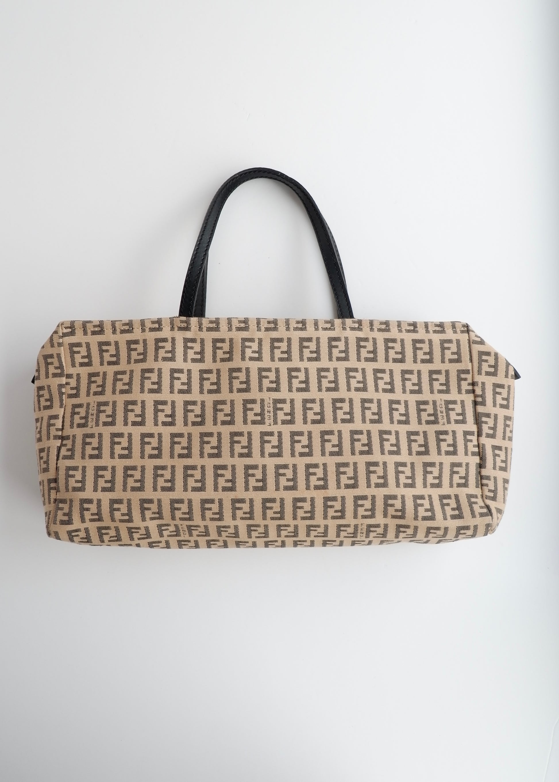 Authentic Preowned Vintage Fendi Brown Canvas Zucchino Print East West Shoulder Bag