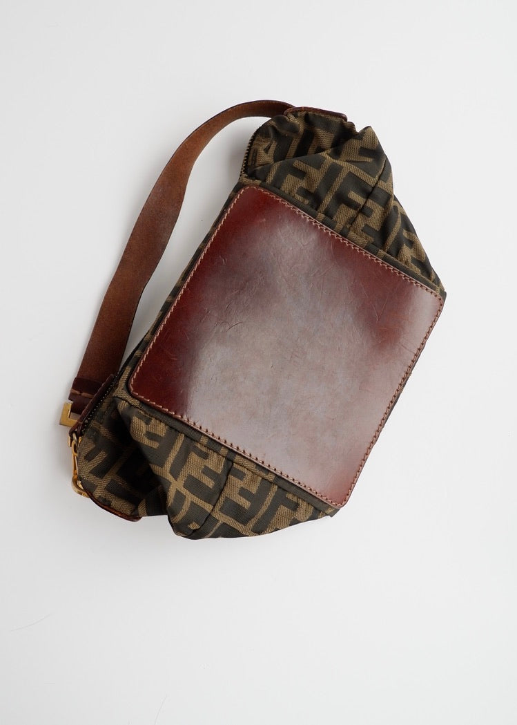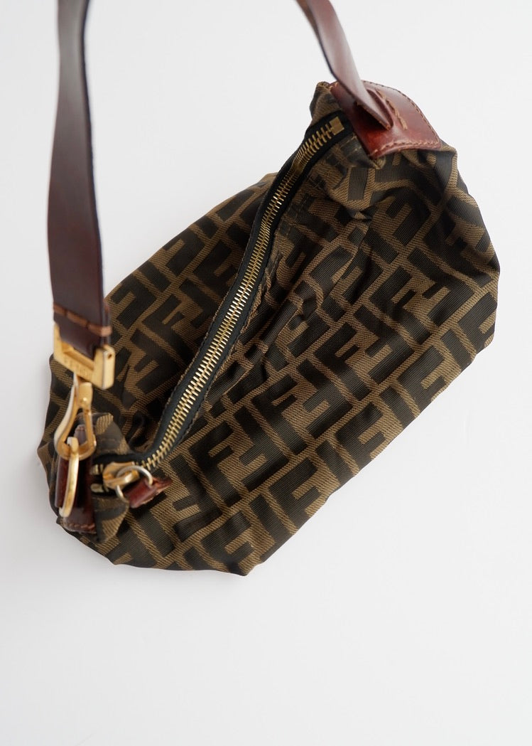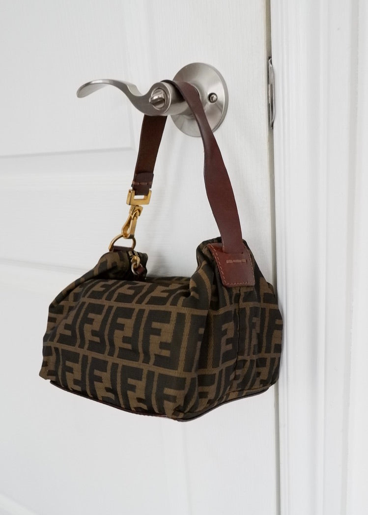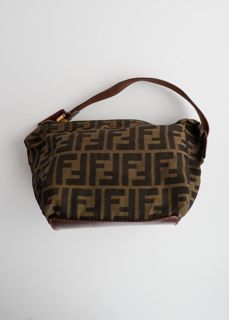 Authentic Preowned Vintage Fendi Brown Zucca Canvas/ Leather Small Handbag