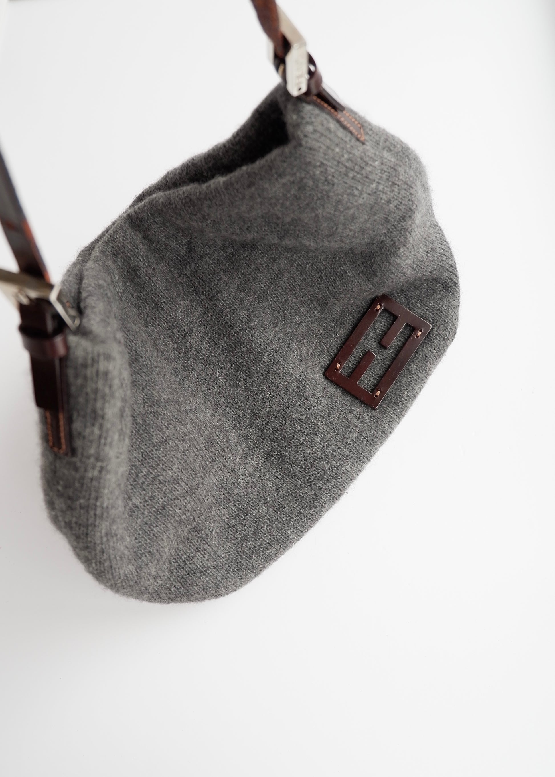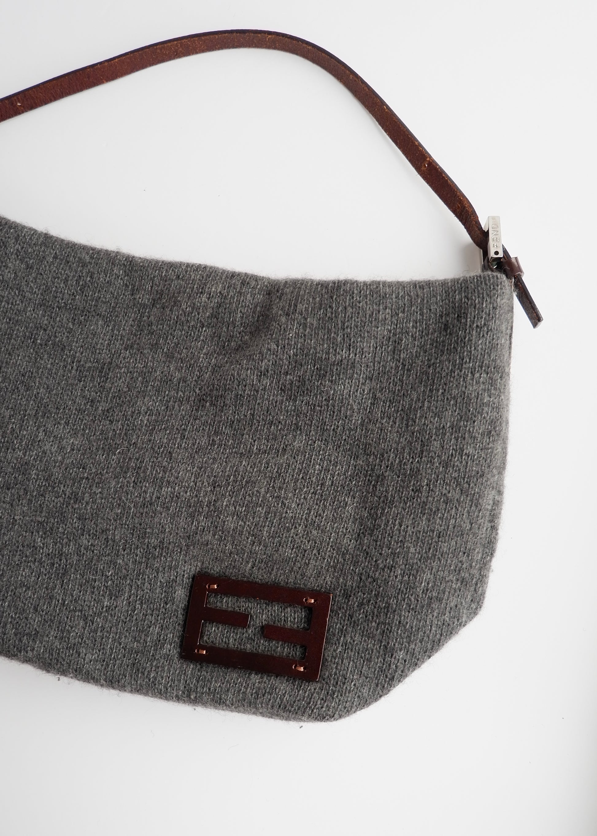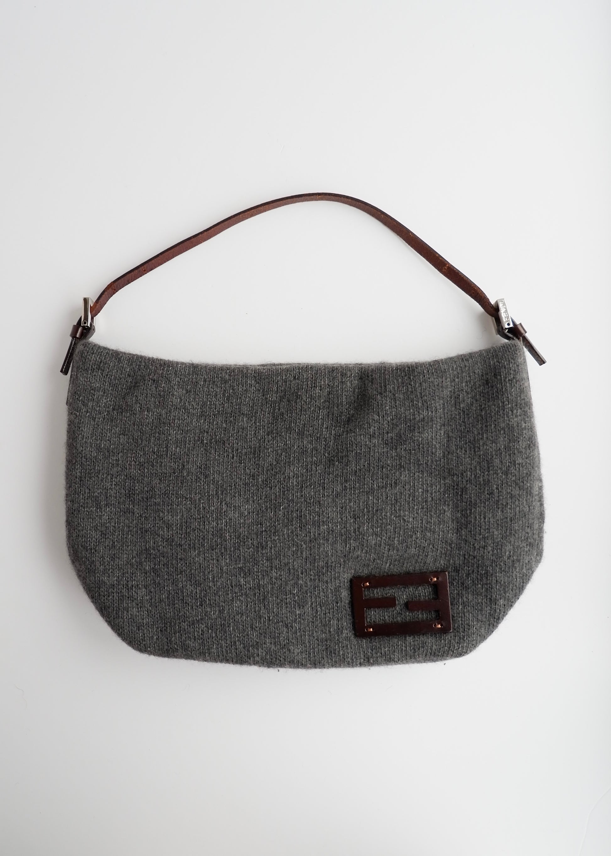 Authentic Preowned Vintage Fendi Grey Wool Shoulder Bag