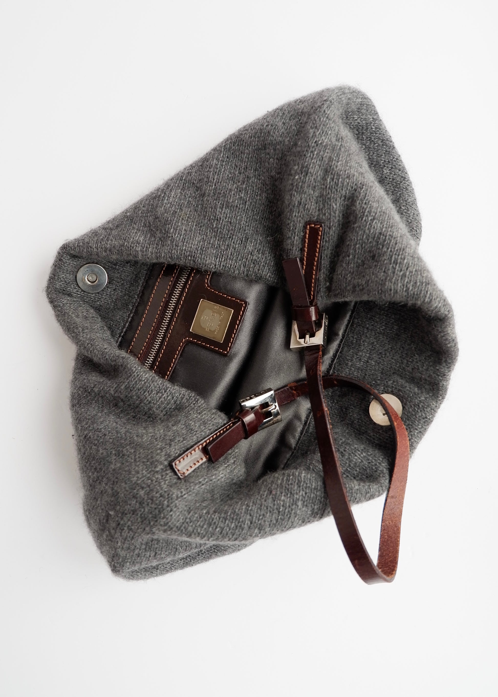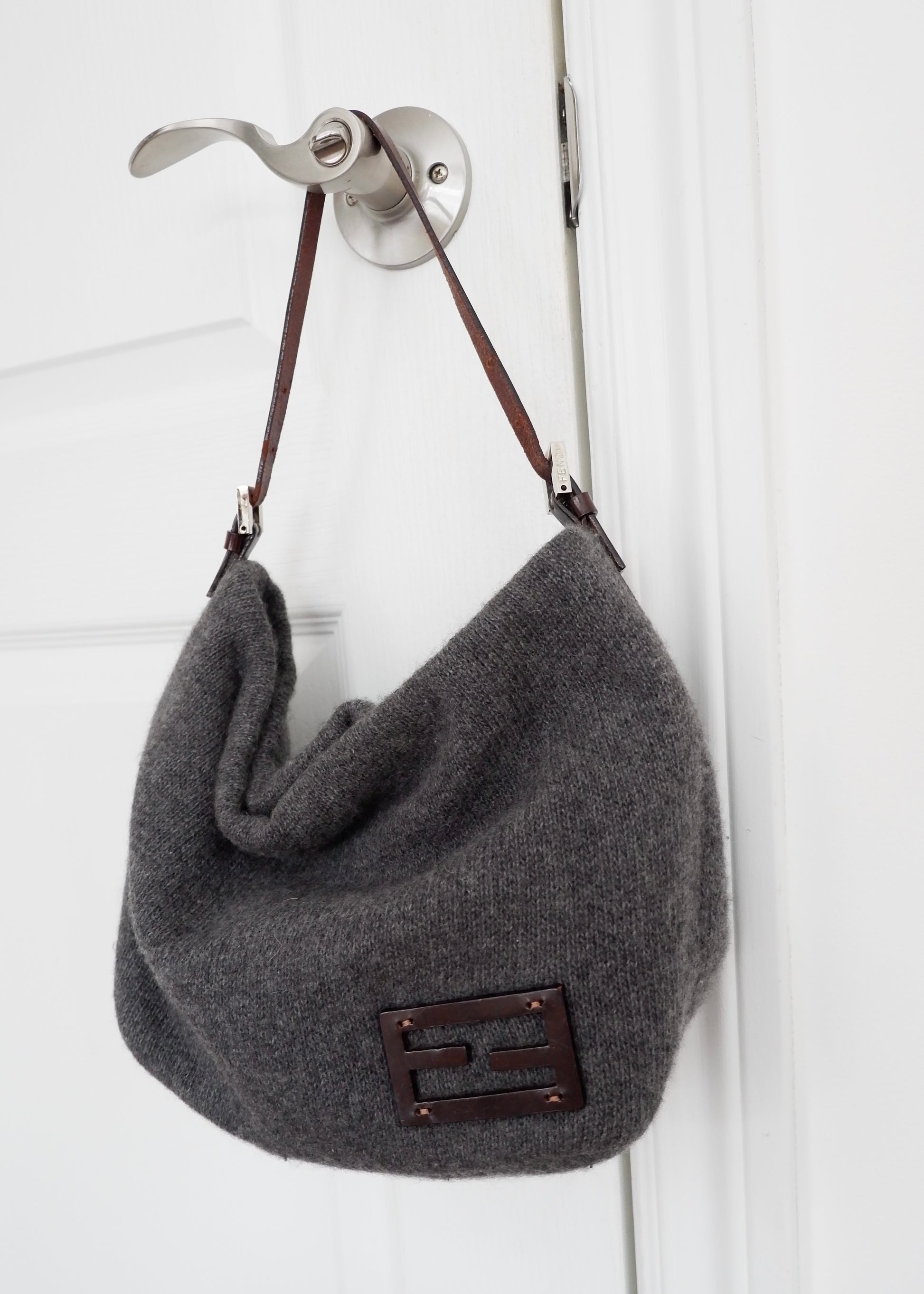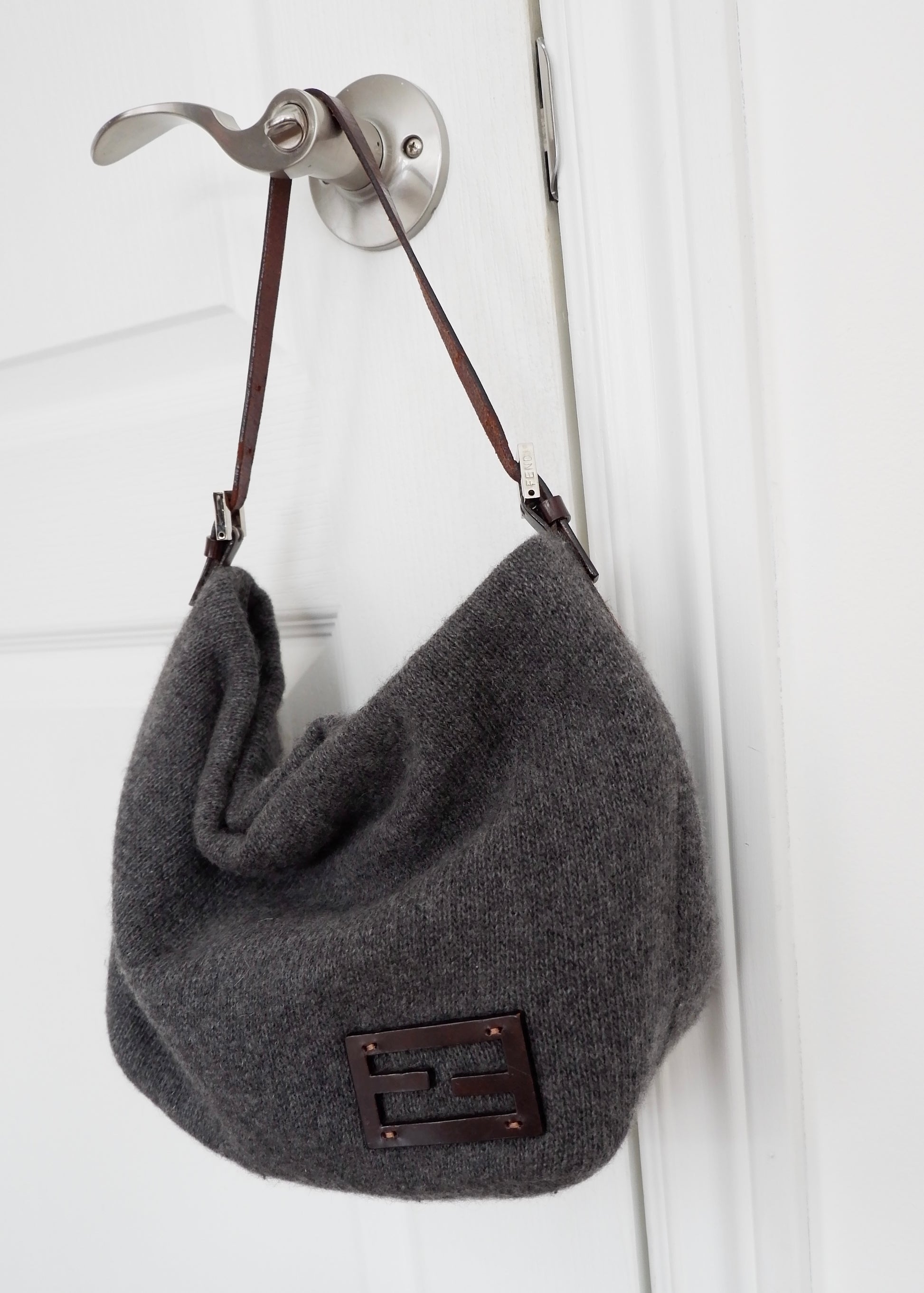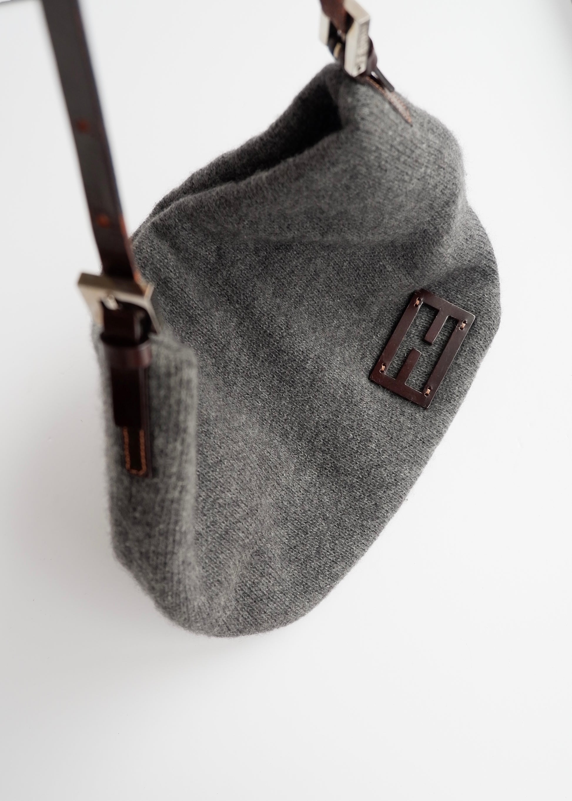 Authentic Preowned Vintage Fendi Grey Wool Shoulder Bag