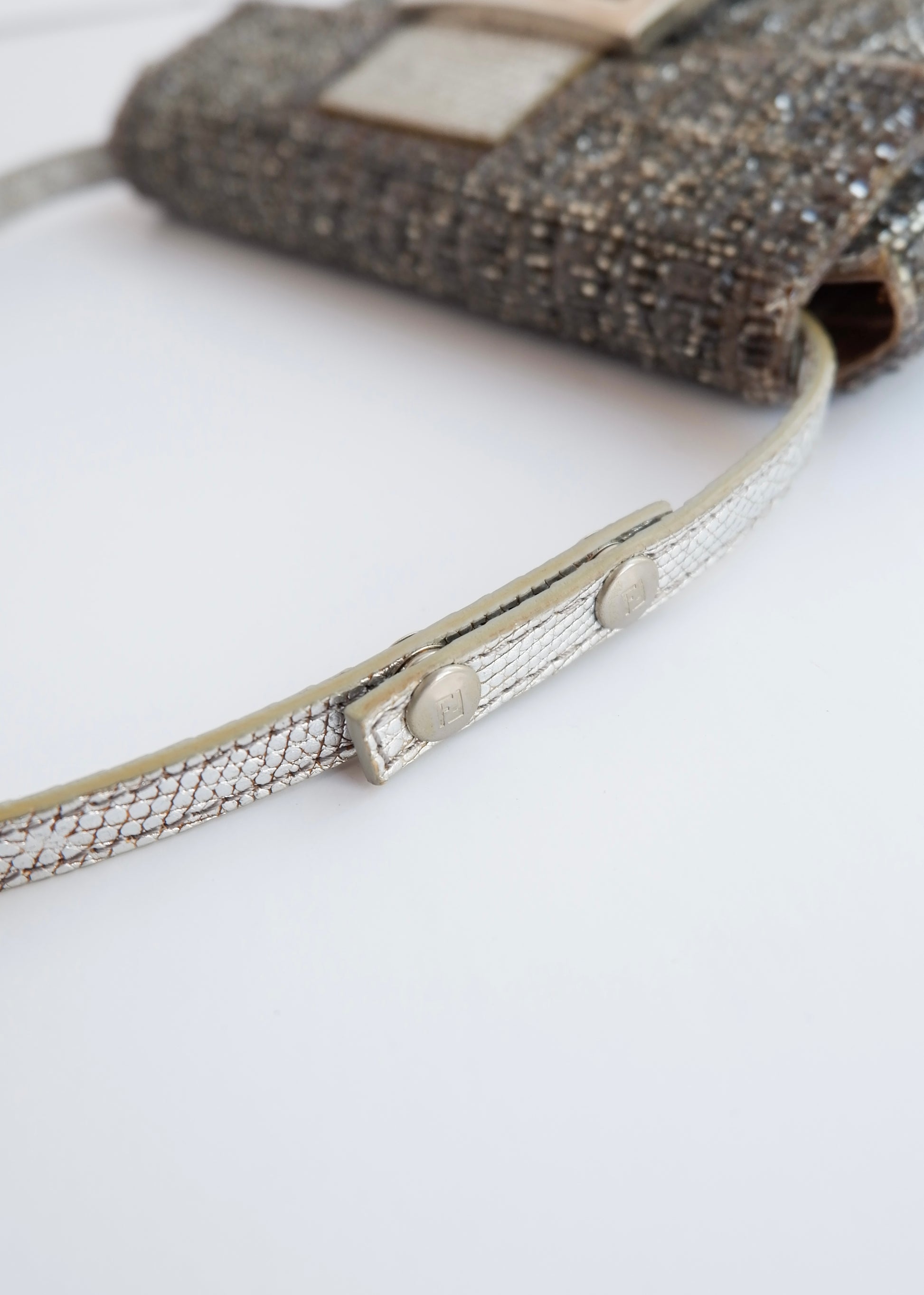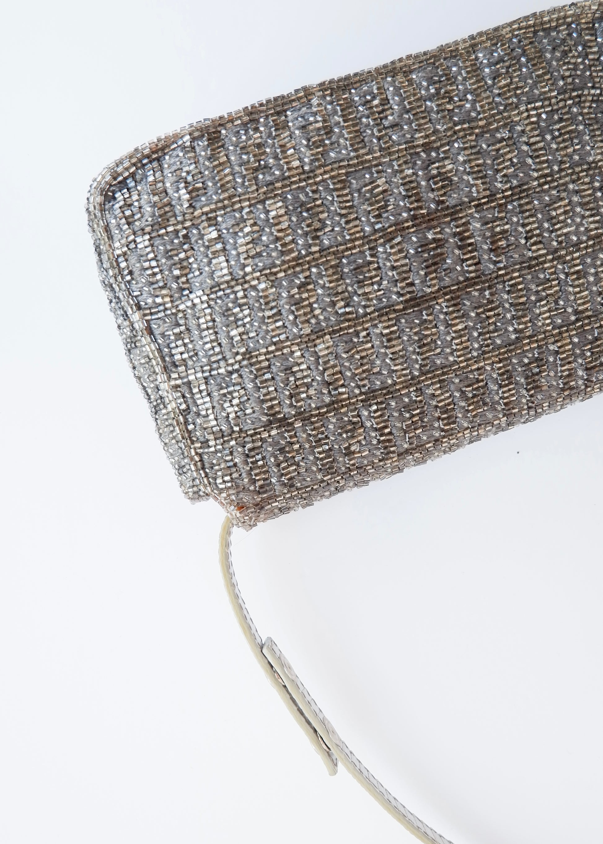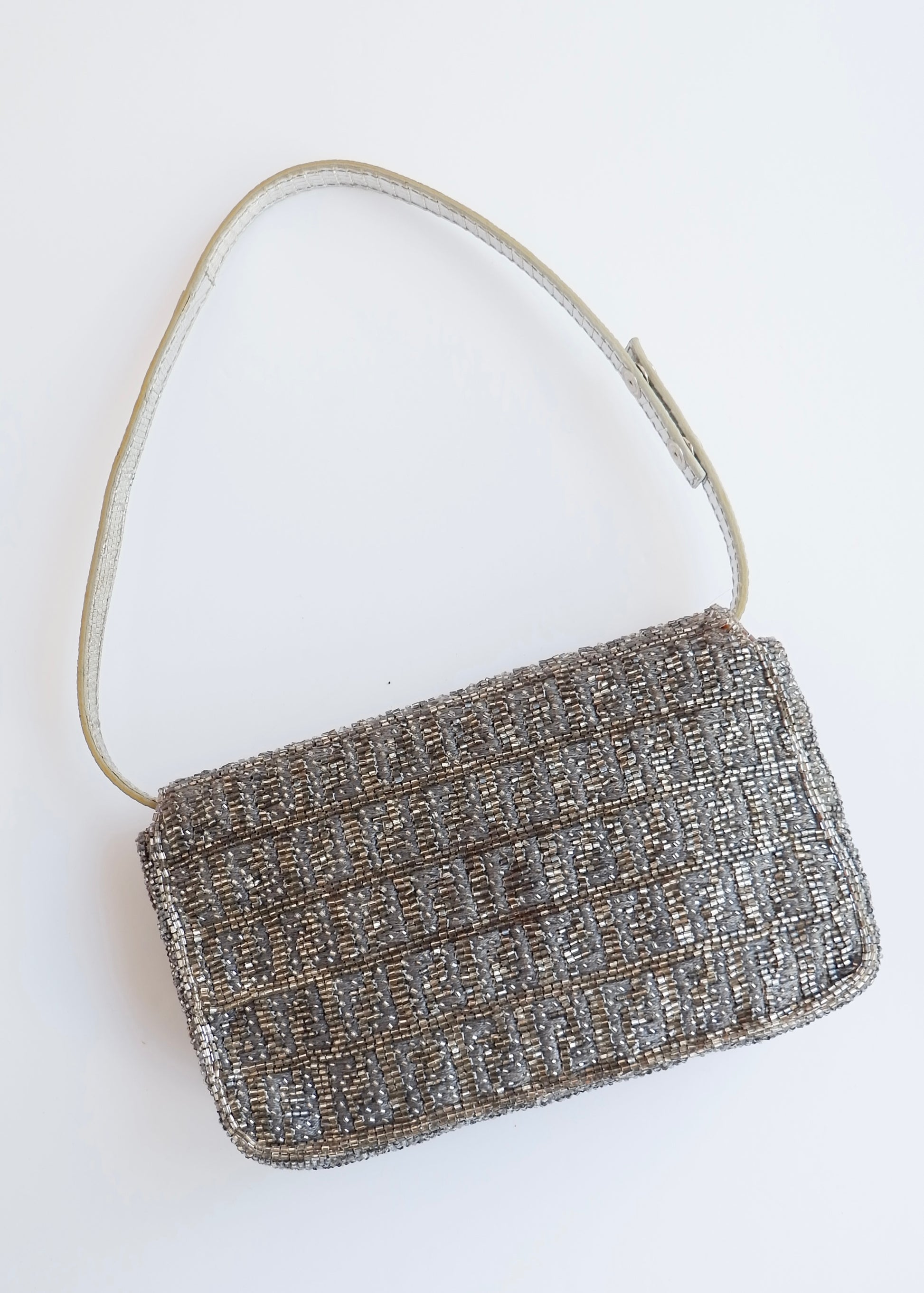 Authentic Preowned Vintage Fendi Silver FF Zucchino Beaded Small Baguette Shoulder Bag
