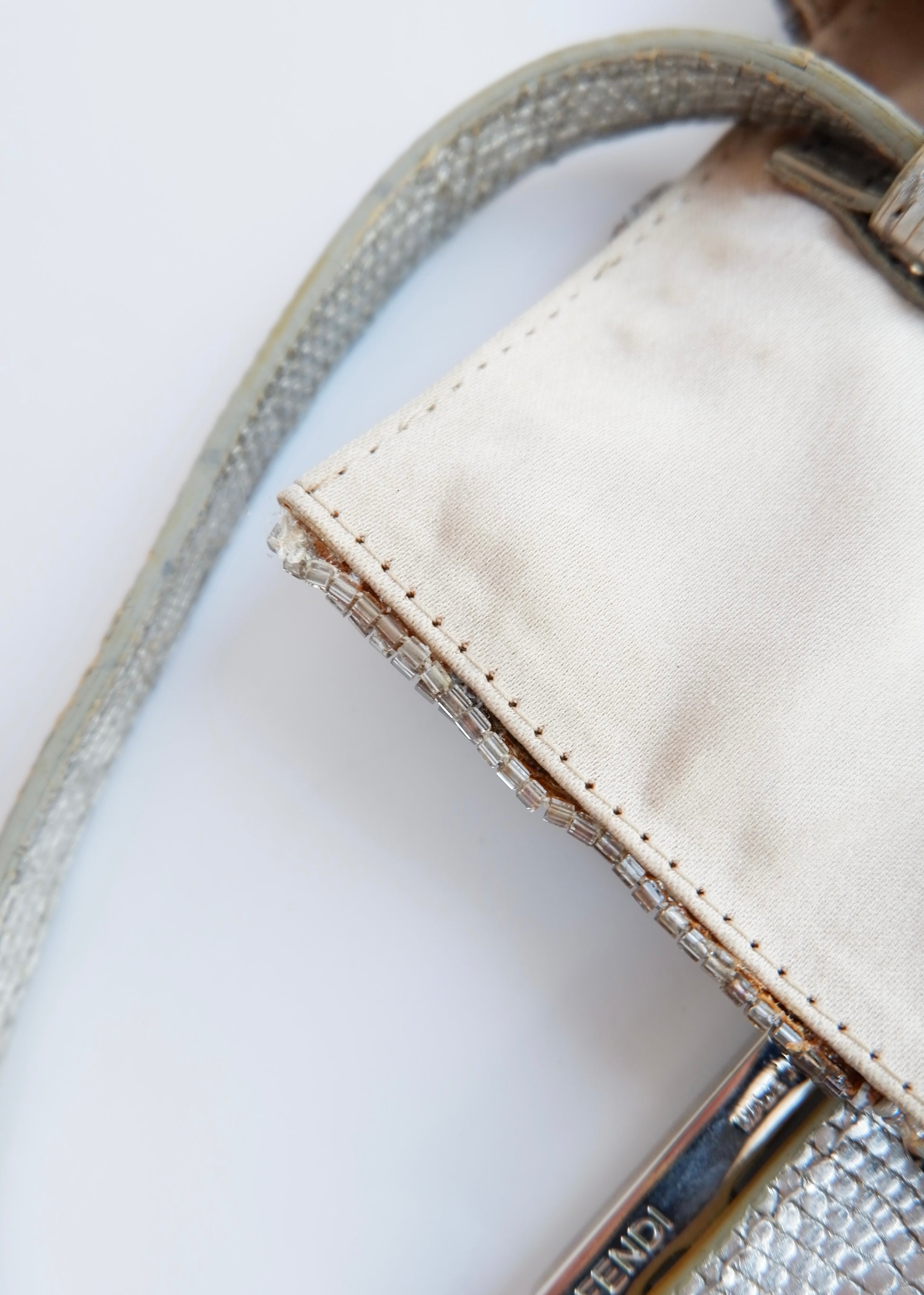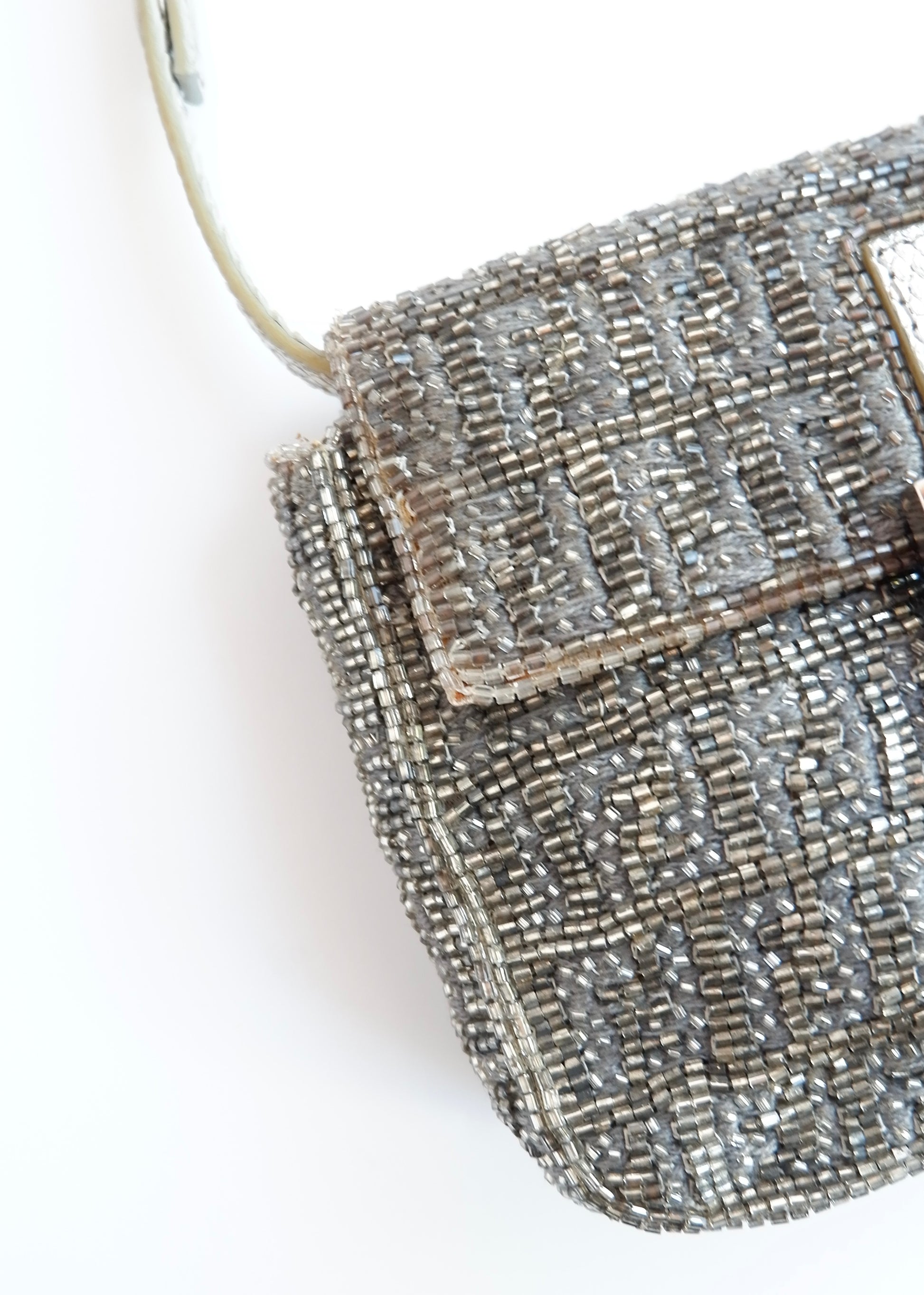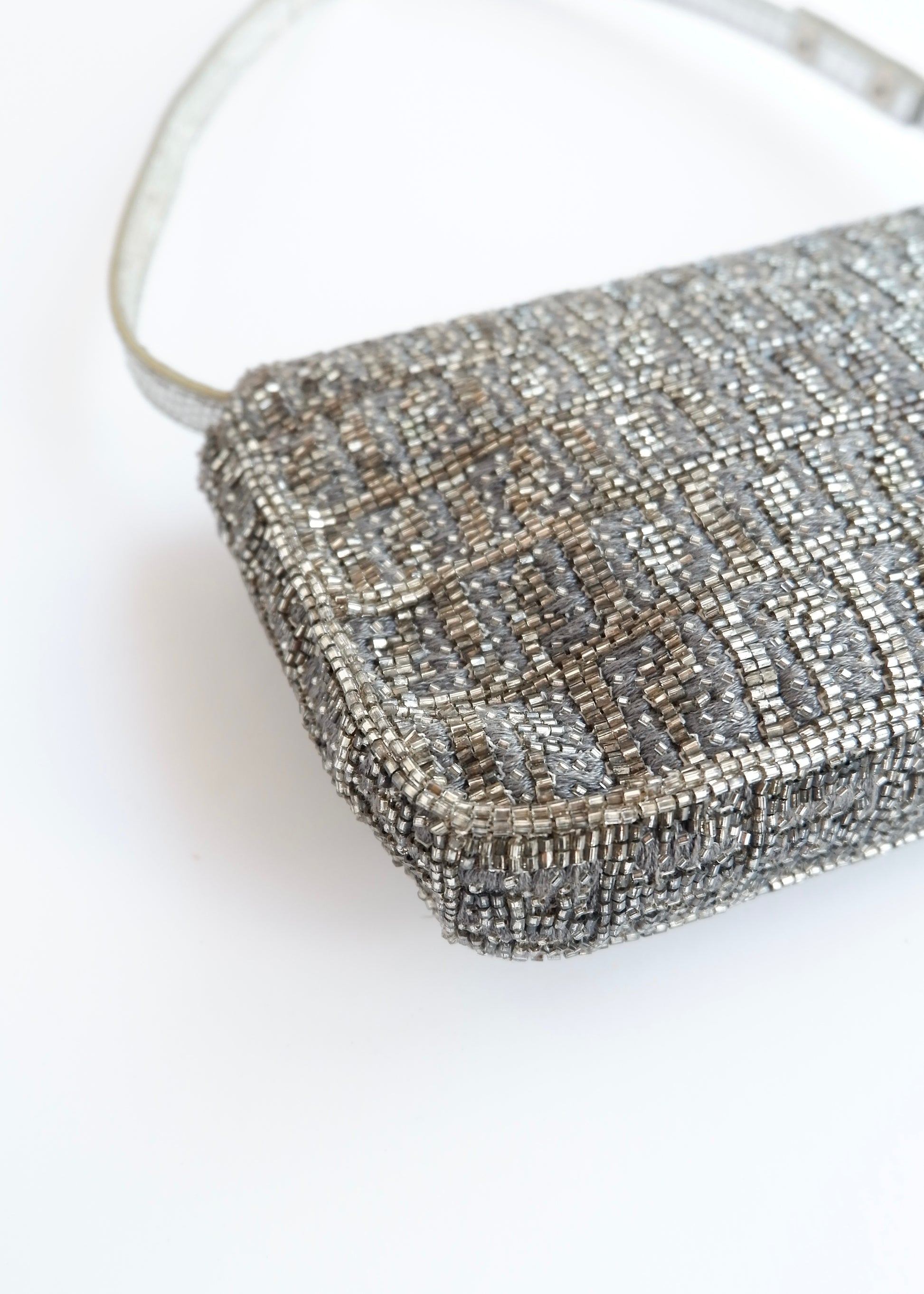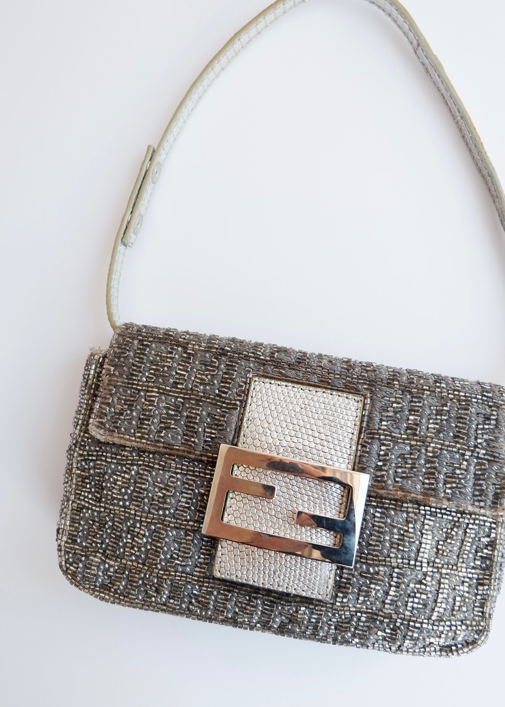 Authentic Preowned Vintage Fendi Silver FF Zucchino Beaded Small Baguette Shoulder Bag