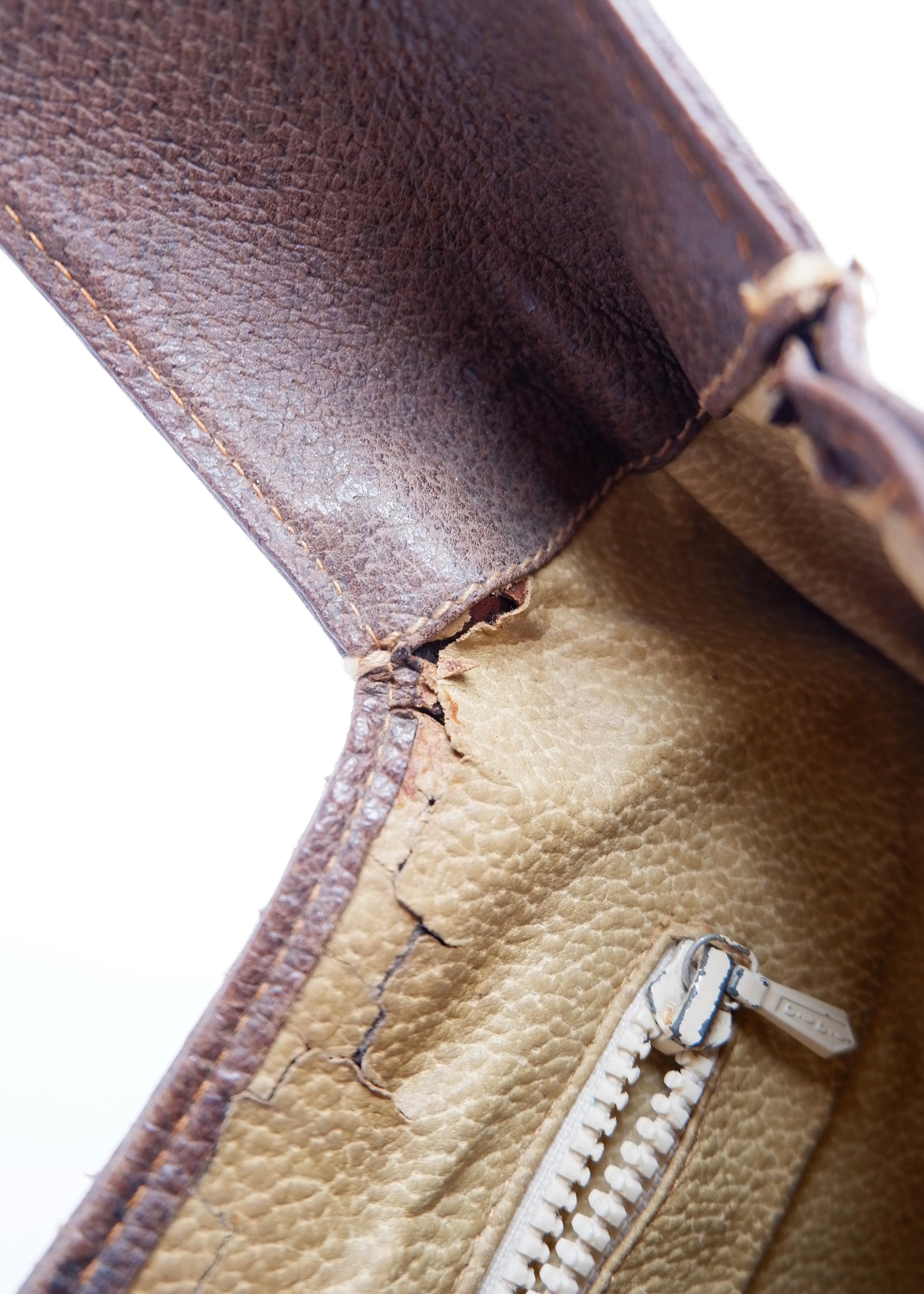 Condition: 7/10 Good Vintage Condition - This is a vintage Gucci Jackie Shoulder Bag. Due to the age of the bag, the leather has dried out in portions, specifically in the interior of the bag and on the leather strap near where the strap is adjustable, around the hardware. There is one pen mark on the back of the bag. There is one crack on the right side of the bag near the opening and where the strap connects. Subtle marks on the bottom corners of the bag.
