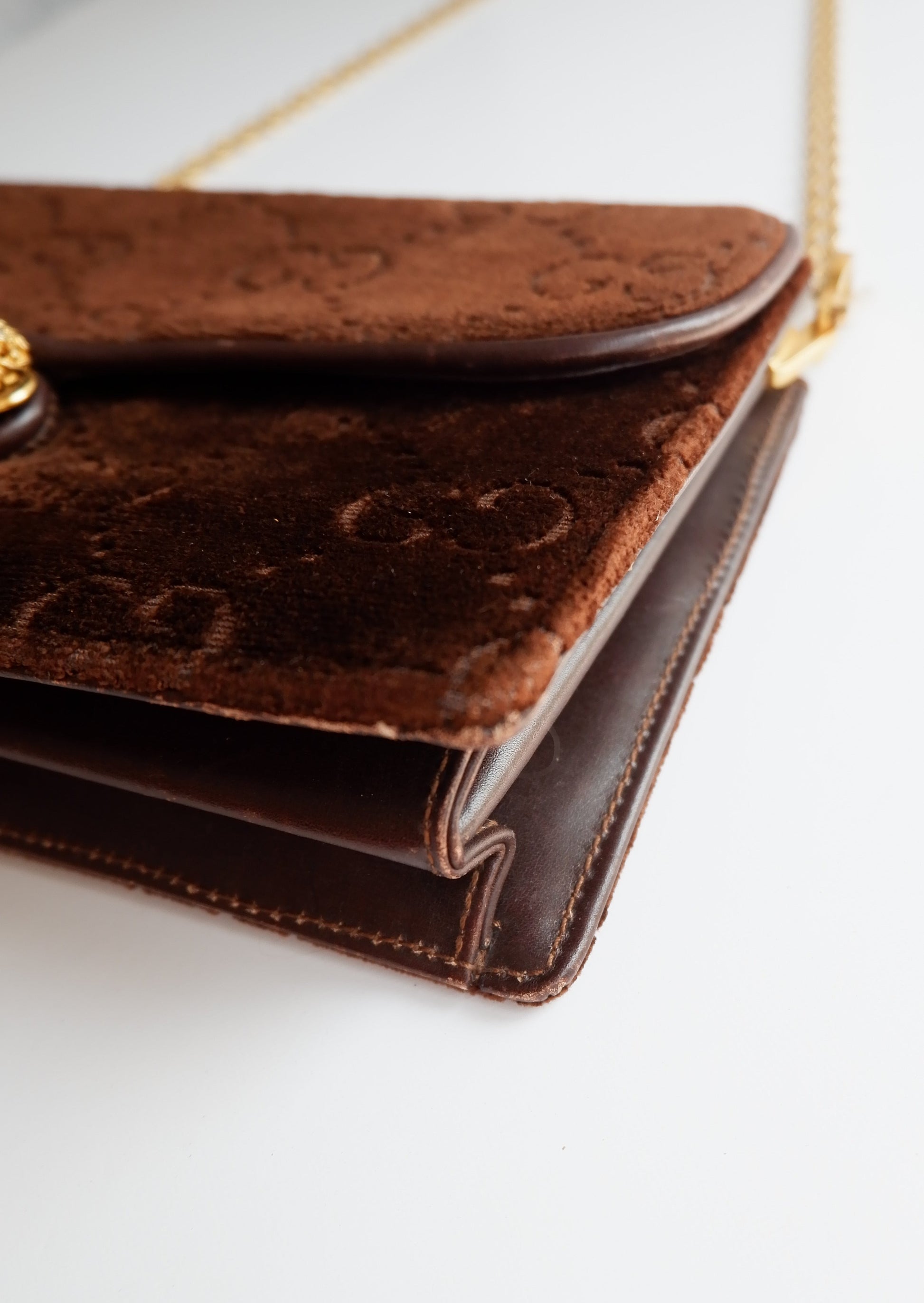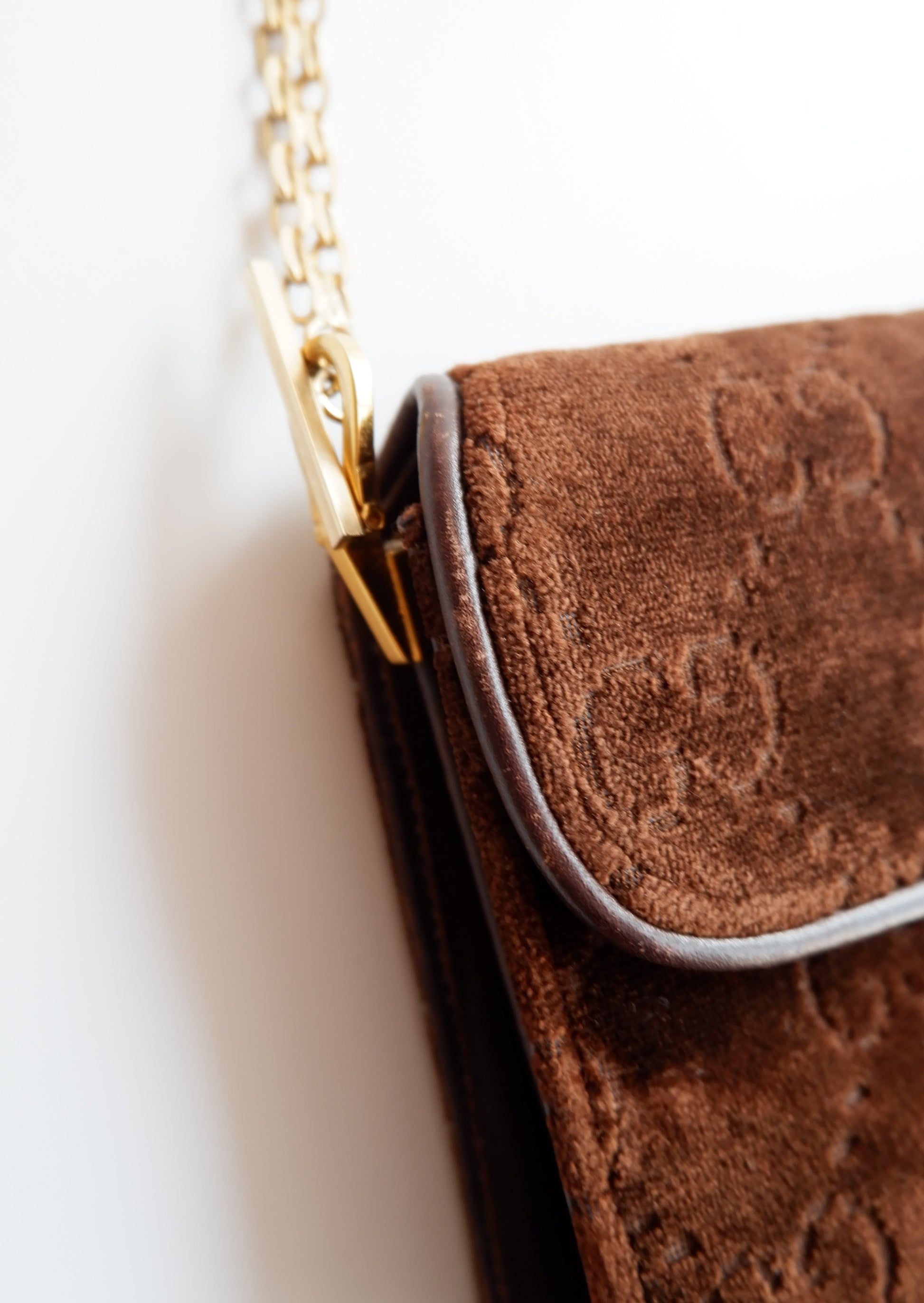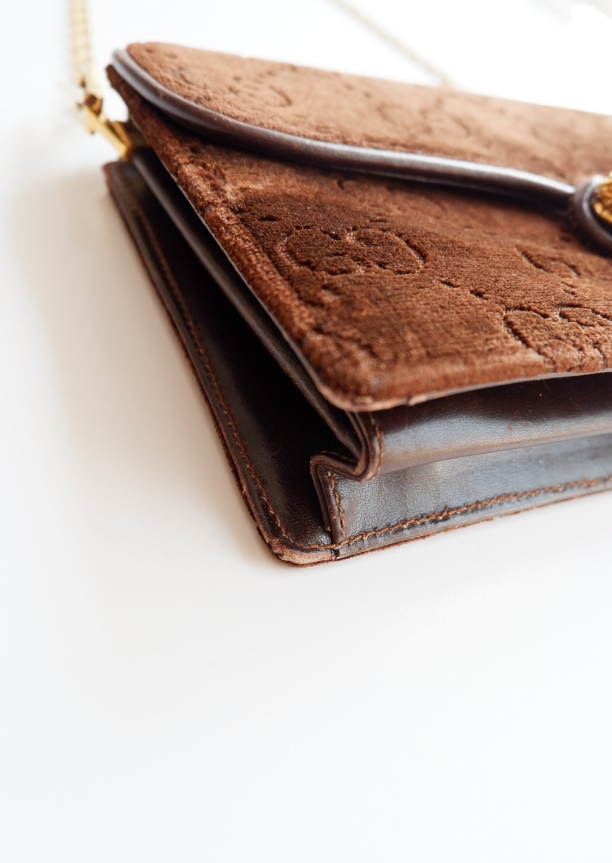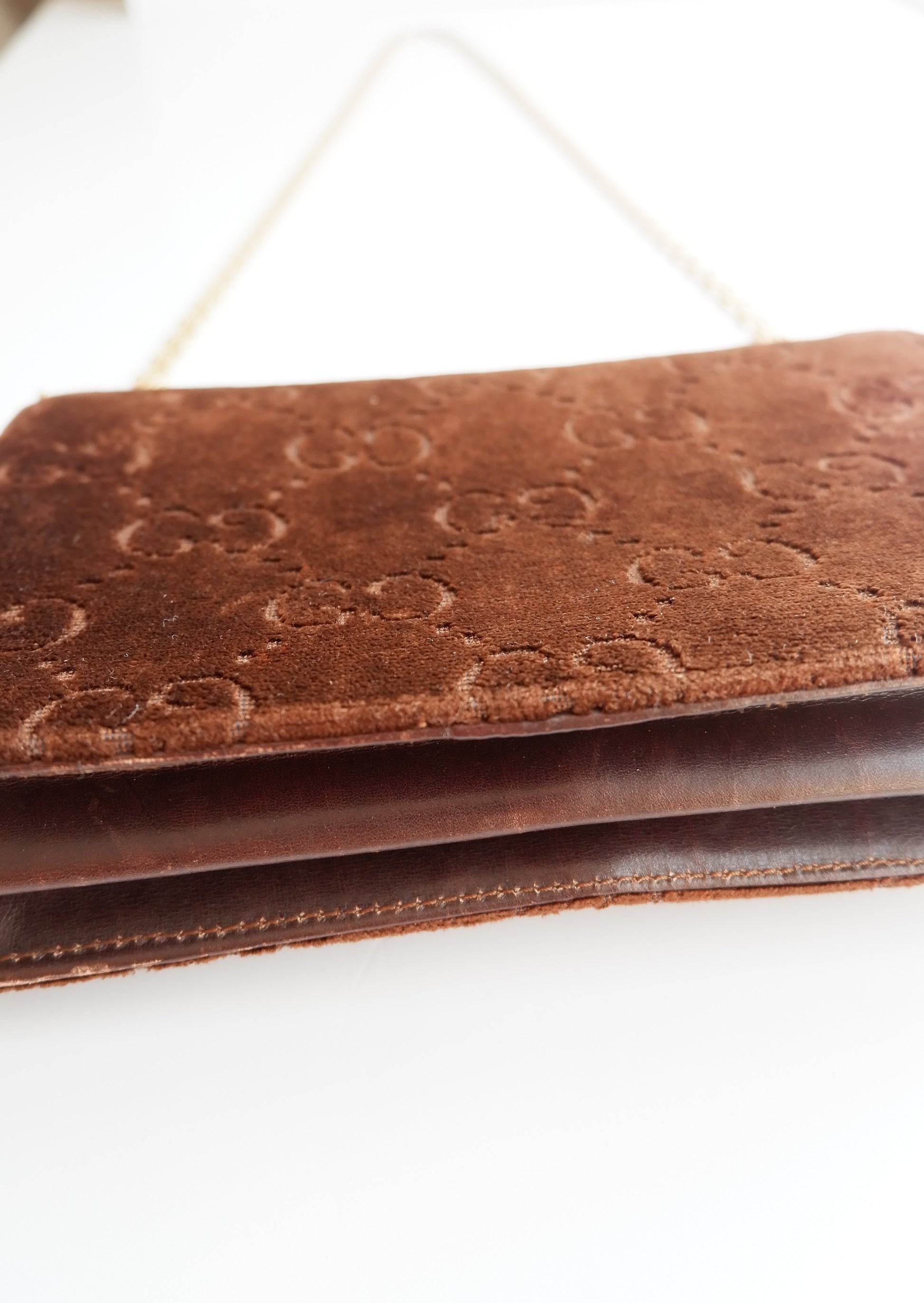 Authentic Preowned Vintage Gucci Brown Velvet GG Print Shoulder Bag